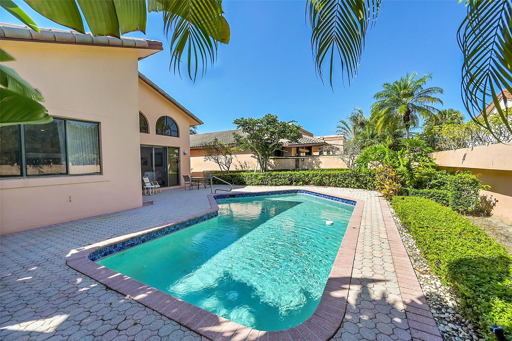One of the larger models in the gated community of Boca Pointe. Just under 3000 square feet under air with a private pool and a two car garage. Large primary suite on the first floor with his and her closets. Kitchen open to family room, sunken living room, formal dining room and multiple sets of doors all leading to the relaxing pool, patio and tropical backyard. 2 bedrooms, loft area and large jack and jill bathroom upstairs. Optional country club living with different types of memberships available. Sports complex featuring 15 tennis courts, 4 new pickleball courts, weight training and cardiovascular equipment, and exercise classes. 2 a/c units both 2021, barrel tile roof 1991 and flat roof 2022. Centrally located near shopping, restaurants and major highways.