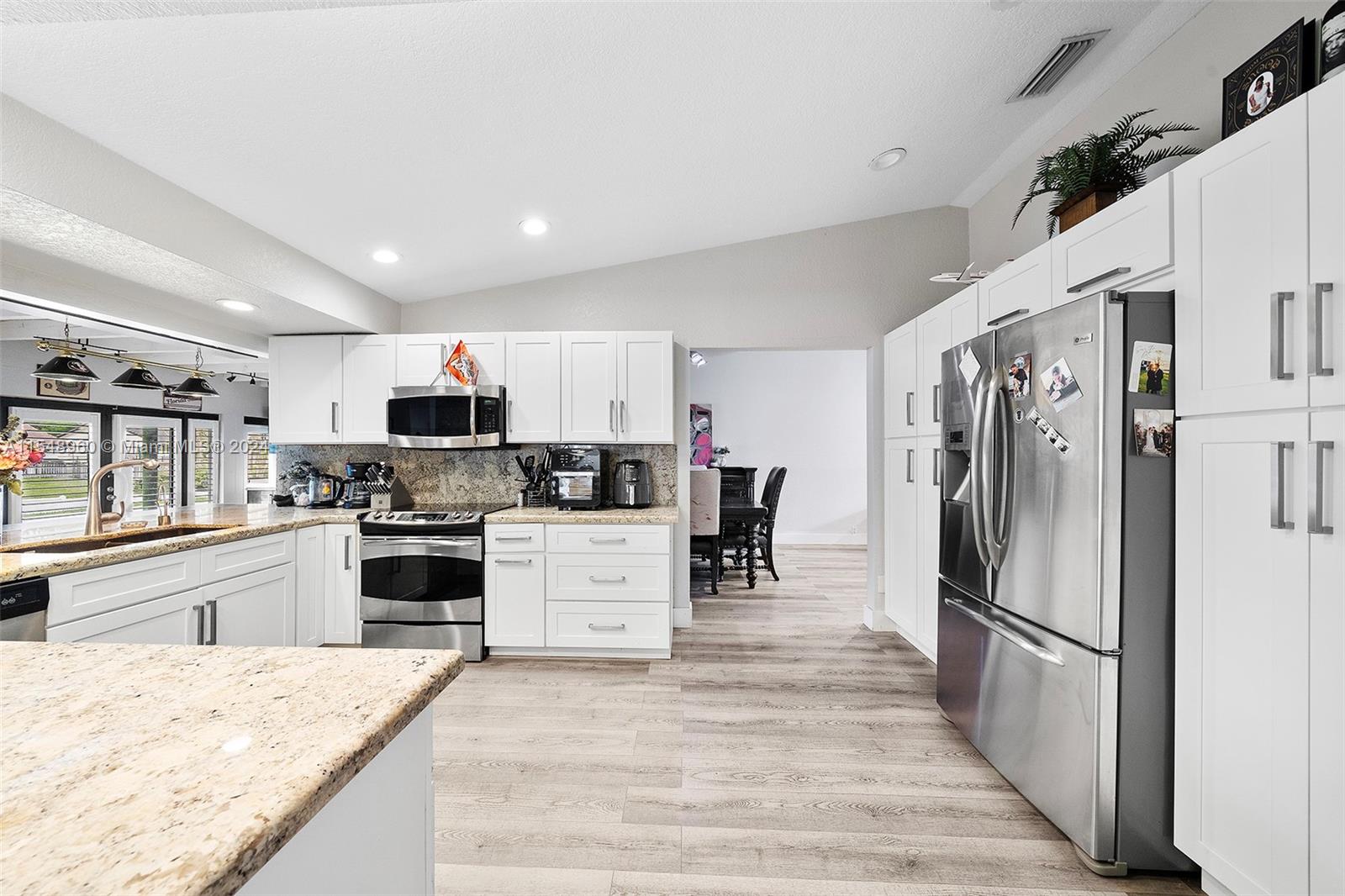 Introducing your dream residence in Jacaranda Lakes, Plantation! This exquisite 4 bedroom, 2.5 bathroom home offers over 3400 square feet of meticulously renovated living space, showcasing stunning lake vistas from every angle. Step inside to discover a modern kitchen adorned with top-of-the-line appliances, a spacious master suite with serene water views, and a tranquil outdoor patio perfect for relaxing or entertaining. Live the epitome of Florida luxury