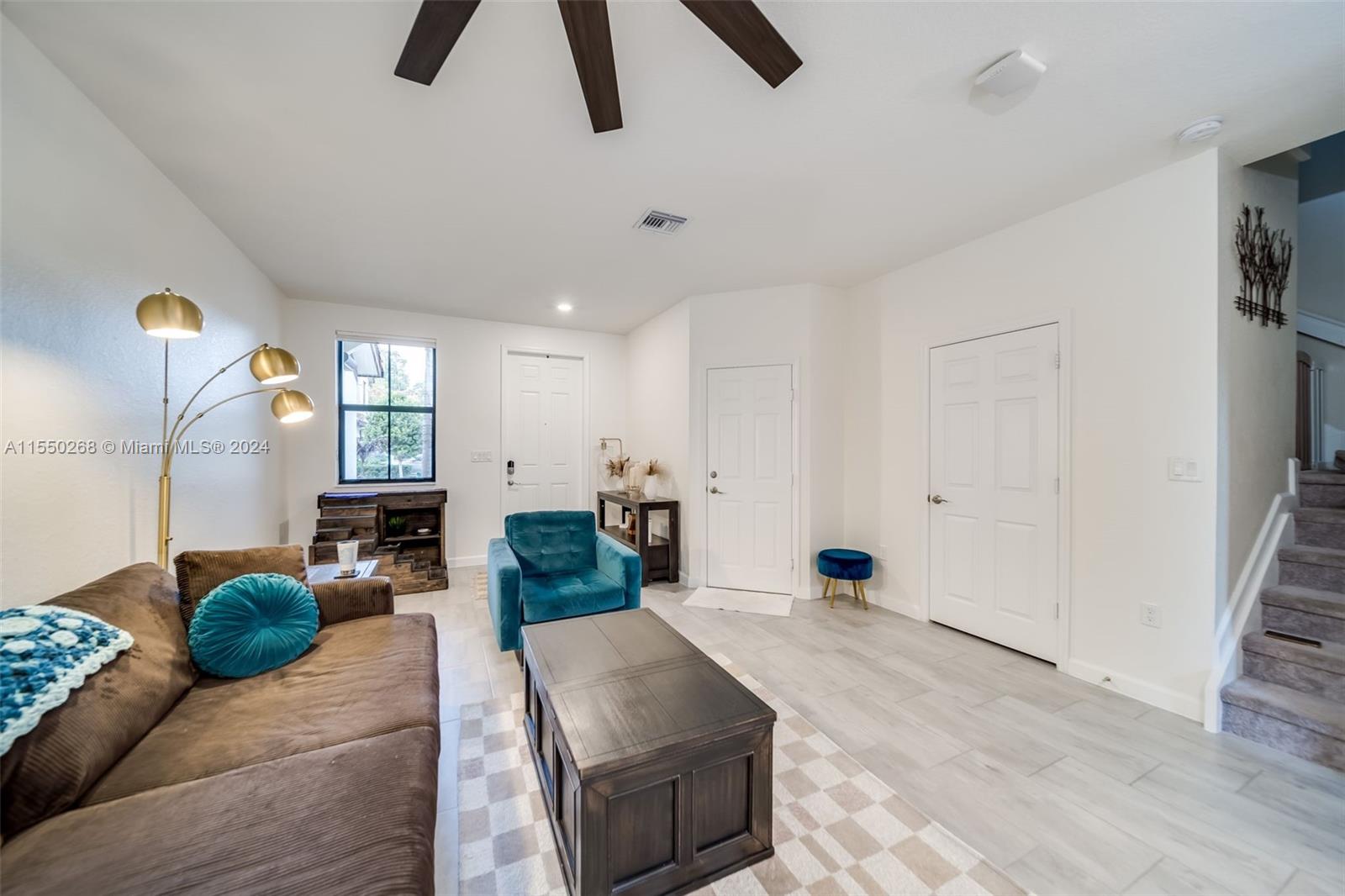 Centrally located townhome in the exclusive gated community of Magnolia Trails. Townhome features 3 bed/2.5 bath with a 1 car garage, 2 car driveway. This beautiful move-in ready smart home features upgraded tiles on the 1st floor, brick feature wall, freshly painted living area, quartz counter tops/ backsplash, epoxy garage floor, tankless water heater, extended patio with artificial turf & privacy fence, full hurricane protection (accordion shutters). Upstairs find a split floor plan with elegant master suite with custom closets. Community offers access controlled entry, community pool, lush landscaping, and guest parking. Excellent location near the Turnpike, Colleges and Universities, Hard Rock Hotel & Casino, shopping, restaurants and more. This townhome is move in ready!!