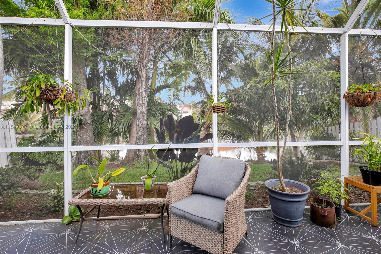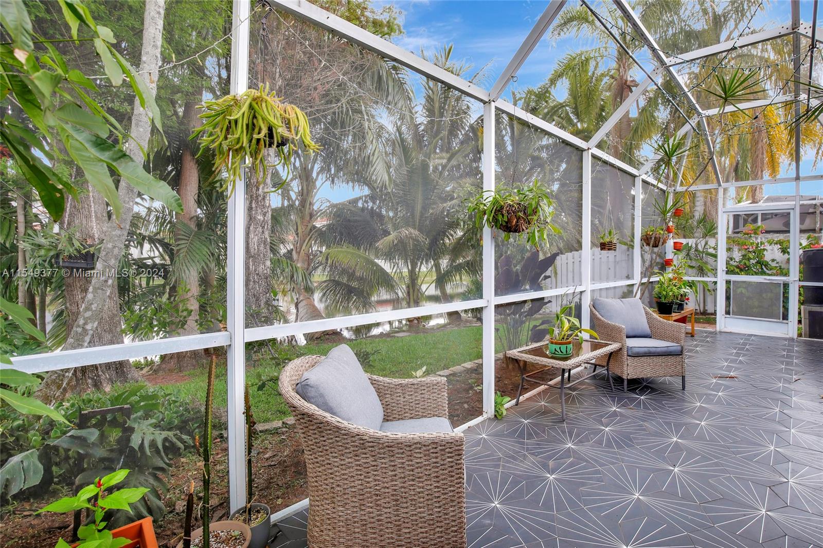 Exquisite Waterfront Residence boasting a tranquil vista from screened-in porch. Renovated kitchen and baths feature premium wood cabinets/granite/stainless appliances. Kitchen thoughtfully redesigned to include a convenient breakfast bar. Natural gas available for stove, water heater, and dryer. Upgrades include new roof 2023, gas water heater 2023, air conditioner 2021, dishwasher 2022, energy-efficient attic insulation 2022, and tile flooring throughout. With high-volume ceilings, split bdrm plan, and Roman tub, this home exudes luxury. Hurricane protection ensures peace of mind. Embrace a sustainable lifestyle with fruit trees- banana, dragon fruit, passion fruit, mango, coconut, and Barbados cherry, along with assorted herbs and vegetables. Easy access to I595, I75, Malls and airport.