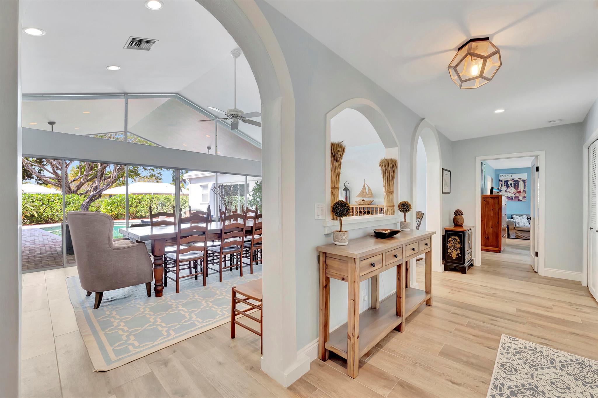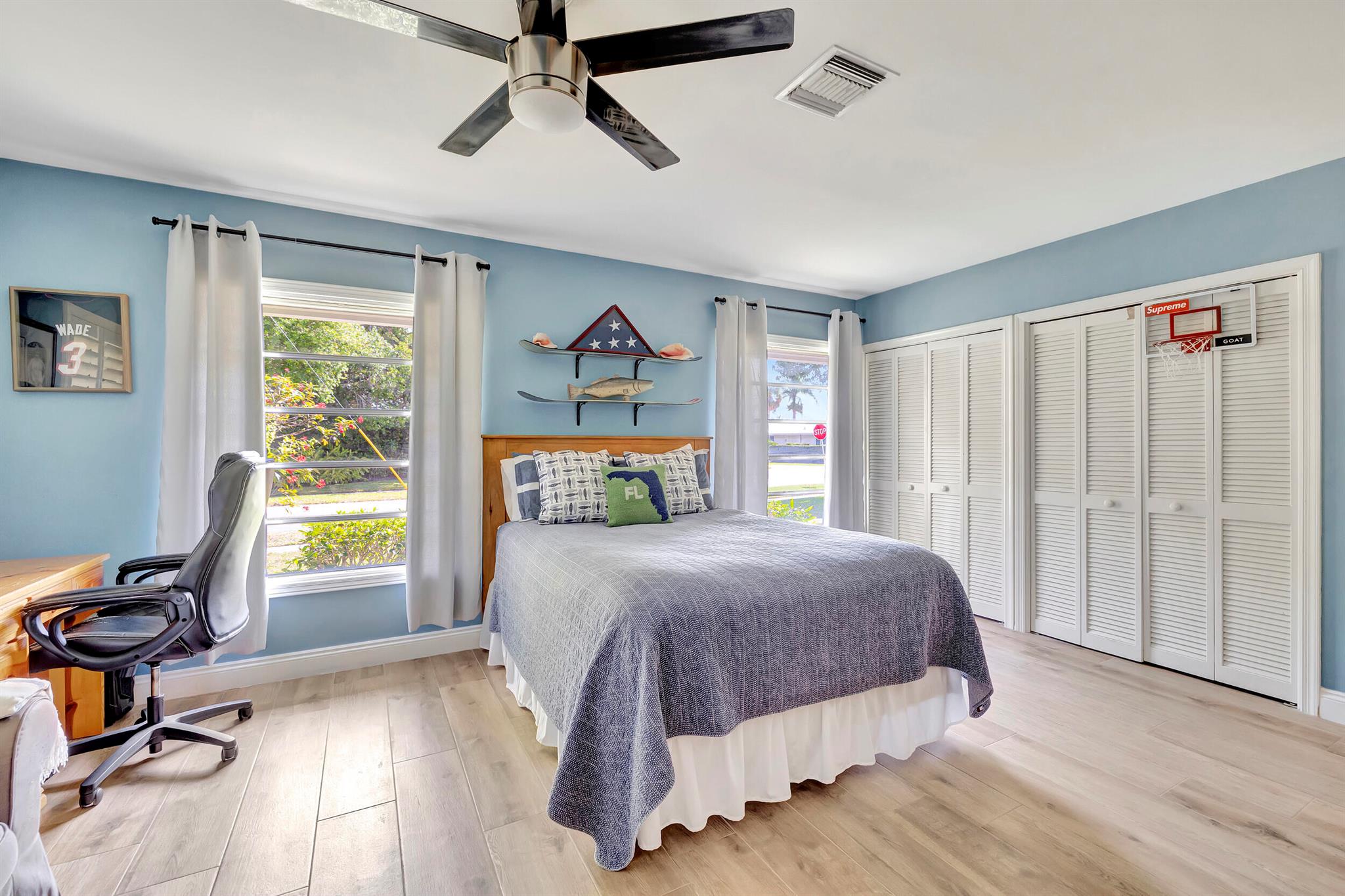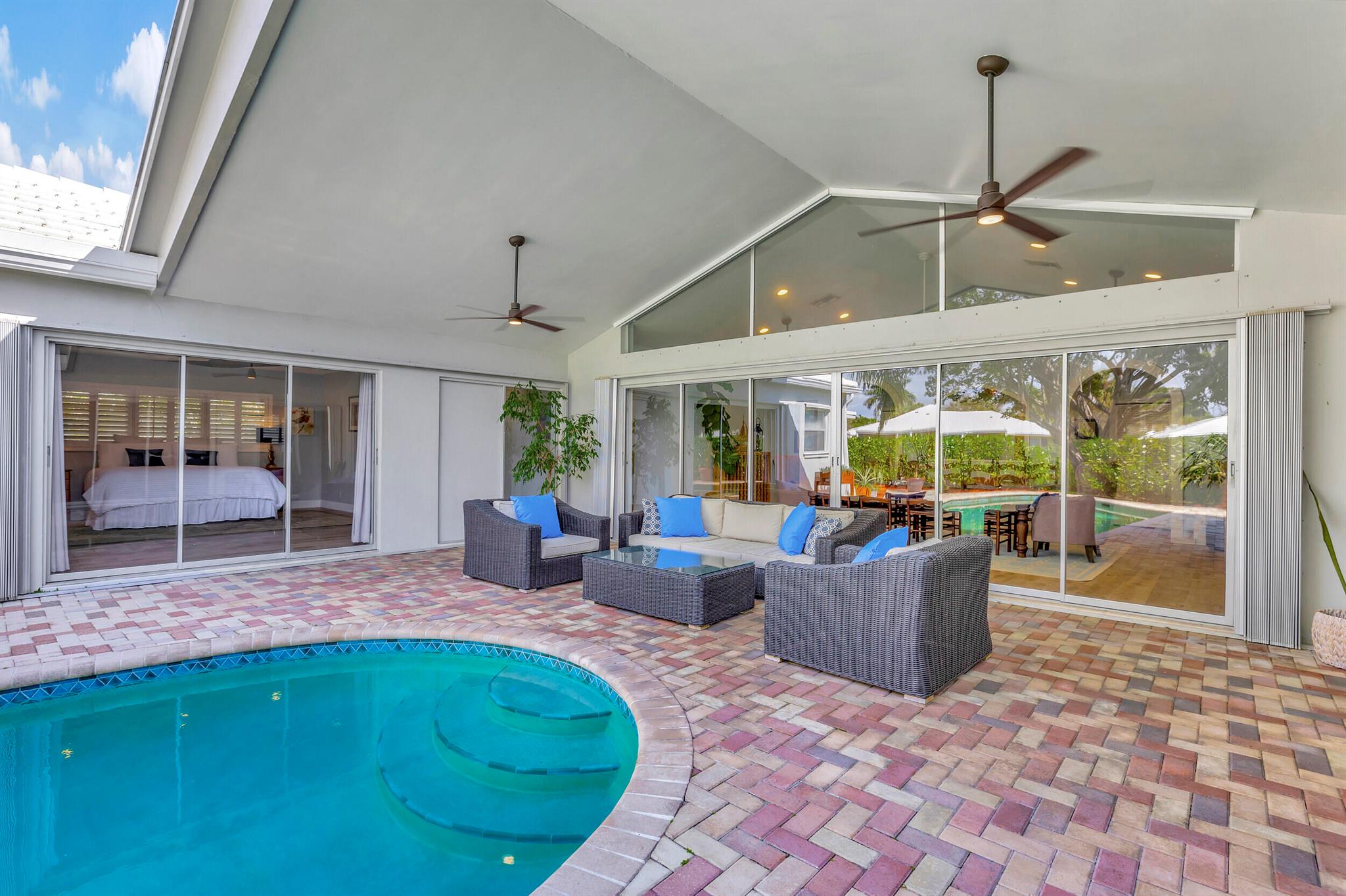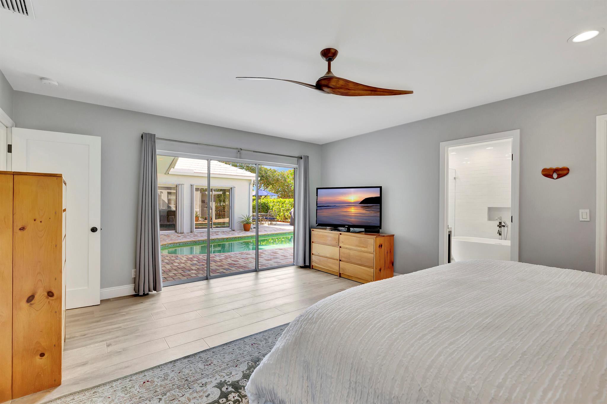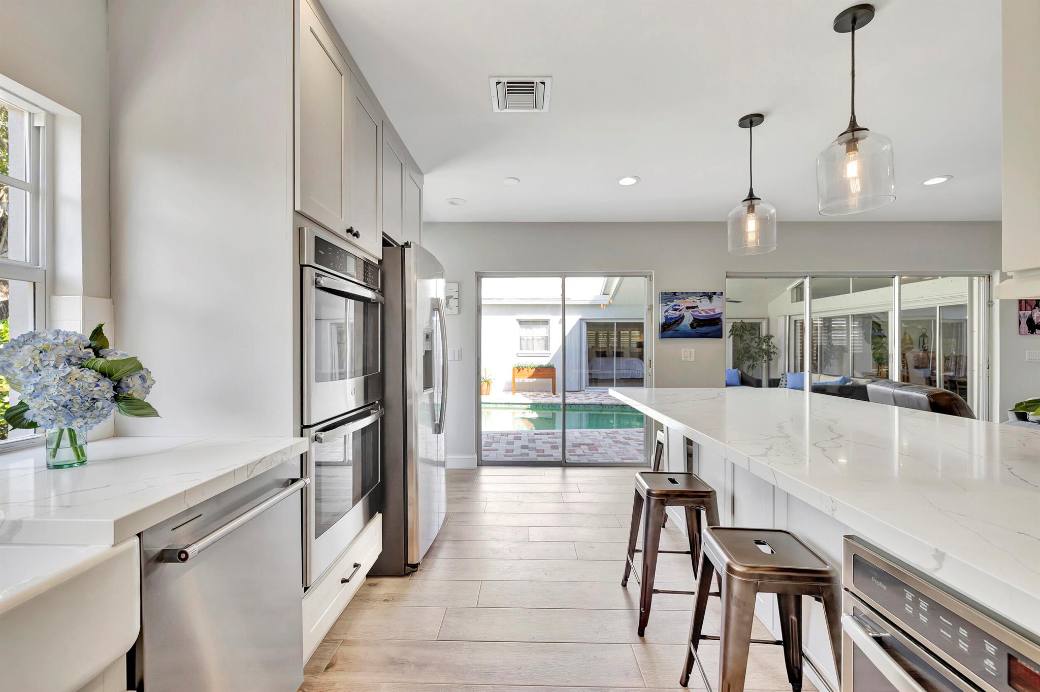 22' dock. 129' of waterfront dream home in Camino Gardens! You'll enjoy all the best East Boca Raton living has to offer A rated schools, Close to beaches, Downtown shopping, and restaurants . The kitchen has been updated with light gray shaker style cabinets, stainless steel appliances, GE Profile and Kitchenaid , Double oven, and built in Microwave, Breakfast bar for casual dining open to family room. The master bath with freestanding tub, marble floors and counter top with dual sinks, and walk in shower. Large master bedroom with walk in closet. This house has plenty of storage space. A beautiful wood look porcelain tile flooring is consistent throughout the living area and bedrooms. This is a great home for entertaining with large pool deck and covered porch
