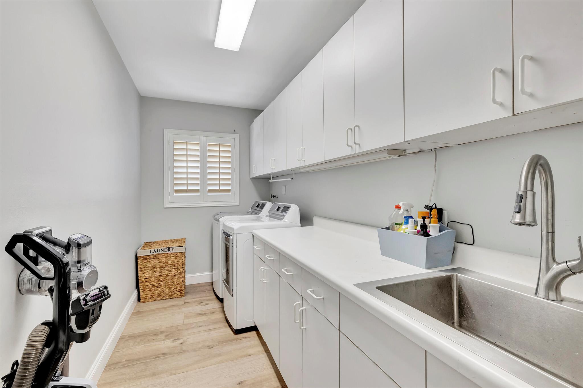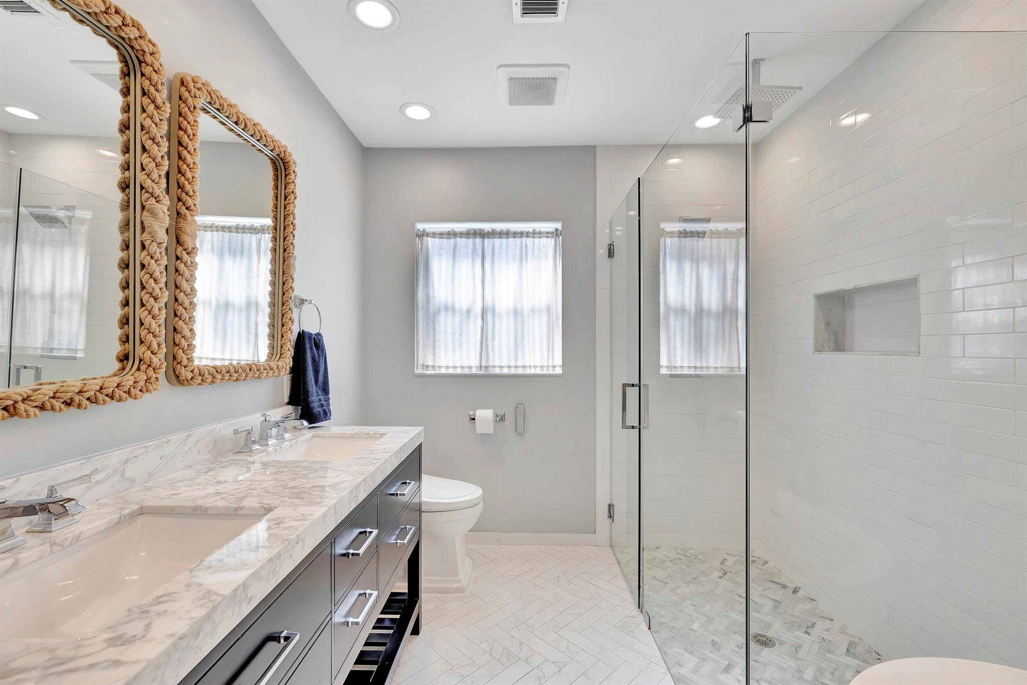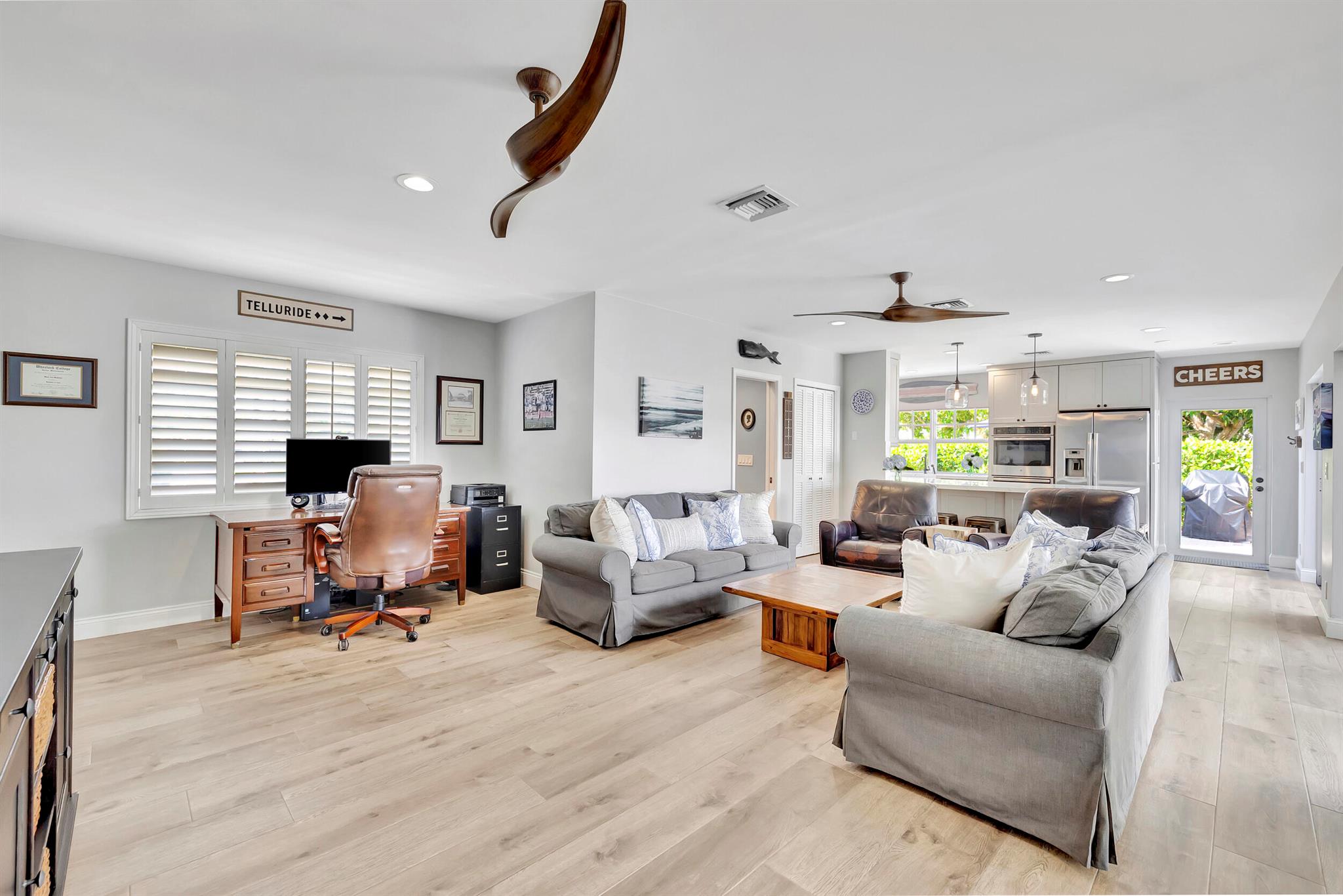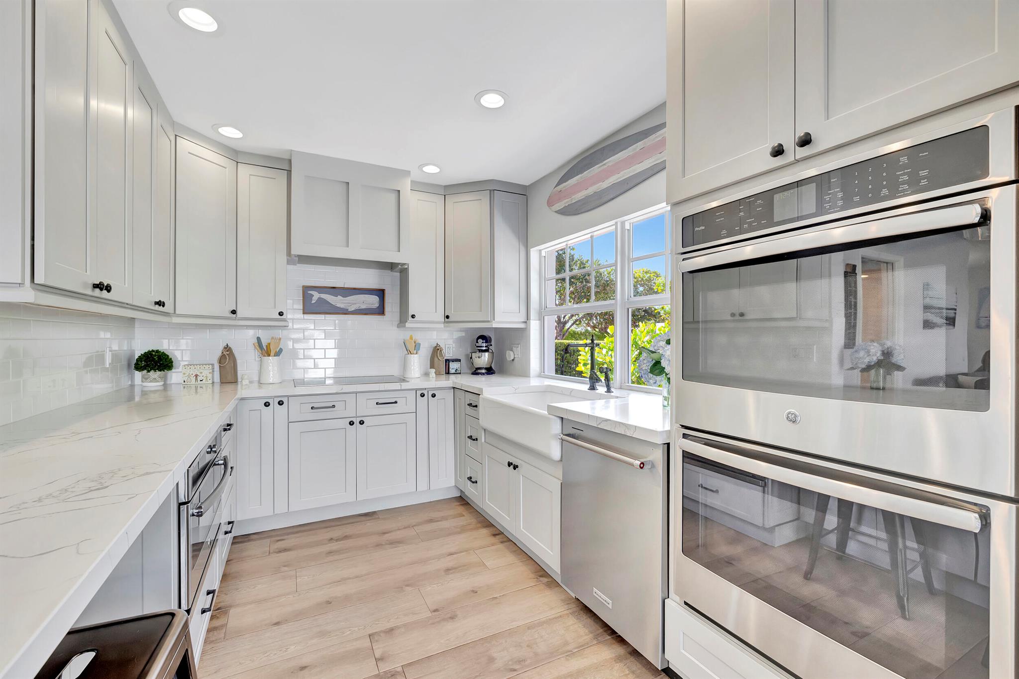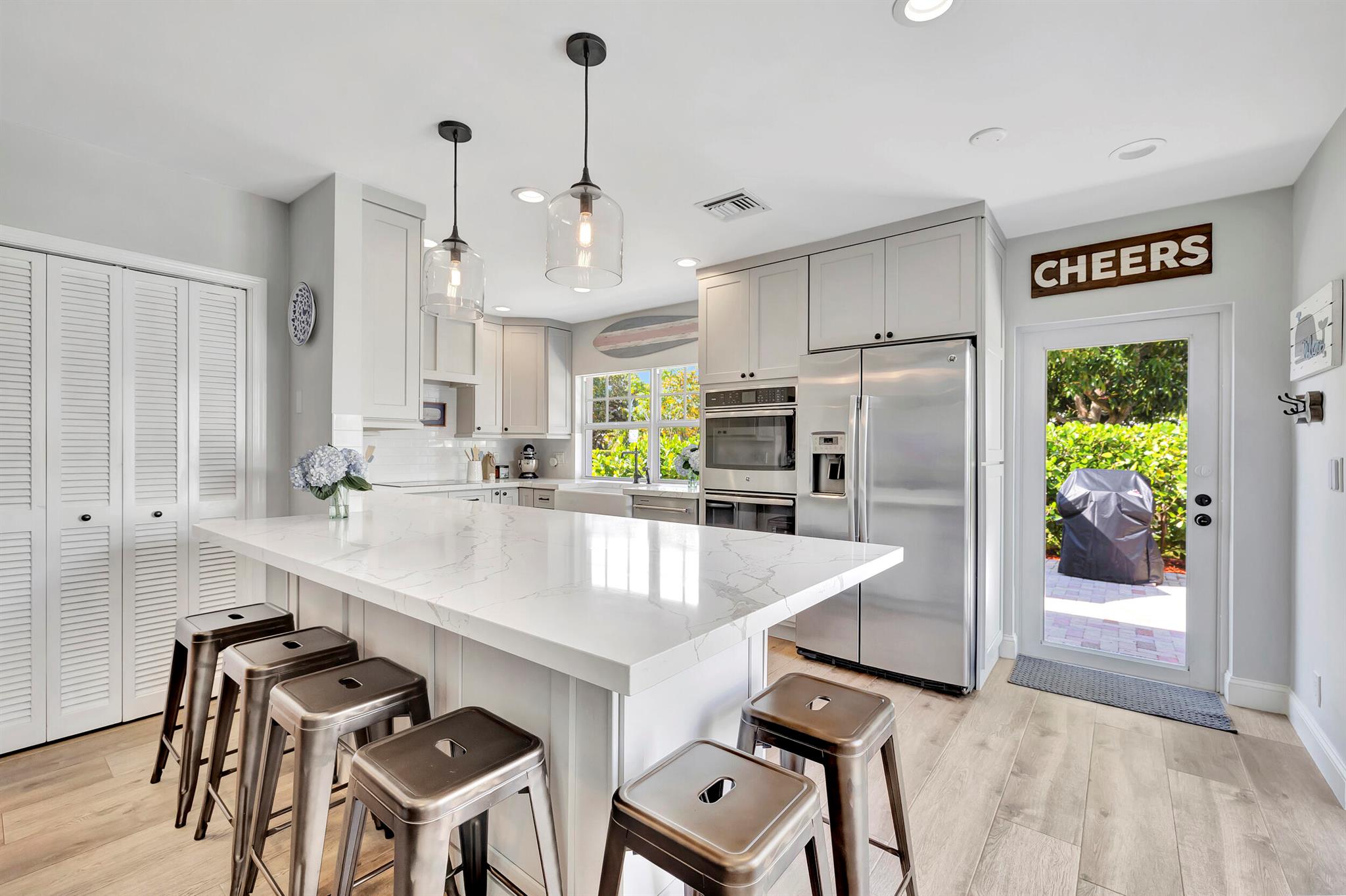 22' dock. 129' of waterfront dream home in Camino Gardens! You'll enjoy all the best East Boca Raton living has to offer A rated schools, Close to beaches, Downtown shopping, and restaurants . The kitchen has been updated with light gray shaker style cabinets, stainless steel appliances, GE Profile and Kitchenaid , Double oven, and built in Microwave, Breakfast bar for casual dining open to family room. The master bath with freestanding tub, marble floors and counter top with dual sinks, and walk in shower. Large master bedroom with walk in closet. This house has plenty of storage space. A beautiful wood look porcelain tile flooring is consistent throughout the living area and bedrooms. This is a great home for entertaining with large pool deck and covered porch