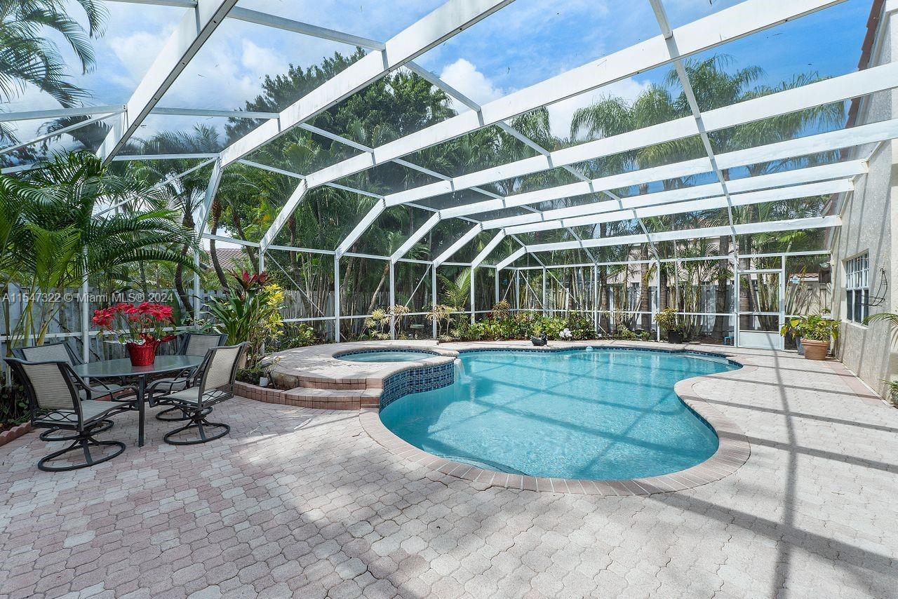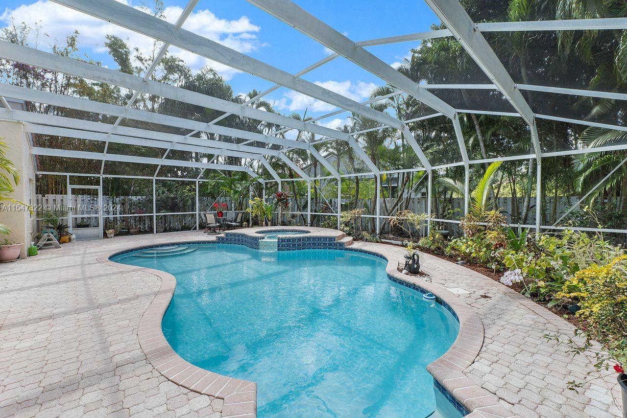 GREAT 4 BEDROOMS AND 2.5 BATHS ONE STORY HOME IN THE FALLS/WESTON WITH THE BEST PUBLIC SCHOOL SYSTEM IN SOUTH FLORIDA. SWIMMING POOL WITH A SPA/WATER FALL, PAVERS AND A SCREENED ENCLOSURE FOR TOTAL PRIVACY. GREAT AND POPULAR FLOOR PLAN, LOCATED IN A PRIVATE DEAD END STREET AT THE CUL-DE-SAC, 2 CAR GARAGE WITH PAVERS.