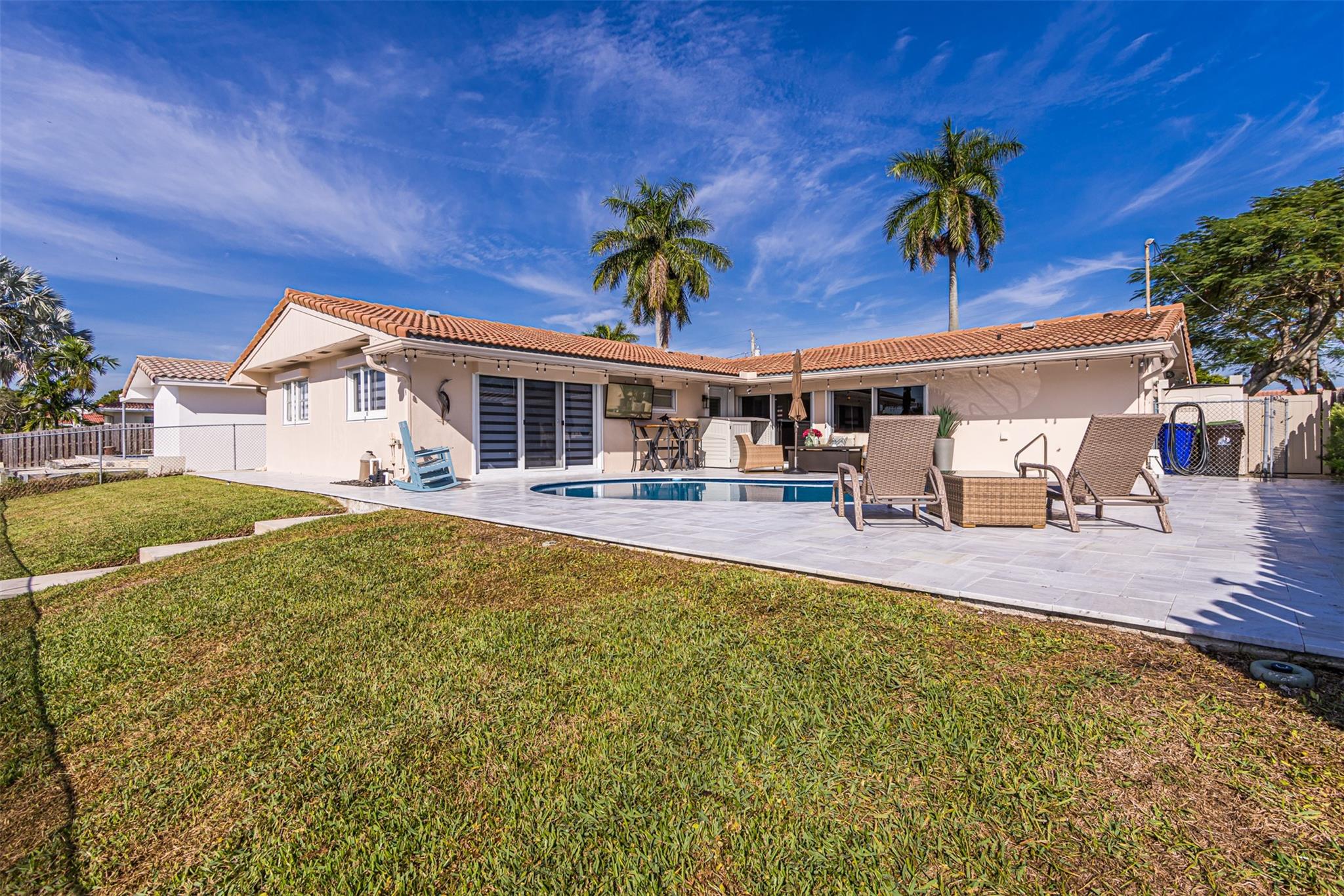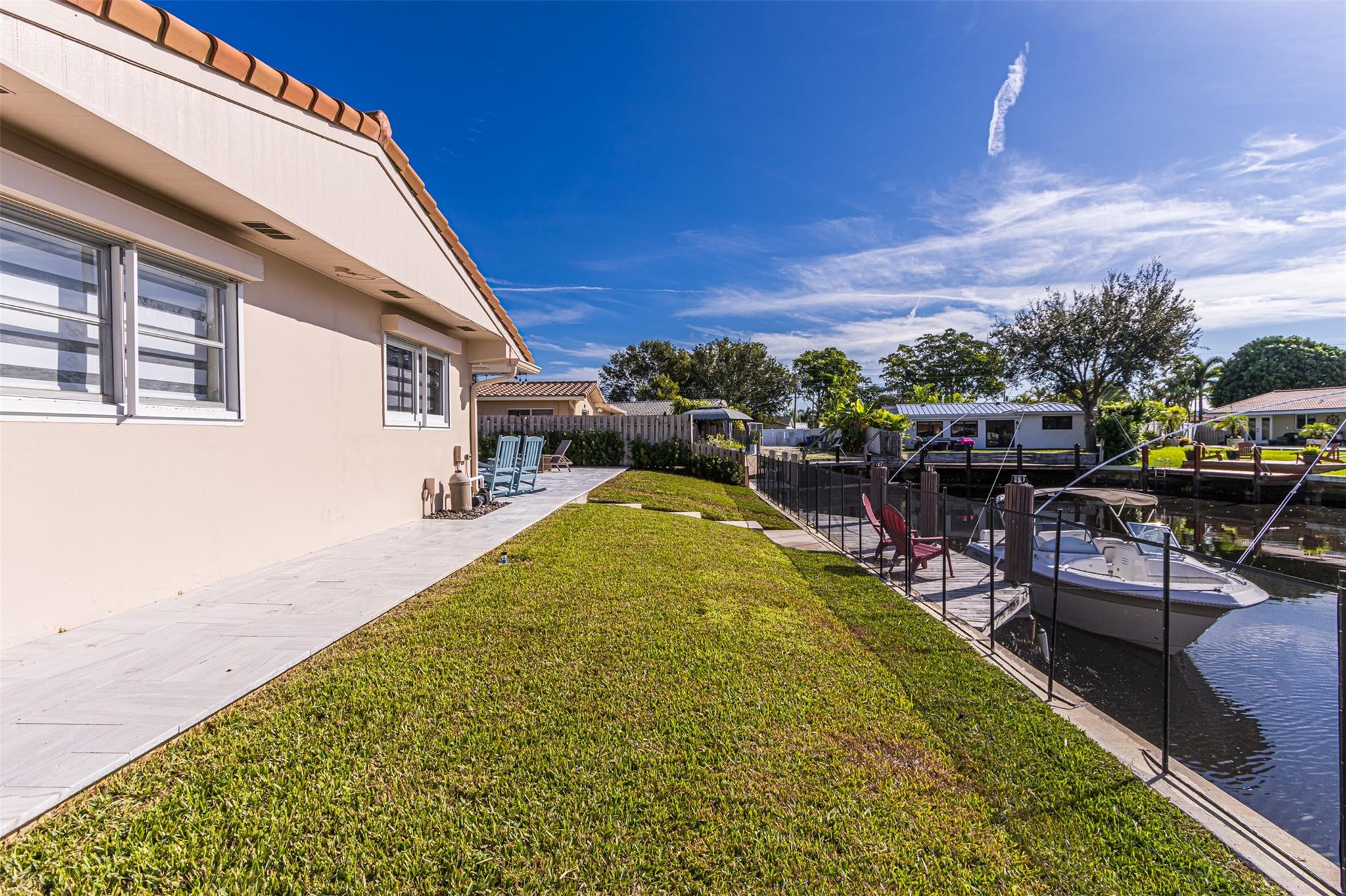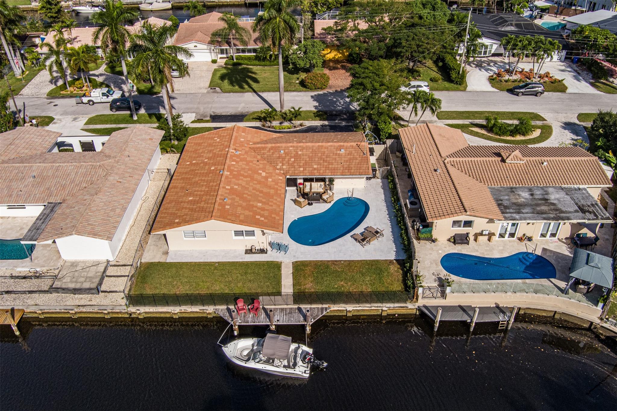 Highly desirable CORAL RIDGE ISLES neighborhood minutes from Pine Crest School. This home sits on a beautiful waterfront and just mins to the intercoastal. From floor to ceiling nothing has been left out. This home has been upgraded starting with the outside being painted, new gutters, tiled porch and the carport. New fence on both sides of home, solar lighting on fence & dock. Inside you have NEW 4ton A/C with blue light, electrical box, 40 gal hot water heater, washer/dryer, with impact sliding doors & window, 2nd bath completely remodeled with impact window, Primary bamboo, in other 2 bedrms laminated floor. Impact front door. Plumbing lines cleaned with new lining. Out back NEW marble tile around pool & patio pool was re-marcited , 100 ft seawall, 24ft dock. Boat negotiable. MUCH MORE.