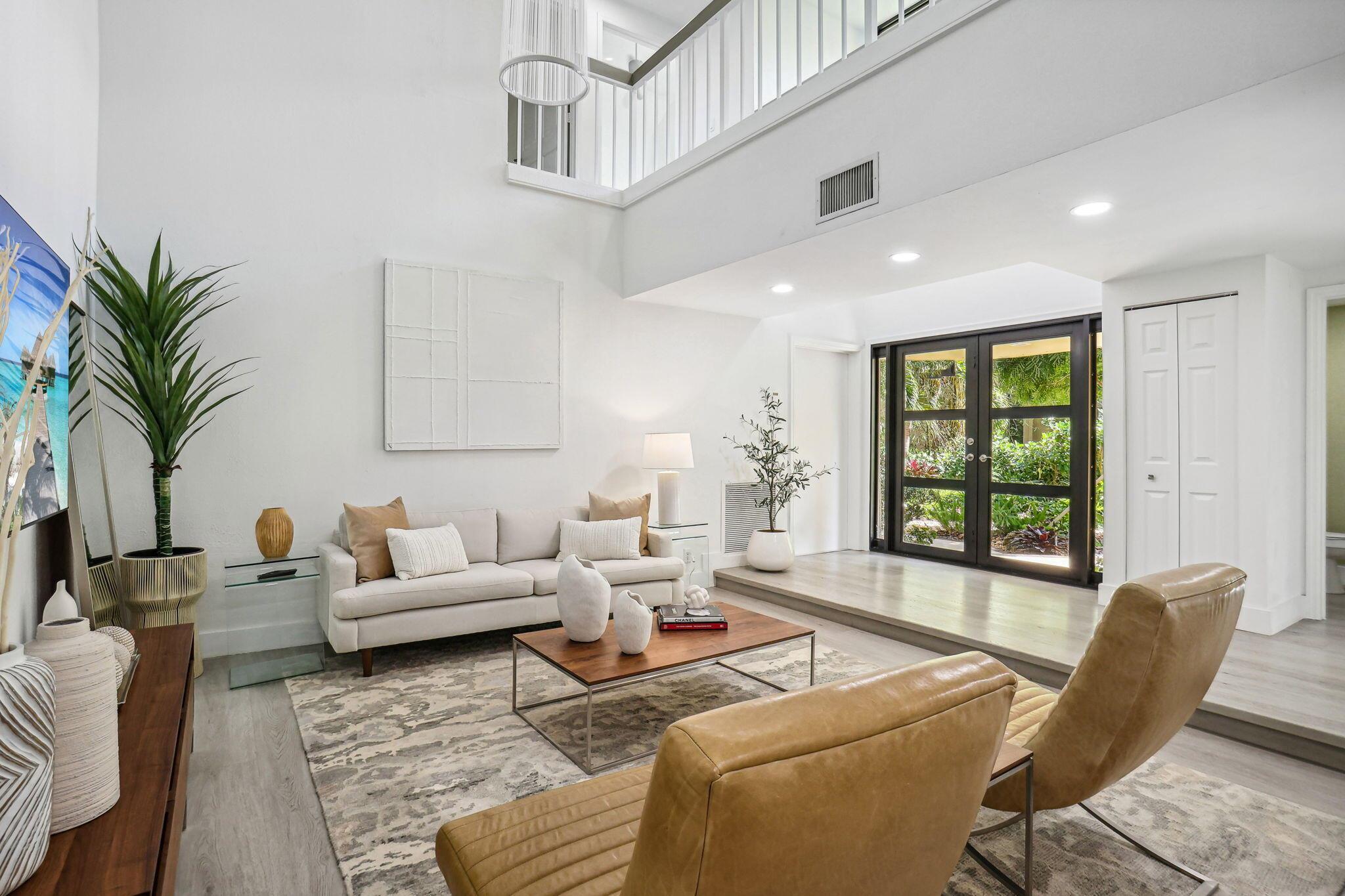 Presenting an exclusive opportunity in the heart of East Boca, this distinctive floor plan has not been available in Lands End for several years. Offering 3 bedrooms + loft, 2.5 baths, 2 car garage, private rooftop, fireplace and expansive backyard space with covered patio. True pride of ownership throughout the home - lush greenery and vibrant blooms frame the pathway leading to the entrance, showcasing meticulous attention to detail. Step inside to this grand double door entry, to a bright, open floor plan that boasts two living rooms with vaulted ceilings, creating versatile spaces for relaxation and entertainment. Custom kitchen with SS appliances and ample storage. Roof 2021, AC 2021, HW 2021, Impact Glass, Turf Backyard, Epoxy Flooring and custom cabinets in the garage.