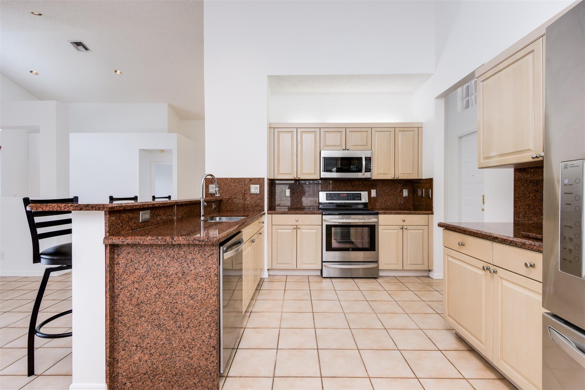 Extremely well located this Stunning Mayfair house w/ amazing upgrades, boasts title throughout, wood kitchen cabinetry, LG stainless appliances & granite counter tops, beautiful frameless showers, travertine marble & granite on master bathroom, wooden blinds, Samsung waher&dryer, built-in Solaire grill & fridge in the back patio. Hybrid generator & propane tanks included. Interior and exterior freshly painted. Beautiful gated community with security guard on site 24hrs, resort-style amenities - you don't want to miss this!