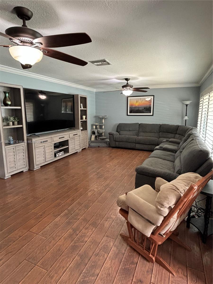 Beautiful 4/2 pool home with 1 car garage with oversized family room that looks out to pool area. Amazing kitchen with white wood cabinets, granite counters, and stainless appliances. All laminate wood floors except for bathrooms with tile. All bedrooms with walk in closets and updated bathrooms with glass shower doors. House has natural gas with gas water heater and dryer. Brick paver circular drive and plantation shutters on all interior windows. Hurricane proof front and garage door. Hurricane windows on front windows of house and accordion shutters to all other exterior windows. New pool pump and vacuum 2023, new wall unit a/c in oversized family room 2020. Fenced yard with maintained sprinkler system. Located close to schools, shopping, parks and major highways.