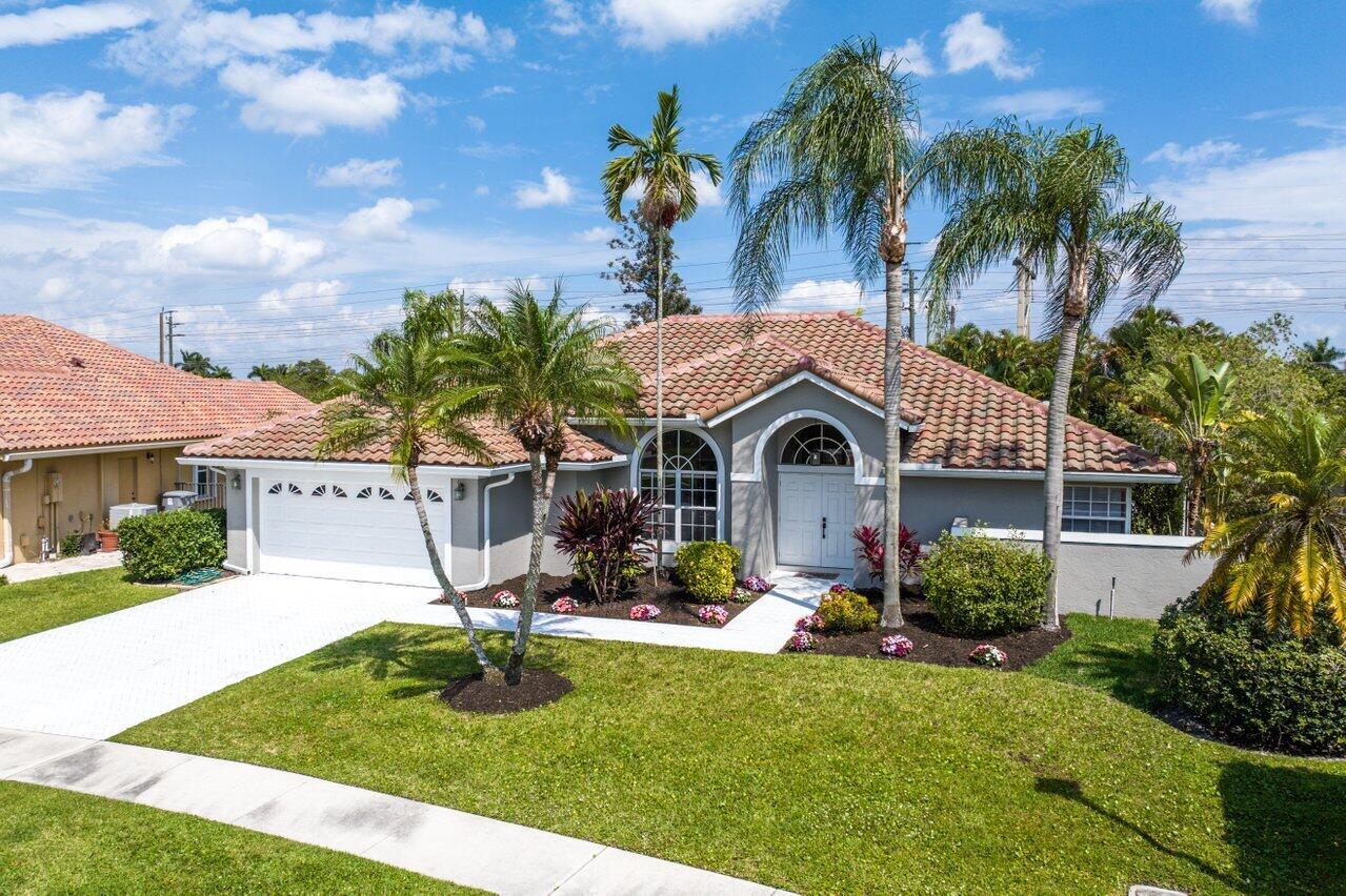 Beautiful one-story home in Mission Bay. Boasting 4 bedrooms PLUS BONUS ROOM and 2.5 baths, it's adorned with Italian porcelain tile throughout. The heart of the home, an open kitchen, merges seamlessly with the family room and breakfast nook, guiding you to the screened patio and private, fenced pool. Surrounded by lush gardens with no rear neighbors, privacy abounds. Features include a NEW ROOF, meticulously maintained, and a spacious main bedroom with direct pool access via French doors. Situated in a resort-style community, enjoy access to lakeside pools, a gazebo, clubhouse, fitness rooms, tennis courts, a tot lot, jacuzzi, and more. Perfectly located in a premier school district, close to shopping, entertainment, and all the best in Boca