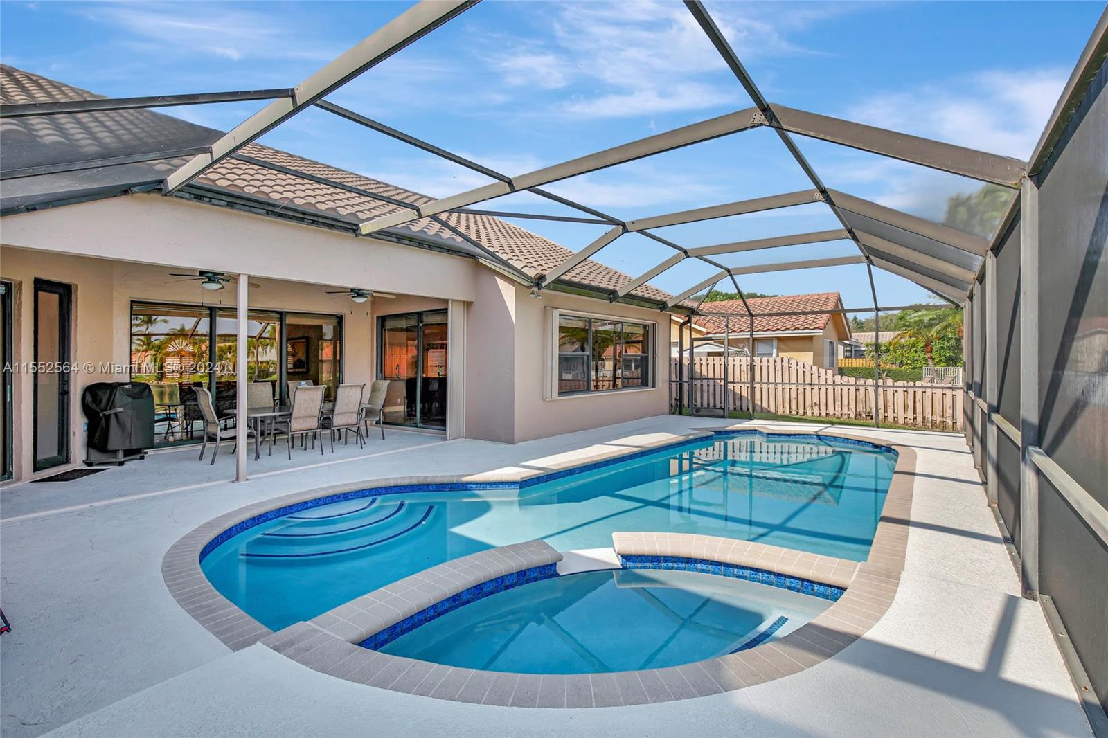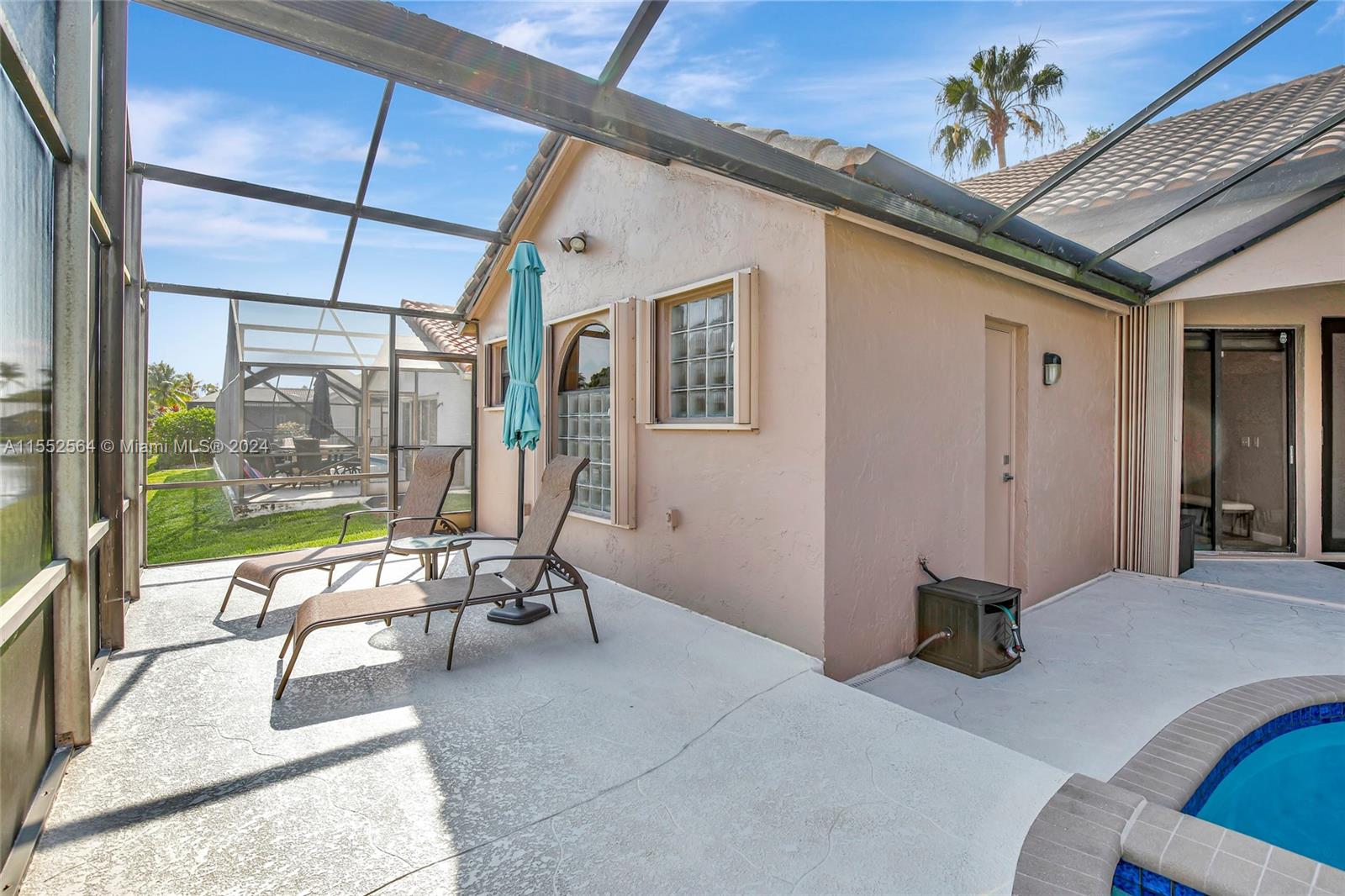 Stunning pool home located on premiere lakefront lot in coveted newer section of Jacaranda Lakes!! 2884' (under air). Spectacular lake views from all main living areas! BRAND NEW 5 ton Rheem AC installed (May 2024). Remodeled kitchen w/ wood cabinetry, granite tops, SS appliances, large pantry w/ pullouts, lazy Susan, & double oven! Impact glass windows, impact doors & garage door & accordion shutters. Large master bedroom w/ sitting area overlooking pool/lake, 2 walk in closets. Renovated master bath with double vanity, quartz countertops, stand alone tub, shower w/ frameless enclosure. Vaulted ceilings, open floorplan, 8' doors. Updated flooring in secondary bedrooms. Pool tile, coping diamondbrite, pump/filter, sprinkler pump all new. Circular driveway. Zoned for Central Park Elem!
