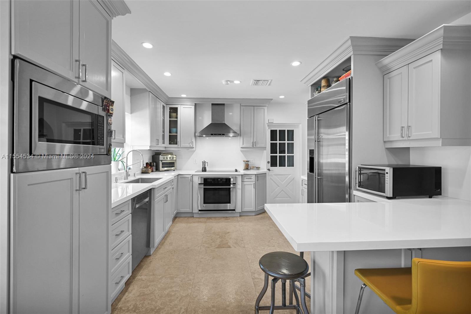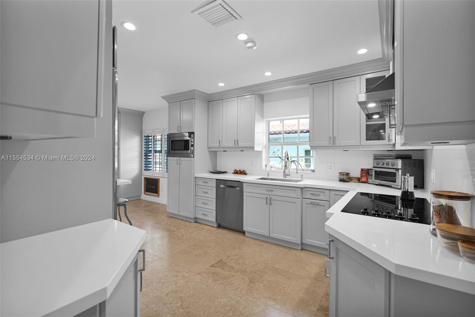 Traditional Coral Gables updated home on a corner lot.A perfect combination of Mid-century elements and Today’s comforts.Big windows bring tons of natural light.Spacious living areas with flexible layout. Comfortable kitchen has modern light gray floor to ceiling cabinets and full backsplash, white quartz ctop, built-in pantry & GE Monogram S/S appl. Majestic Master Bedroom w/spectacular Closet, French doors overlooking backyard with paved patio and playset. Pretty new roof, brand new AC, impact windows and doors, plantation shutters, window treatments, travertine stone wood floors, LED recessed lighting, custom closets. Walking distance from Granada Golf, CG Country Club (w/cafe, swimming & tennis). Venetian Pool & Miracle Mile with all the dining and entertainment at your disposal.