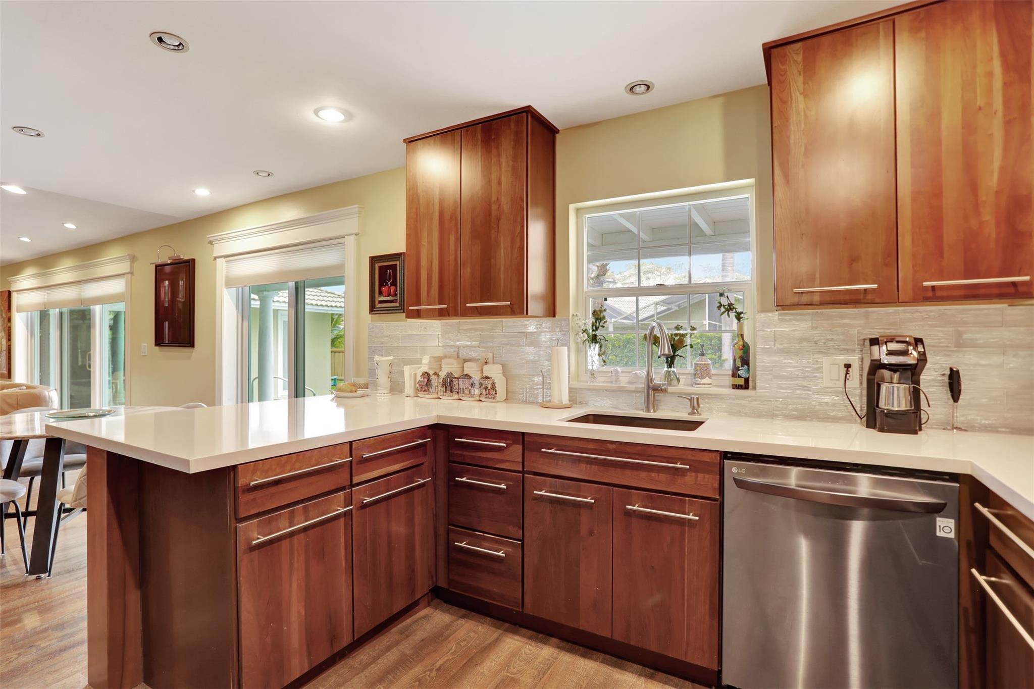 Welcome to Paseos! A wonderful, gated neighborhood tucked away in a great central location. This updated 4-bed, 2-bath home features vaulted ceilings, an updated modern kitchen with stainless steel appliances and quartz countertops, and a covered patio overlooking the pool. Enjoy safety with impact-rated windows and sliders, plus a whole-home Halo water filtration system. Other updates include AC (2022), water heater (2020), and impact-rated garage door (2024). Paseos offers gated security, tennis courts, playgrounds, walking paths, and A+ schools nearby. Don't miss out—schedule your showing today!