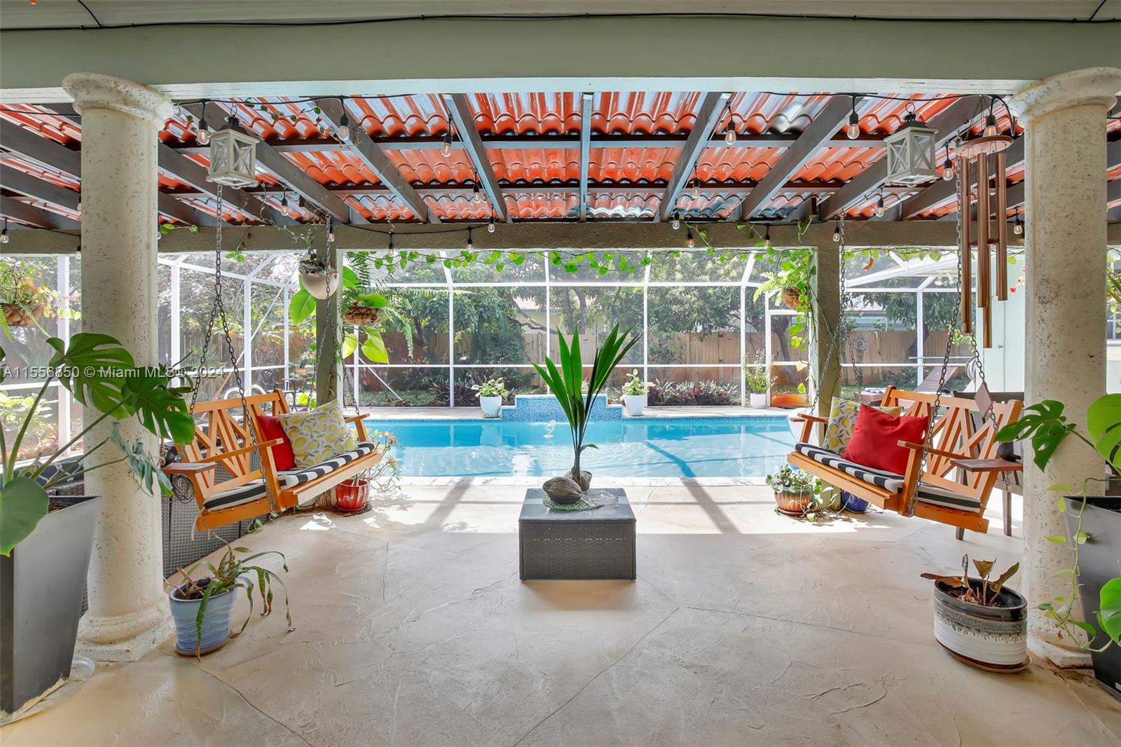 Step into your dream sanctuary! This stunning ranch-style oasis boasts 4 beds, 3 baths, and a dazzling pool. Close to schools, parks, and shopping. Entertain in the kitchen or relax in the perfectly sized main suite with a split floor plan for added privacy. Outside, enjoy the captivating pool oasis by basking in sunlit outdoor living spaces cocooned by lush tropical fruit trees—coconut, mango, avocado, jackfruit, papaya, and banana trees, to name a few. Recent updates: Roof (Mar 2024), A/C (2021), pool (2022), pool pump (2021), Samsung appliances (2021). Welcome home to paradise! All information deemed reliable but not guaranteed. Buyer and Buyer's Agent/Broker to verify all data independently. Seller and Agent/Broker not liable for inaccuracies.