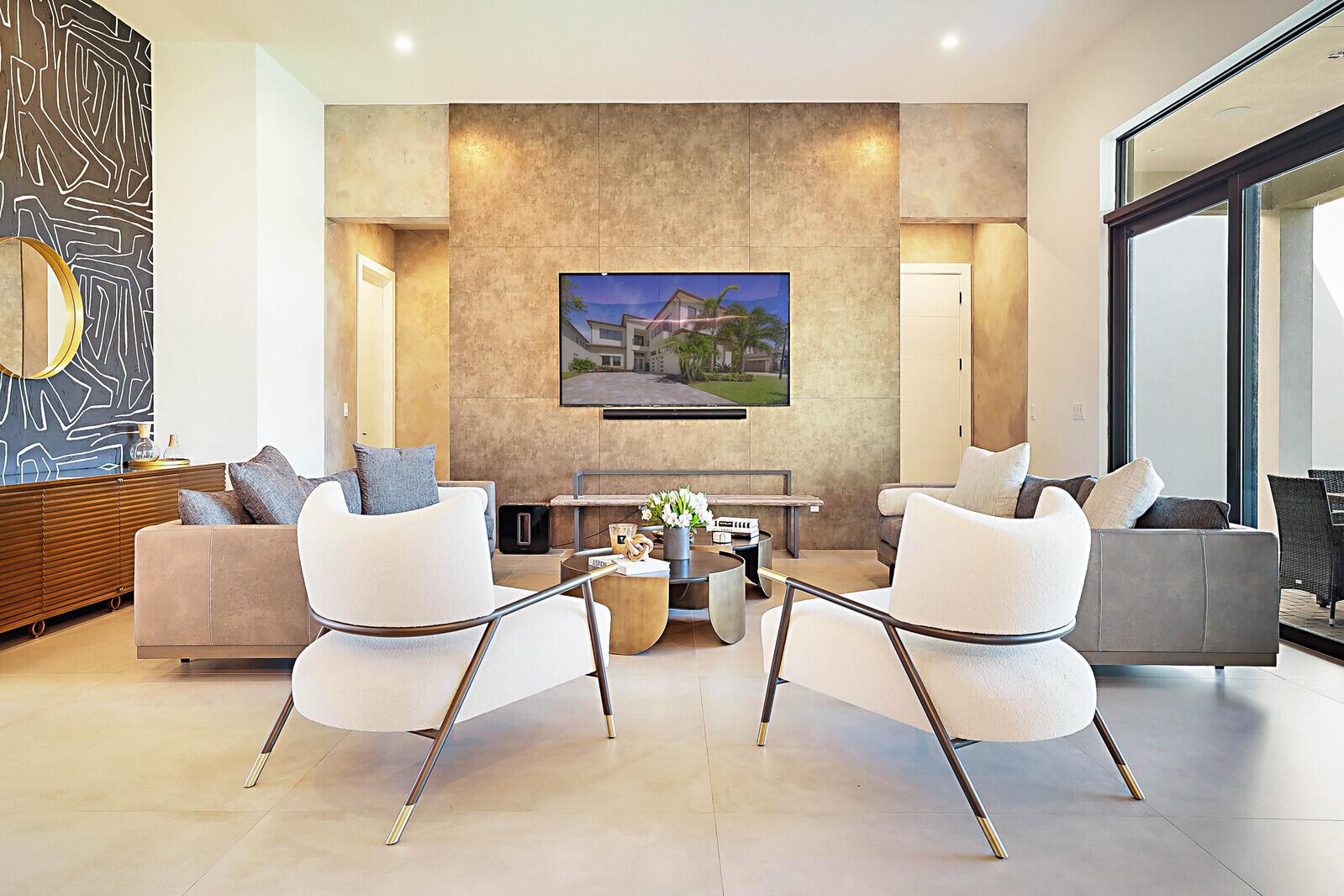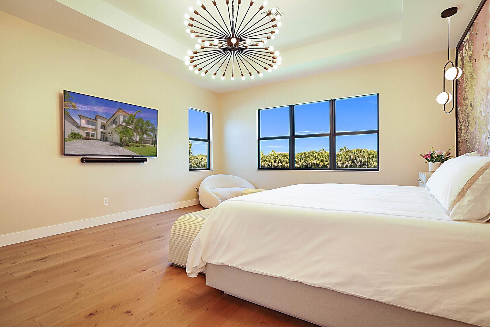 Welcome home to a custom Palma model like no other. 9119 Benedetta is the epitome of luxurious living boasting 5 ensuite bedrooms, a living room, an oversized dining room, chef's kitchen, home office, club room, loft, home theatre, powder room and 3 car garage. This extraordinary luxurious contemporary estate embodies a fusion of sophistication and style with incredible designer finishes throughout its 5,815 interior square feet. Nestled within the coveted Boca Bridges community this exceptional residence features unparalleled design, one-of-a-kind details, and luxurious upgrades. This home makes a commanding first impression with it's two story entryway, hand painted plaster walls and glass railing unfolding into a magnificent foyer. The chef's kitchen with custom cabinetry,