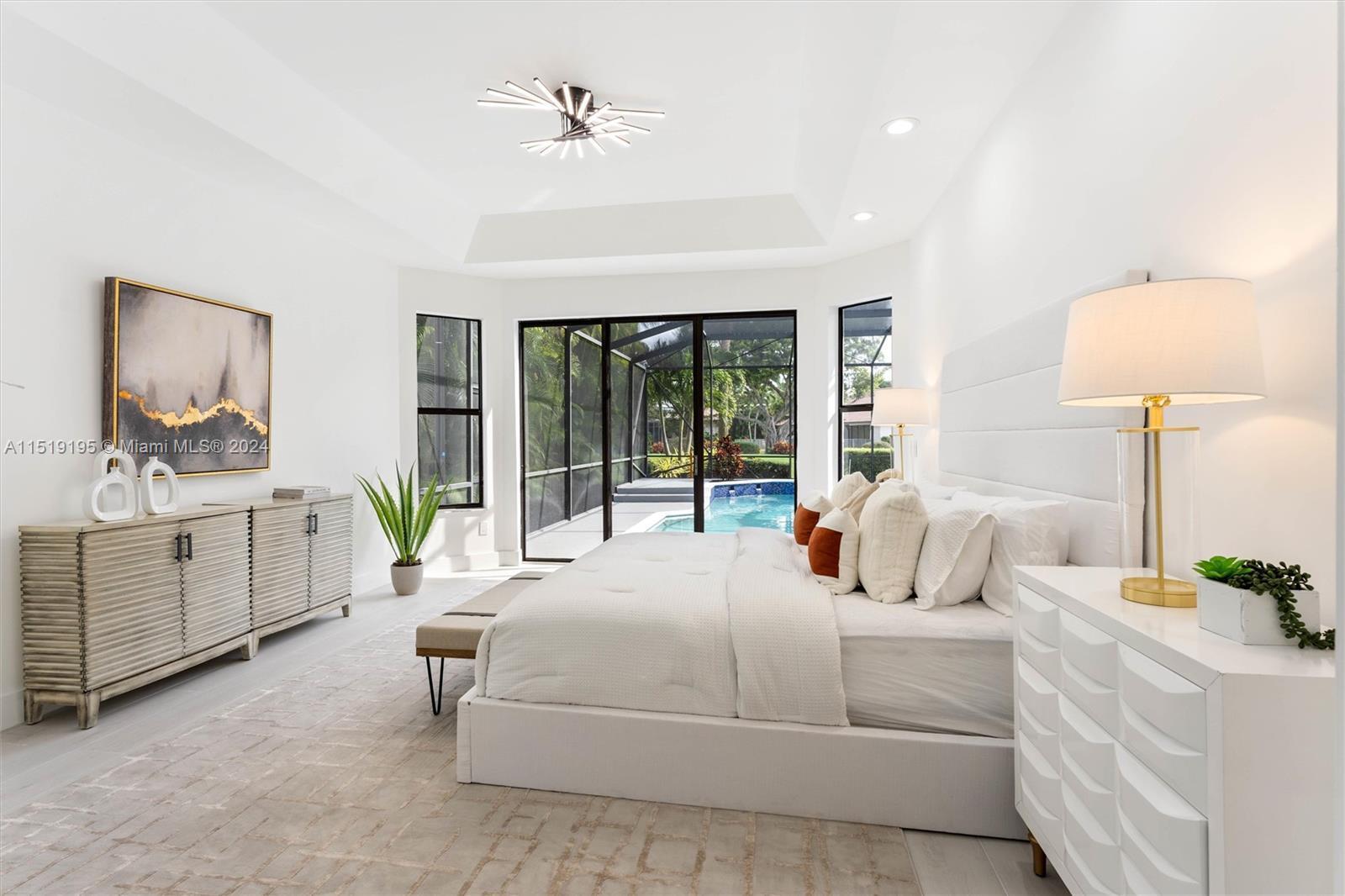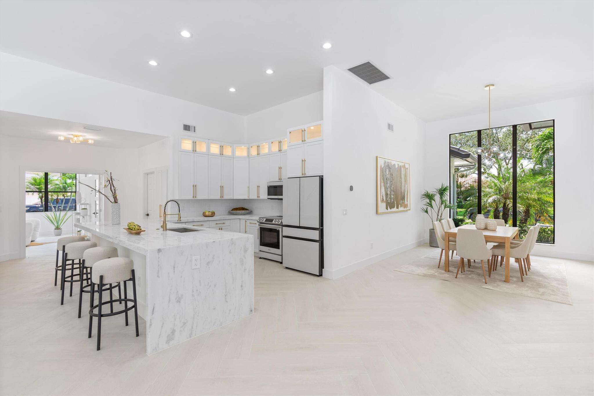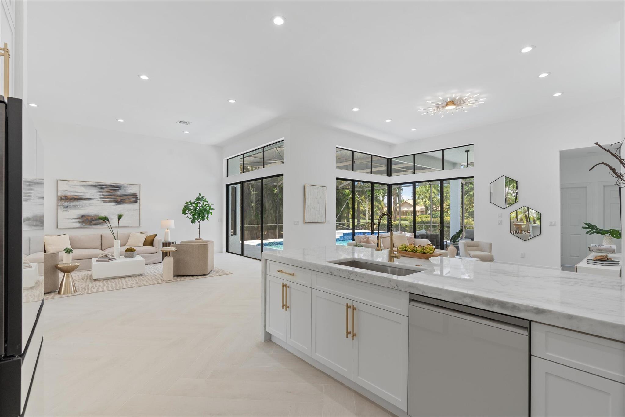 Stonebridge country club in West Boca Raton fully remodeled and stunning 4 bedroom showcase home with screened in swimming pool. A newer roof punctuates this gorgeous and large home that has been renovated to the highest exacting standards. Chevron laid porcelain wood look tile floors, brand new EVERYTHING, including all new kitchen with top of the range model stainless steel appliances, lighted custom cabinetry, and hosting island with quartzite waterfall countertops plus seating. Floor to ceiling windows with 24' ceilings highlight the outside pool area and give the home an immense feel and look. Master bath with slipper tub, and walk in flush laid infinity tile shower with rain head and individual handheld wand. This custom masterpiece is truly second to none with tons of upgrades.