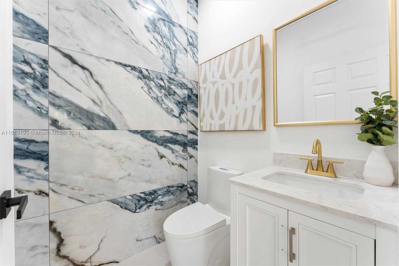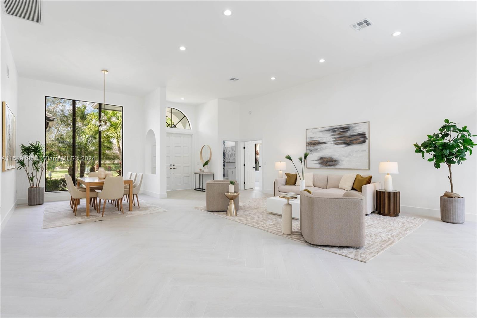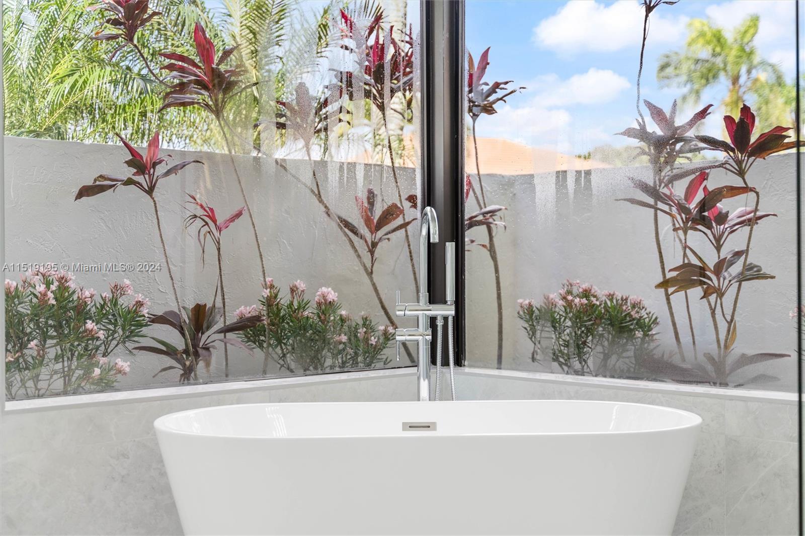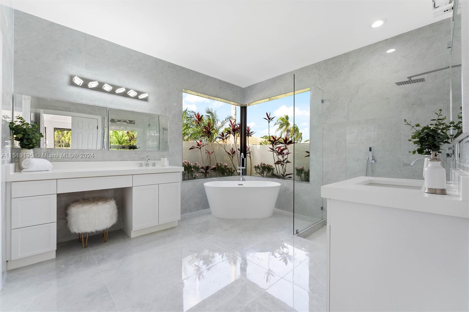 Stonebridge country club in West Boca Raton fully remodeled and stunning 4 bedroom showcase home with screened in swimming pool. A newer roof punctuates this gorgeous and large home that has been renovated to the highest exacting standards. Chevron laid porcelain wood look tile floors, brand new EVERYTHING, including all new kitchen with top of the range model stainless steel appliances, lighted custom cabinetry, and hosting island with quartzite waterfall countertops plus seating. Floor to ceiling windows with 24' ceilings highlight the outside pool area and give the home an immense feel and look. Master bath with slipper tub, and walk in flush laid infinity tile shower with rain head and individual handheld wand. This custom masterpiece is truly second to none with tons of upgrades.
