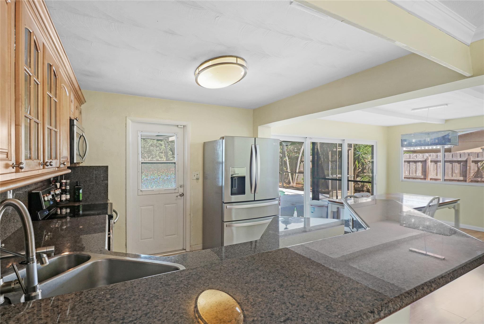 Spacious 3/2 pool home in east Pompano Beach with bonus room/garage conversion. Property features a metal roof, hurricane impact windows, screen enclosed swimming pool, granite countertops in the kitchen with stainless steel appliances, large primary bedroom, laminate flooring, large exterior storage shed, parking for 6 vehicles & room for an RV, boat, or work vehicle behind the fence/gate. Electric, A/C, and plumbing all in good working order. Home exterior has been freshly painted. Property larger than tax roll indicates. Owner is open to cash, conventional, FHA, or VA funding.