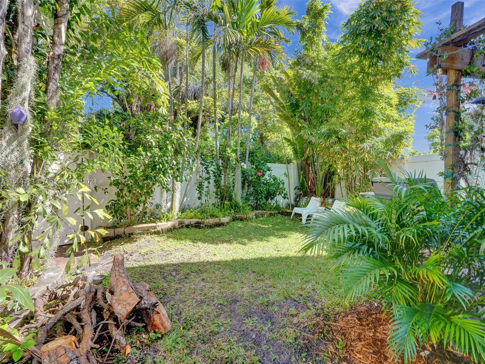 HIDDEN GEM of Ft Lauderdale. Fee Simple, 3-bedroom, 2.5-bathroom townhouse. This 2-story home comes with a 1 car garage plus additional assigned parking space. Upgraded appliances, Quartz countertops with waterfall and modern European designed cabinetry. Kitchen includes a new, built-in wine/beverage cooler for up to 72 bottles. NEW luxury vinyl flooring. Second floor all wood flooring. Metal roof should last a lifetime. Bedrooms have walk-in closets. 1 bedrooms has a balcony. ALL Hurricane impact windows and doors. Fenced backyard has many orchids, bamboo, palm trees, pergola and fire pit. Walking distance to Whole Foods, Publix, Total Wine and restaurants. Convenient to the airport, Las Olas and beach. Low HOA 192/mo covers landscaping and irrigation. Furniture negotiable!