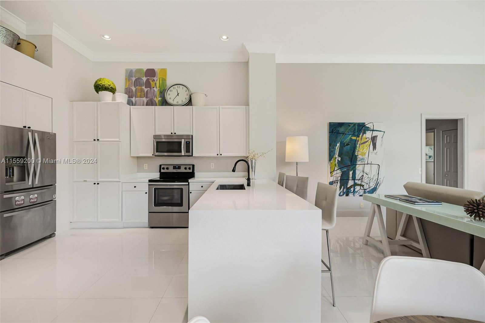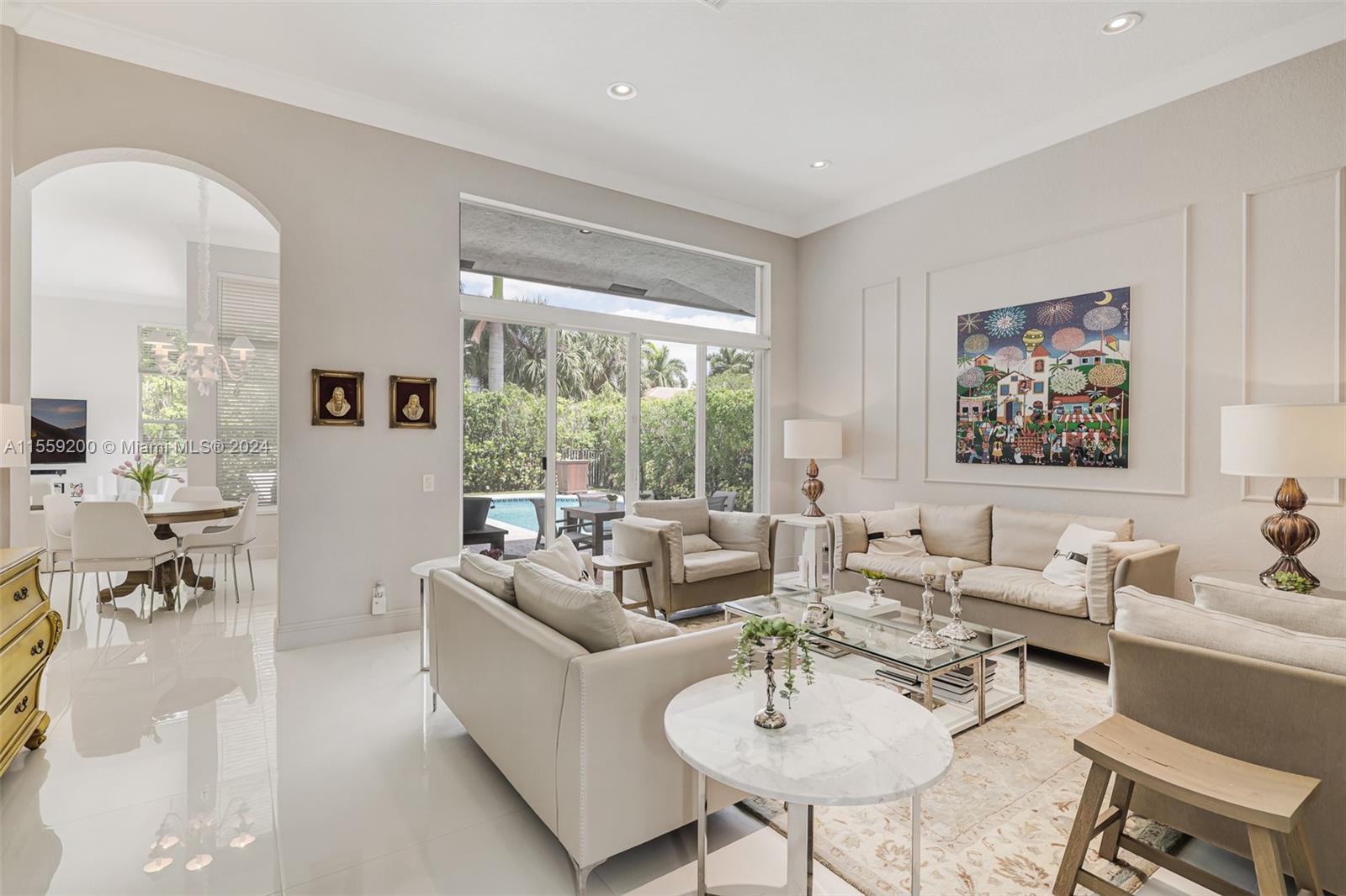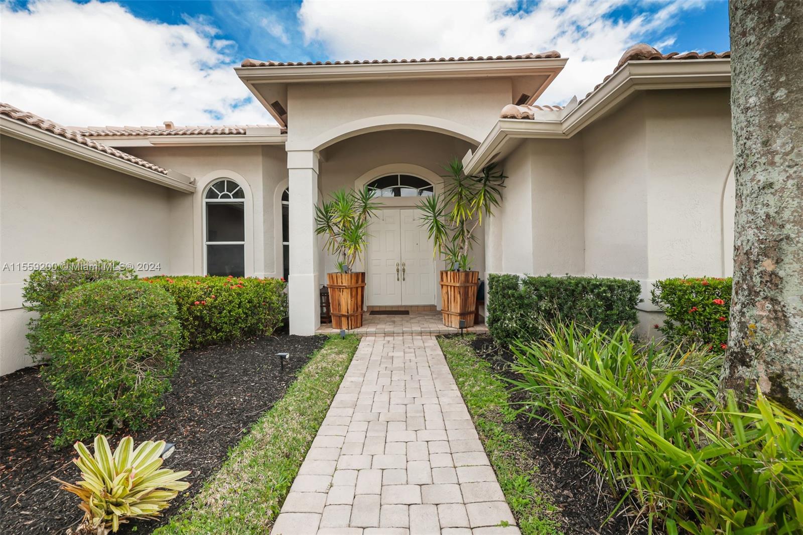 Nestled within the prestigious Weston Hills Country Club this elegant residence is sophisticated and meticulously maintained. The property features 4 bedrooms and 3 bathrooms with porcelain flooring across all common spaces. The Primary Suite offers luxurious engineered wood flooring, a cozy sitting area, a spacious bathroom with dual sinks and a separate shower. The kitchen comes with stainless steel appliances and new countertops, ensuring a ready-to-enjoy home experience from the moment you step in. The outdoor area with pool and brand new diamond bright, is perfect for gatherings. The home seamlessly combines style and functionality. Steps from School Bus Stop, Park, Playground, Basketball and Pickleball Court. A+ schools. Near north gate and Highways.