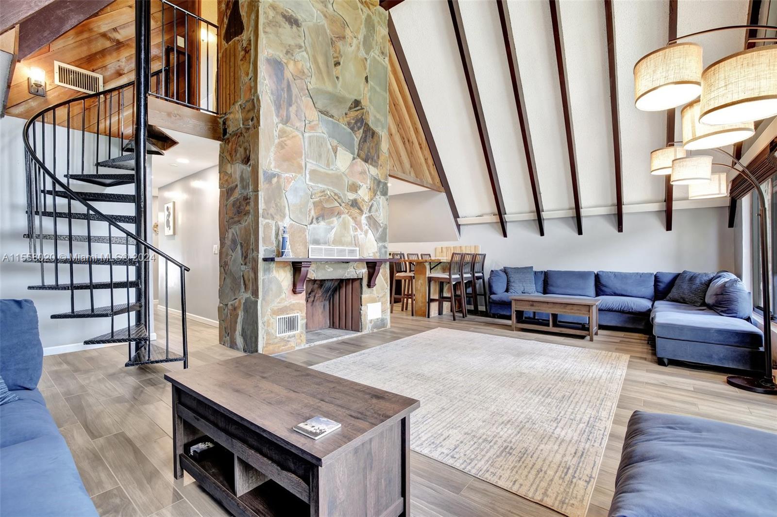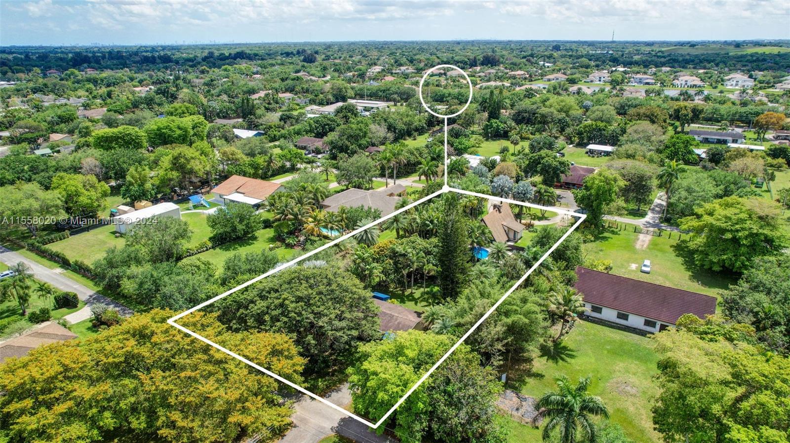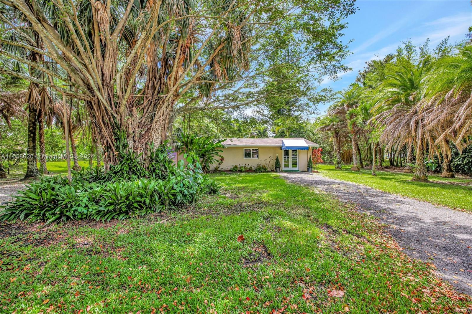One of a kind A-Frame home, nestled on nearly an acre w/ convenient front & rear access in one of Davie's best neighborhoods. 3 bed, 2 bath pool home PLUS fully equipped charming 2 bed, 1 bath guest house in what feels like tree lined Coconut Grove. Main residence accessible off 24th St features updated open kitchen, wood-burning fireplace & two 1st floor bedrooms opening to pool area; spiral staircase leads to secluded master suite above. Guest house, accessible via 23rd Ct, features a complete kitchen, cozy living space, bedroom, bath & office/bed - perfect for guests/rental income. Large storage shed, lush mature fruit trees & expansive space for all your hobbies, truly a rare find. Hurricane impact windows & doors. A true treasure offering privacy, space, versatility & A Rated Schools.