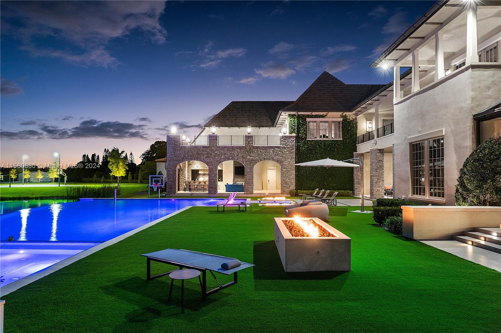 Experience the epitome of luxury with this custom French Country style mansion in Southwest Ranches. This home boasts over 15,000+ sq ft and features a movie theater, soaring ceilings, sprawling living areas, and resplendent bedroom suites. Outdoor amenities include an infinity pool, summer kitchen, and a full basketball court. Modern conveniences include Crestron Home Automation, a Generac generator, wolf appliances, and an automated privacy gate. Entertain throughout several entertainment areas that can host a multitude of guests. Embrace true serenity as the home is situated on a lot expanding nearly 5 acres that faces a 4 acre lake with custom fountains. Capture the opportunity to make this immaculate estate your next oasis.