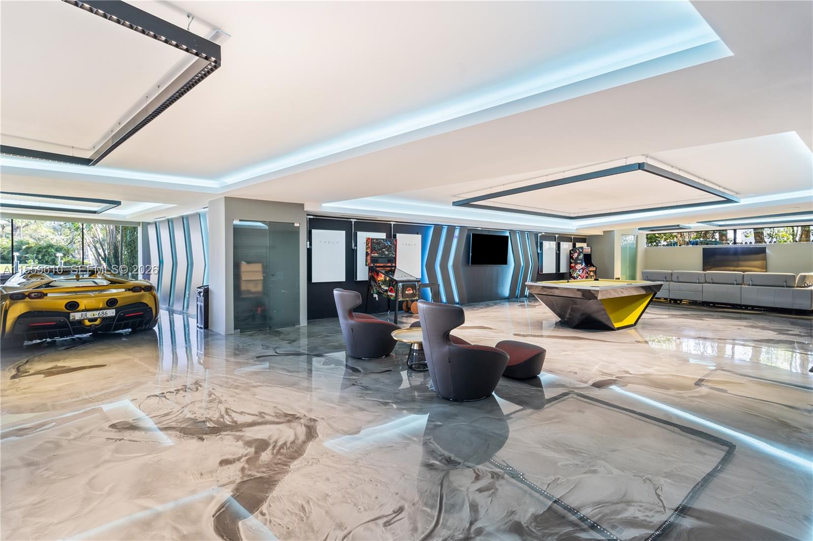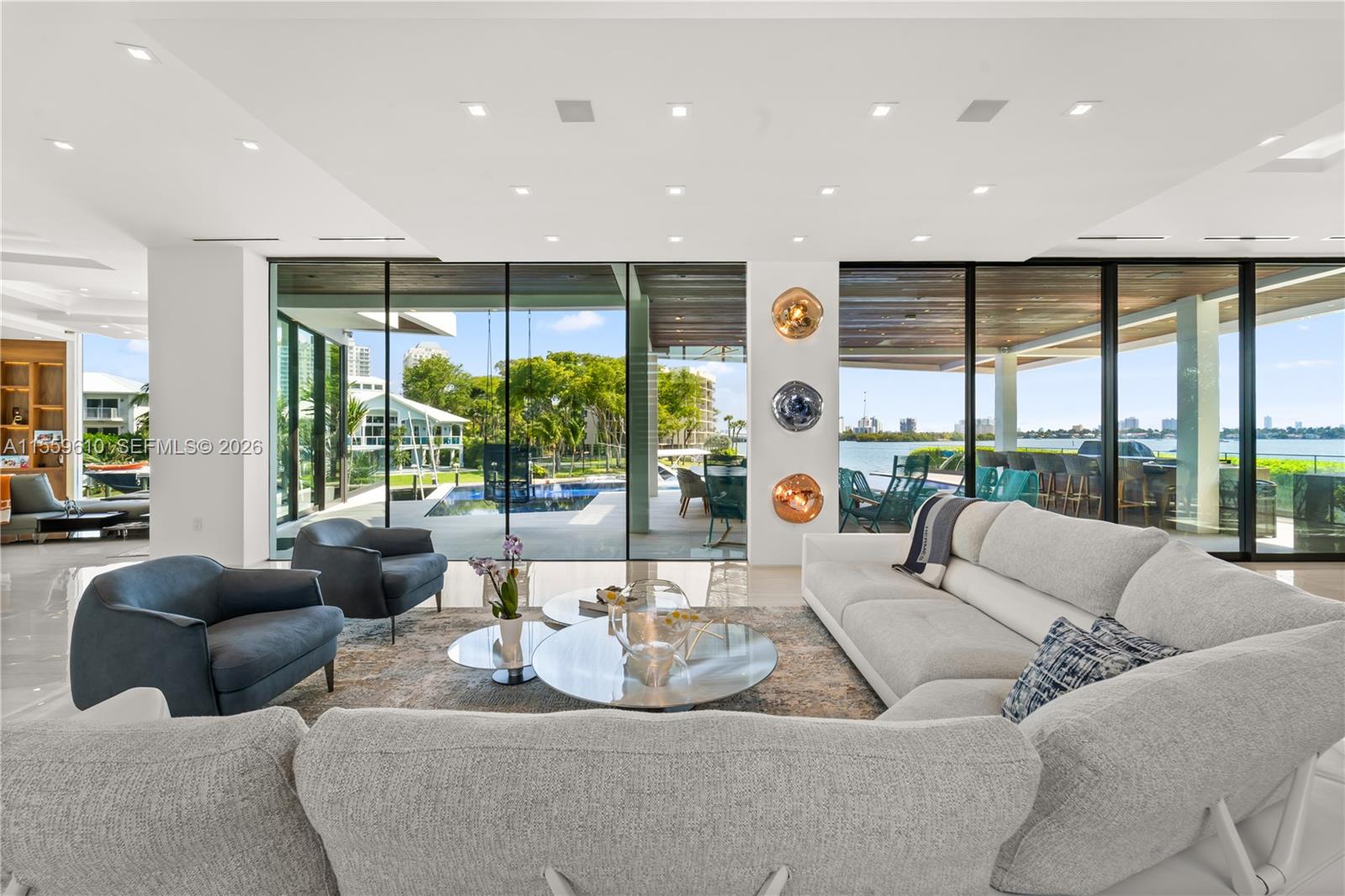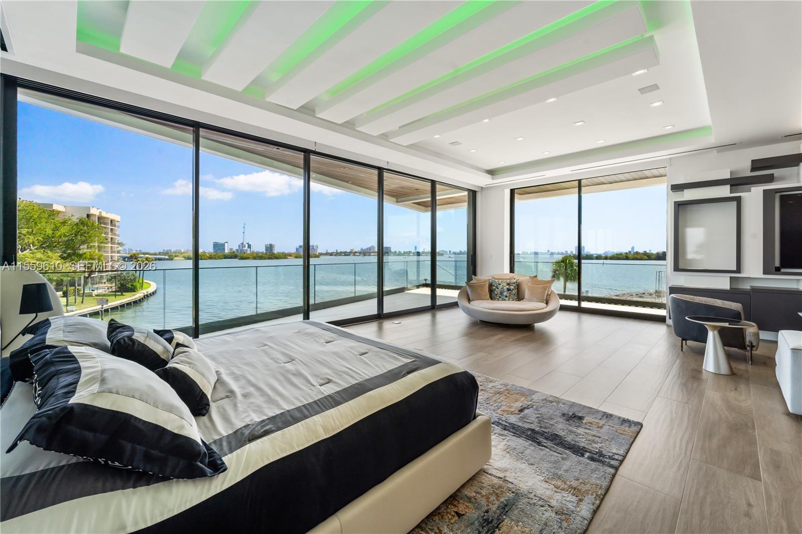 Stunning Bay/Canal Contemporary Residence- 100+ ft on deep water - New Construction (total of 12,924 SF under A/C). Loaded with ultra luxury finishes and very little use - 35KM solar electric generator w/six Tesla power walls & Travertine exterior walls. All custom lighting & sound throughout. Unique glass elevator to all three levels. Generous sized rooms and large closets. Art Gallery, Office-Library, amazing 12 car garage, play room & wine cellar. Breathtaking views of the Open Bay, City lights and tropical gardens from all rooms. Huge covered Patio + Summer Kitchen w/50ft infinity edge pool. Full dock & Boat Lift. Double gated 24/7 Island in the heart of Miami. Minutes to Design District, Beaches, Downtown Miami & Bal Harbour. Owner Financing Available.