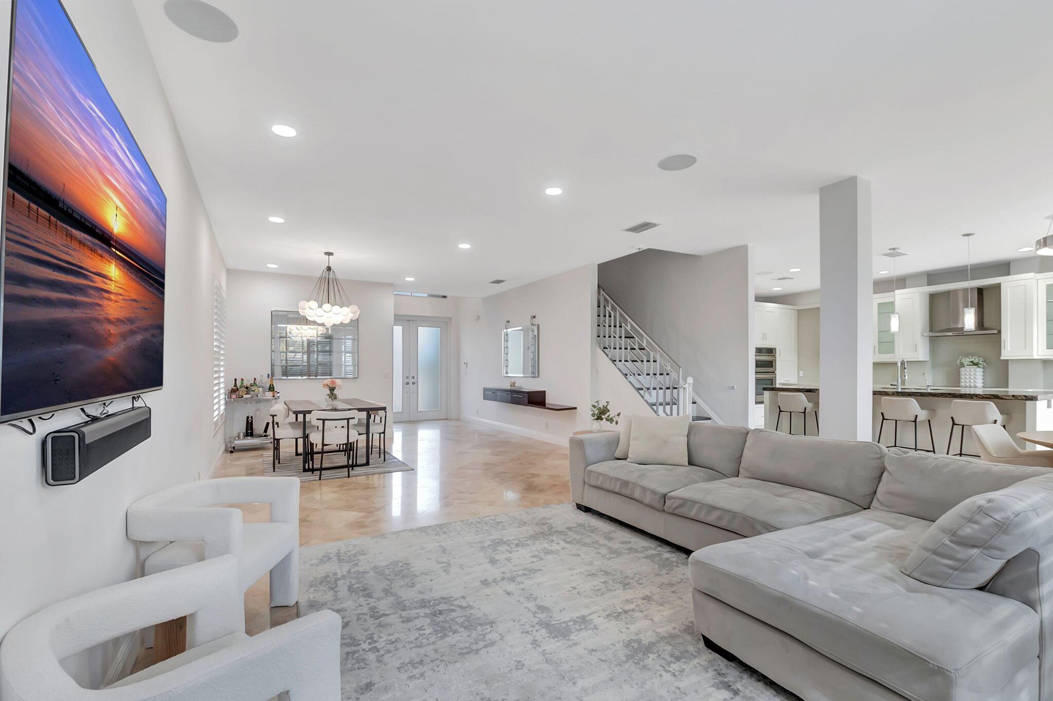 No need to look any further. This 3 bedroom, plus play room/office, 2 1/2 bath, remodeled home is ready for move in. Features include, renovated kitchen & bathrooms, new hi-hats, updated staircase, new garage storage system, tinted windows & hurricane shutters w/ impact sliding doors. The entire home has surround sound & Sonos in the kitchen & outside around the pool. Pool is heated & has been resurfaced. The large patio area has plenty of space for outdoor seating & recreation. Please note the master is on the second floor. Buyer must own the property for one year before renting it. Pet policy is no more than 2 pets.Mandatory standard member is $120,000 & buyer pays a capital contribution of $10,000 to Woodfield HOA & 5950 to Victoria Isles HOA at closing. Golf wait list only.
