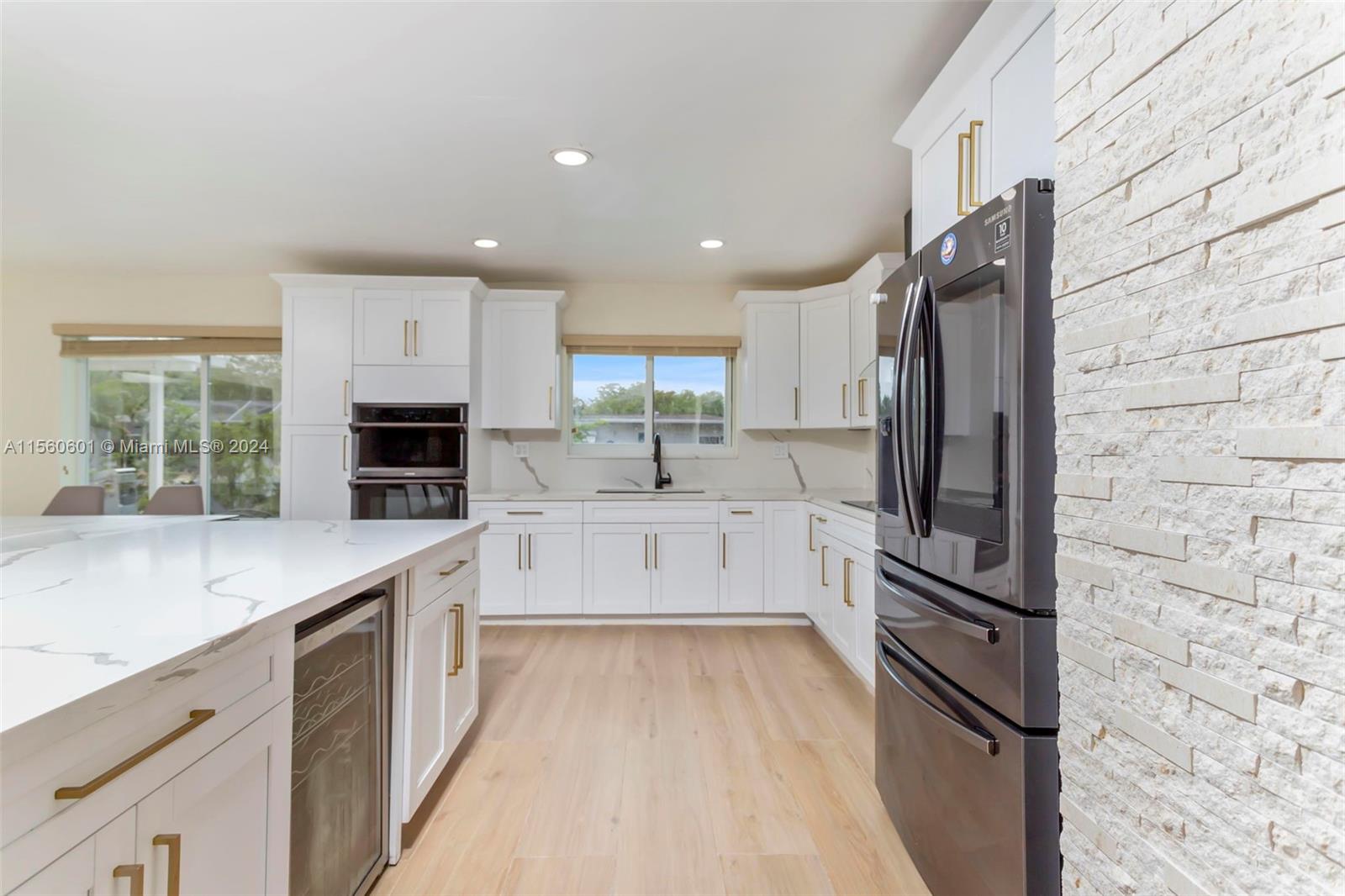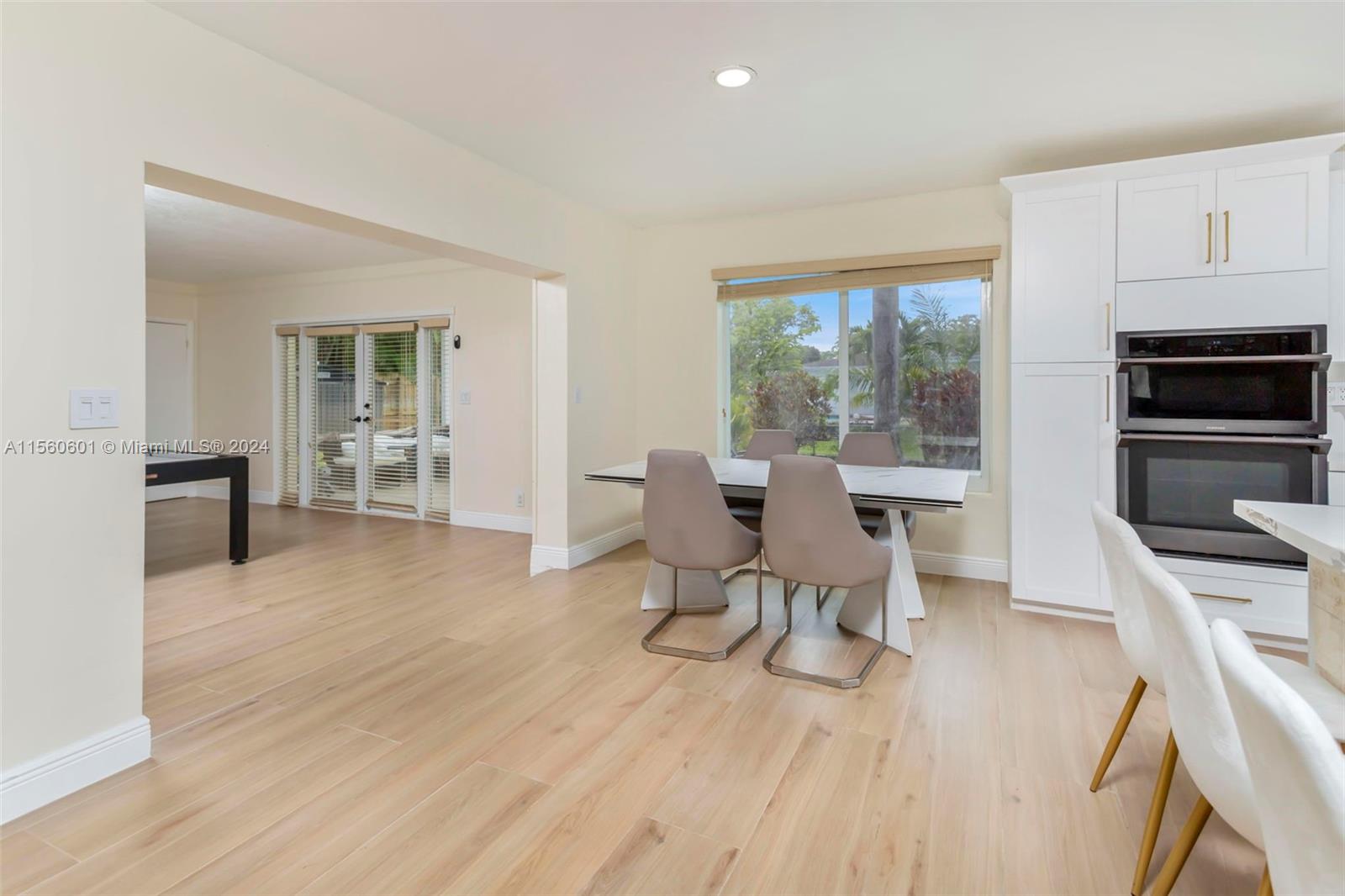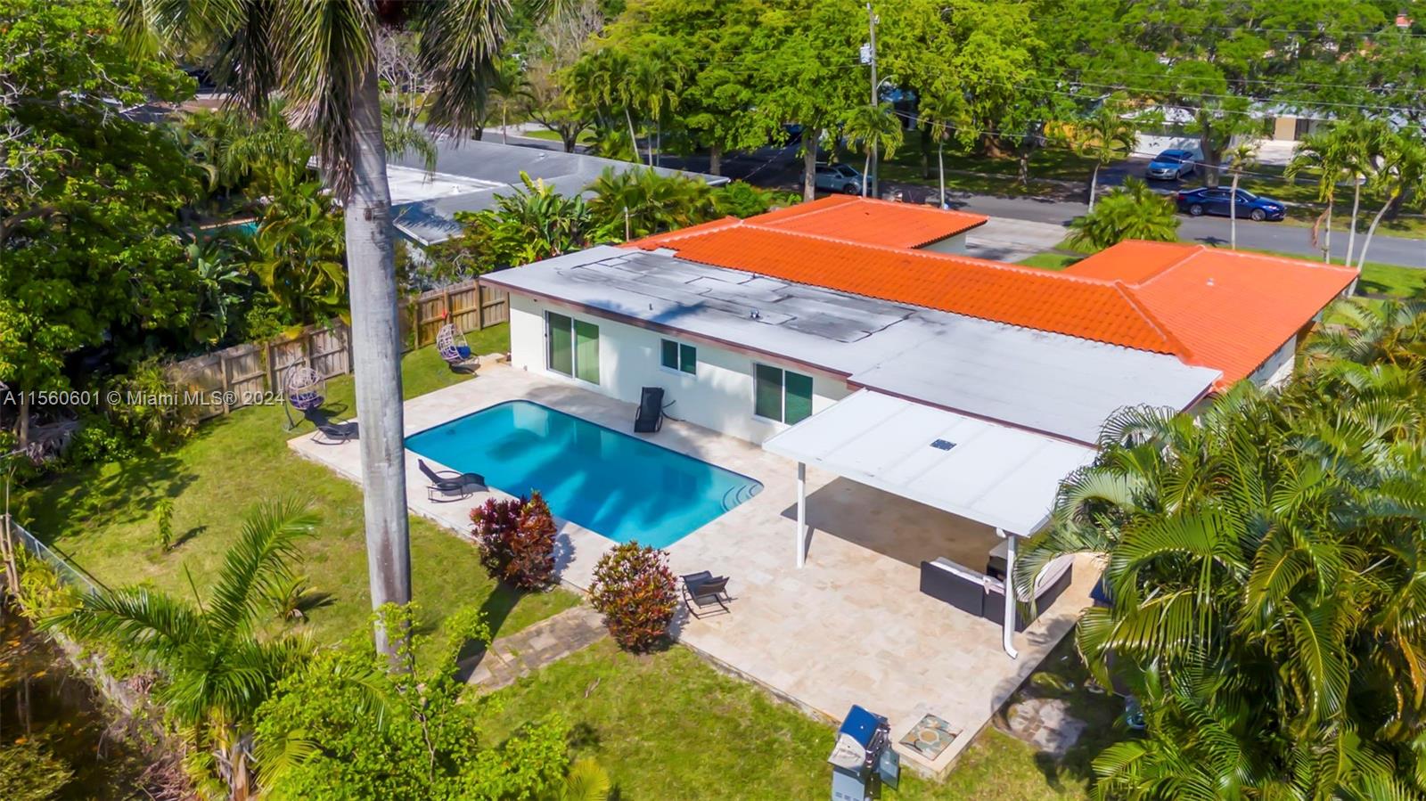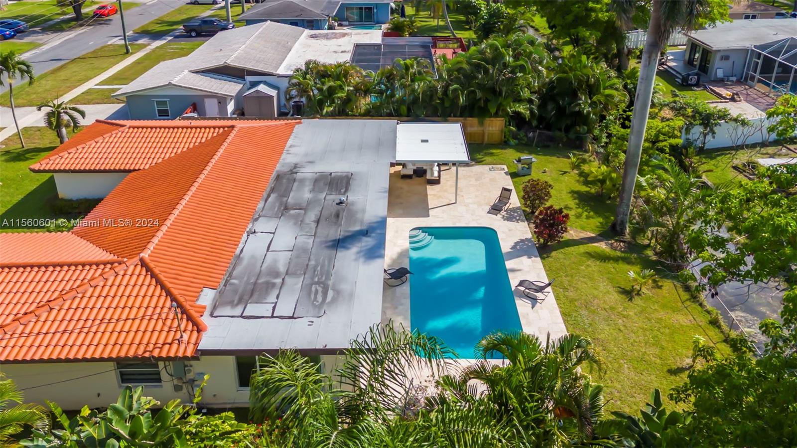 Discover serenity in this stunning single-family home nestled on an expansive lot boasting 4 beds/3 baths. Set alongside the refreshing pool & water views. The home is completely upgraded and modern with an amazing open space layout. Kitchen boast quartz countertops, all new SS appliances, a wine fridge & a large breakfast bar. Experience your own personal spa in the primary bathroom that features an oversized tub w/ a TV & separate double head shower. Large game/entertainment room with French doors leading to the backyard oasis which features all new travertine tile, enjoy your privacy w the mature tropical trees surrounding. Brand-new roof & flat roof. NO HOA! Complete Hurricane impact and 2-car garage with washer/dryer. Stay comfortable year-round w two efficient A/C units.