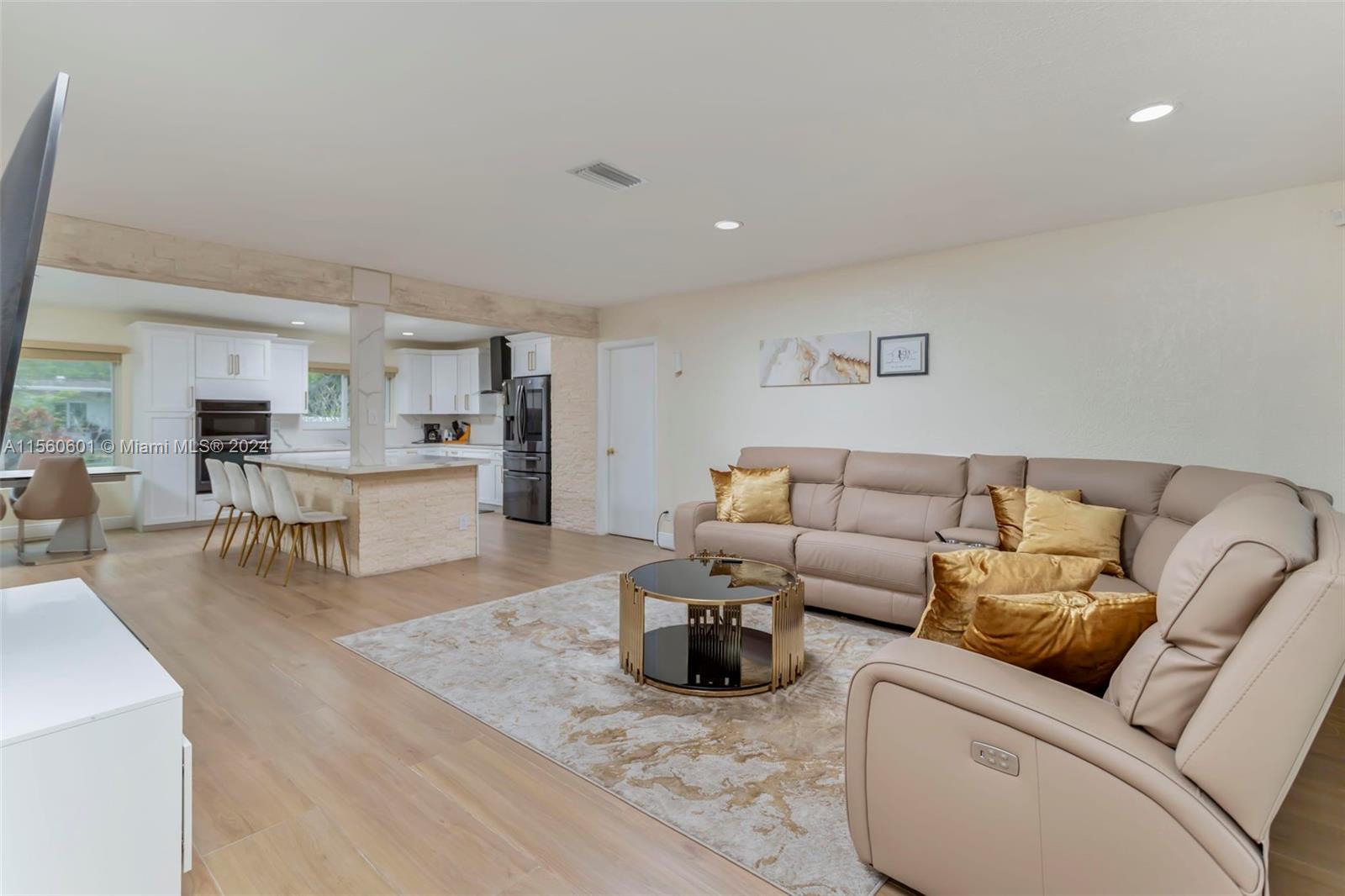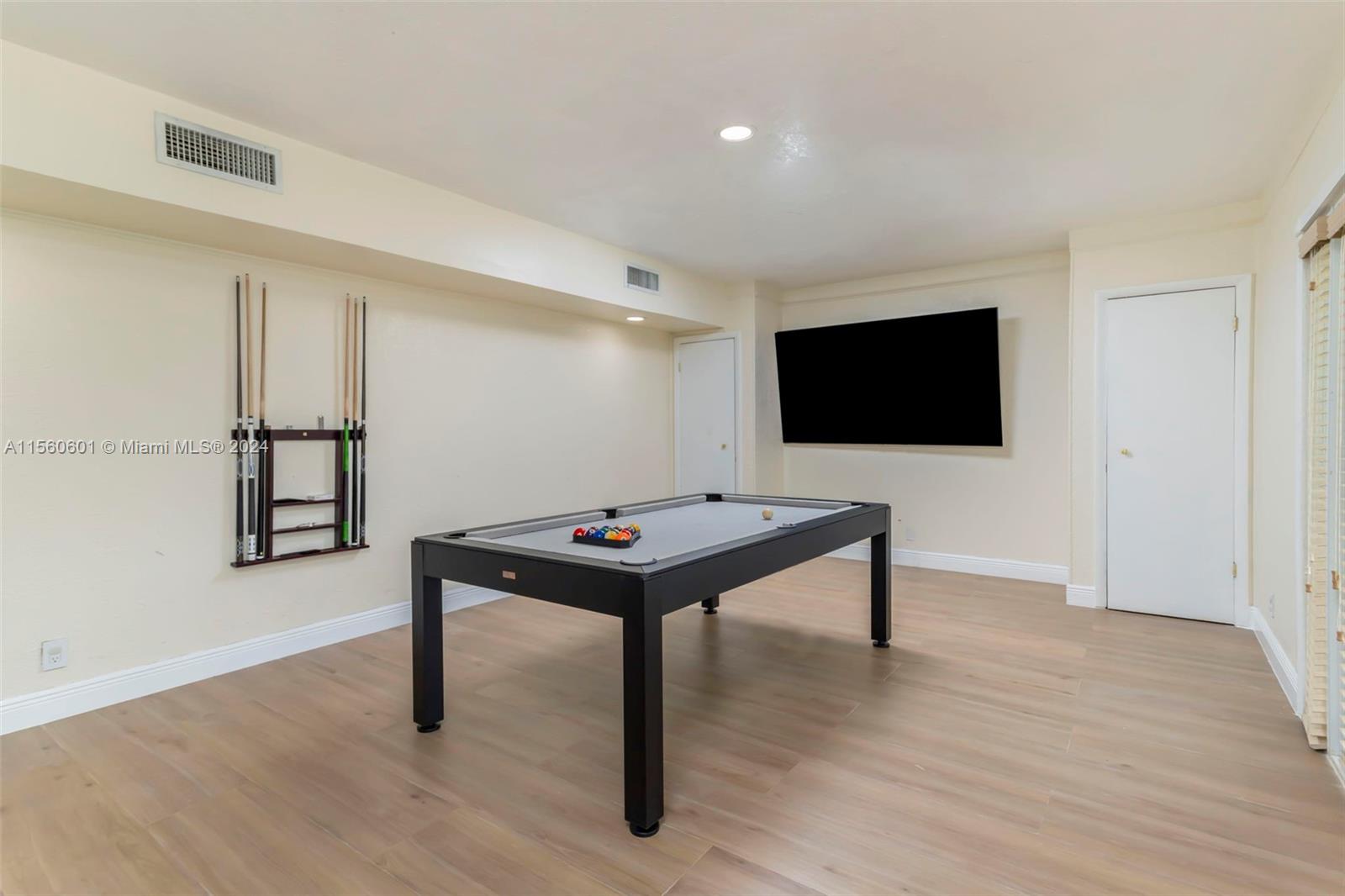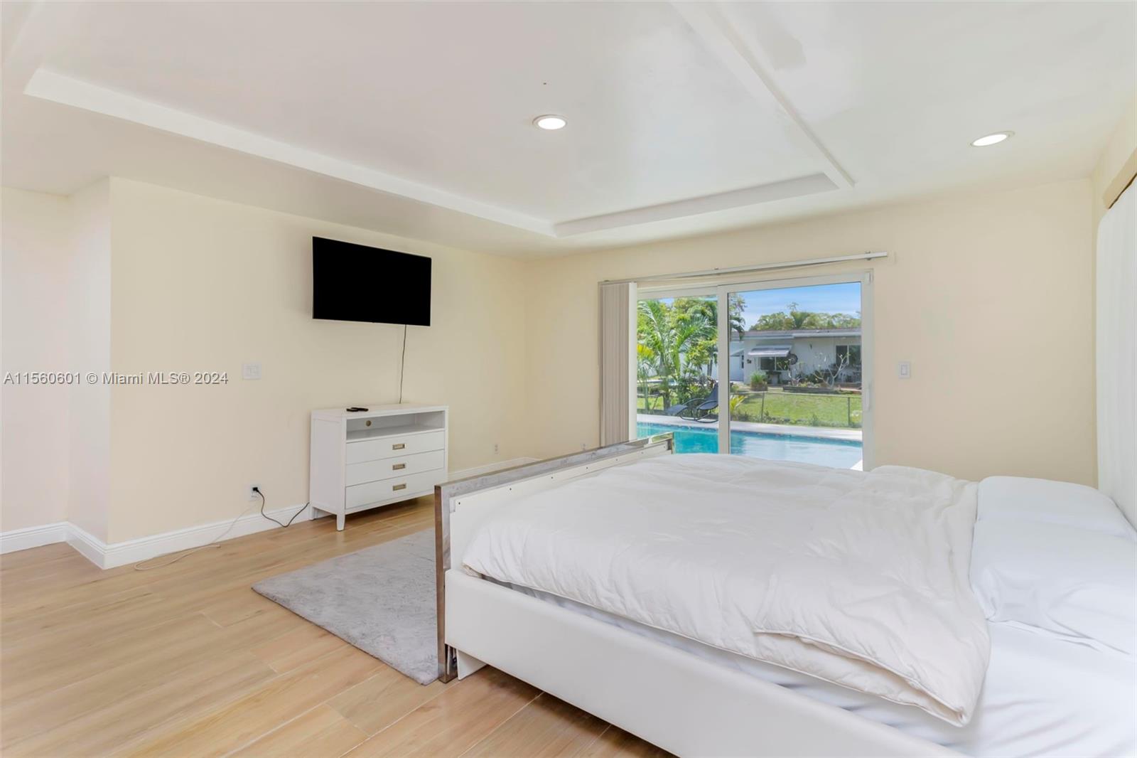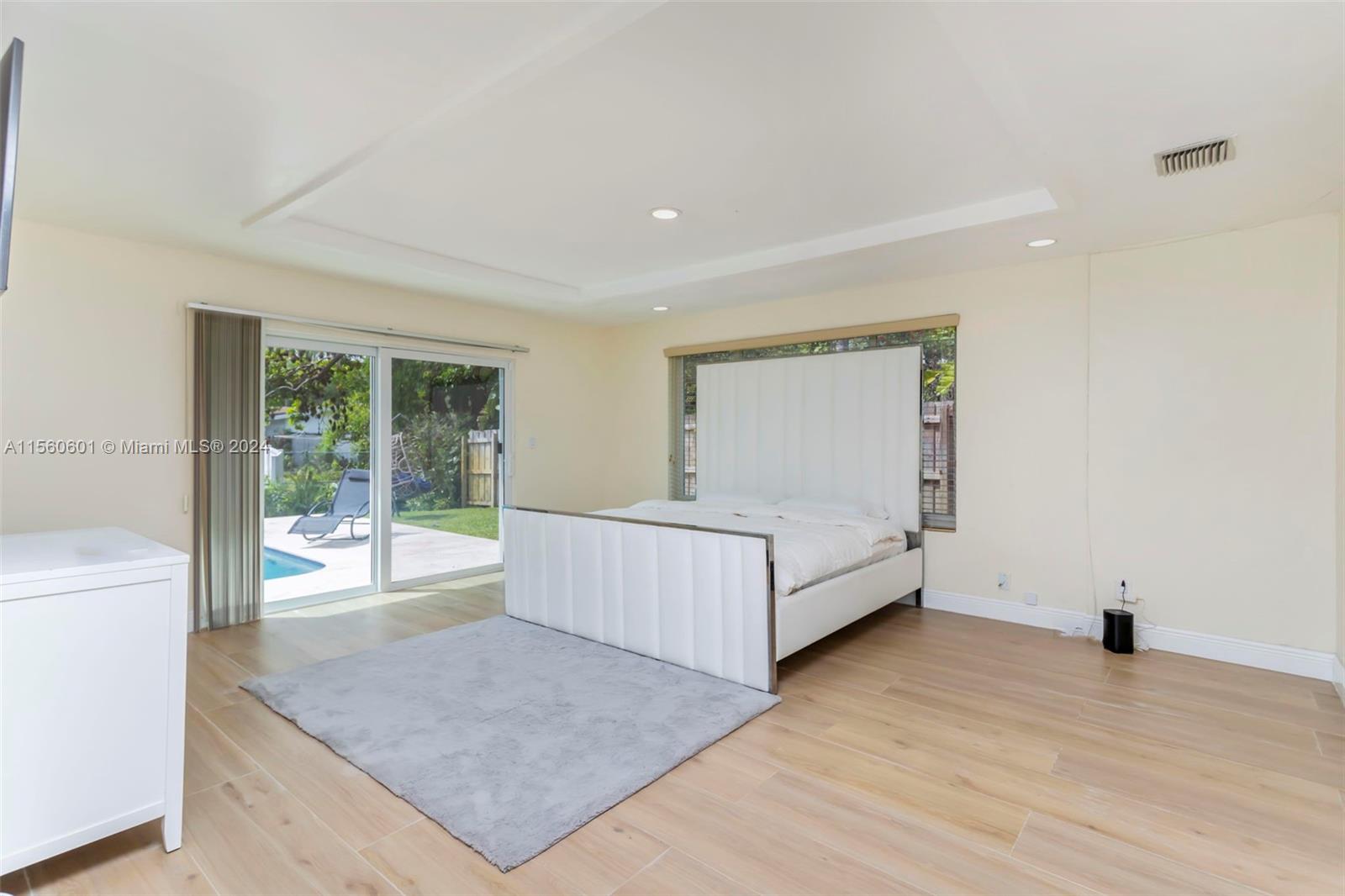 Discover serenity in this stunning single-family home nestled on an expansive lot boasting 4 beds/3 baths. Set alongside the refreshing pool & water views. The home is completely upgraded and modern with an amazing open space layout. Kitchen boast quartz countertops, all new SS appliances, a wine fridge & a large breakfast bar. Experience your own personal spa in the primary bathroom that features an oversized tub w/ a TV & separate double head shower. Large game/entertainment room with French doors leading to the backyard oasis which features all new travertine tile, enjoy your privacy w the mature tropical trees surrounding. Brand-new roof & flat roof. NO HOA! Complete Hurricane impact and 2-car garage with washer/dryer. Stay comfortable year-round w two efficient A/C units.