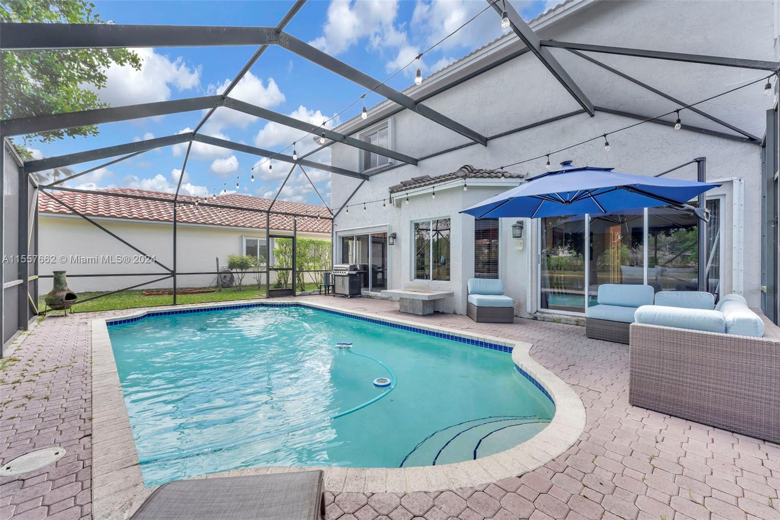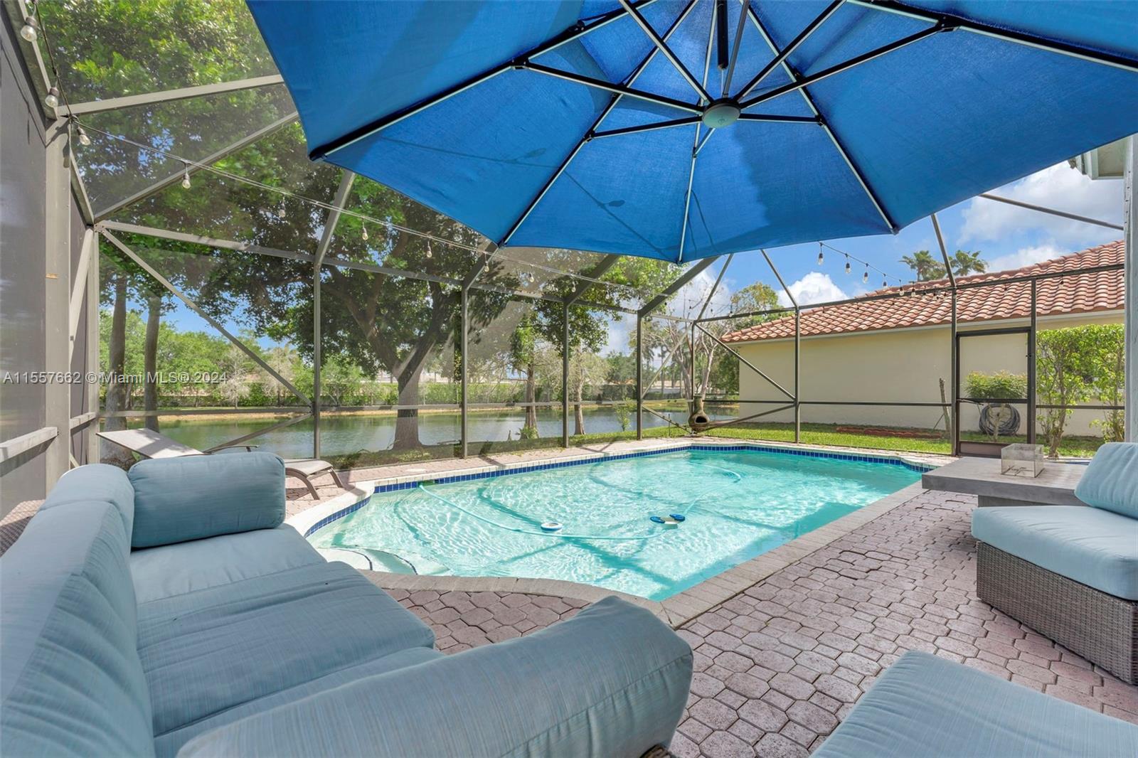 Spacious waterfront home, 3 beds and 3 full baths, volume ceilings, crown molding, and lots of natural light. New AC 2020. Tile flooring in social areas, big bedrooms, open granite kitchen w/ wood cabinets, Stainless Steel appliances, breakfast area, and large Family Room. Screened pool and brick paver patio perfect for entertainment. Complete hurricane protection. Very low association fee. Not in a flood zone. Great neighborhood, minutes to shopping malls, restaurants, and schools. Very close to Sawgrass Expressway, I-75 and I-595.