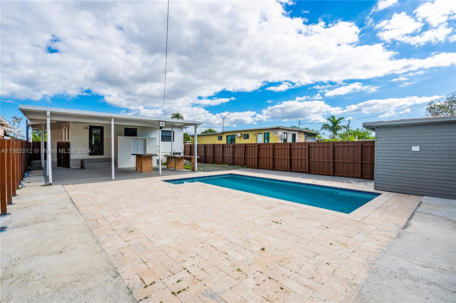Welcome to your upgraded oasis! This charming 3-bedroom, 1-bathroom house boasts a myriad of modern amenities and thoughtful upgrades. Step inside to discover a newly installed roof and a sparkling 2020 pool, creating a refreshing retreat for sunny days. Feel secure with impact windows and enjoy the convenience of storage shed and laundry rooms. Parking is a breeze with ample space for multiple vehicles, including RVs and boats. Entertain effortlessly in the spacious outdoor covered area, perfect for gatherings with family and friends. Stay comfortable year-round with central A/C and additional split units in each bedroom. With a freshly painted exterior adding to its curb appeal, this home is ready to welcome you to a lifestyle of comfort and convenience.