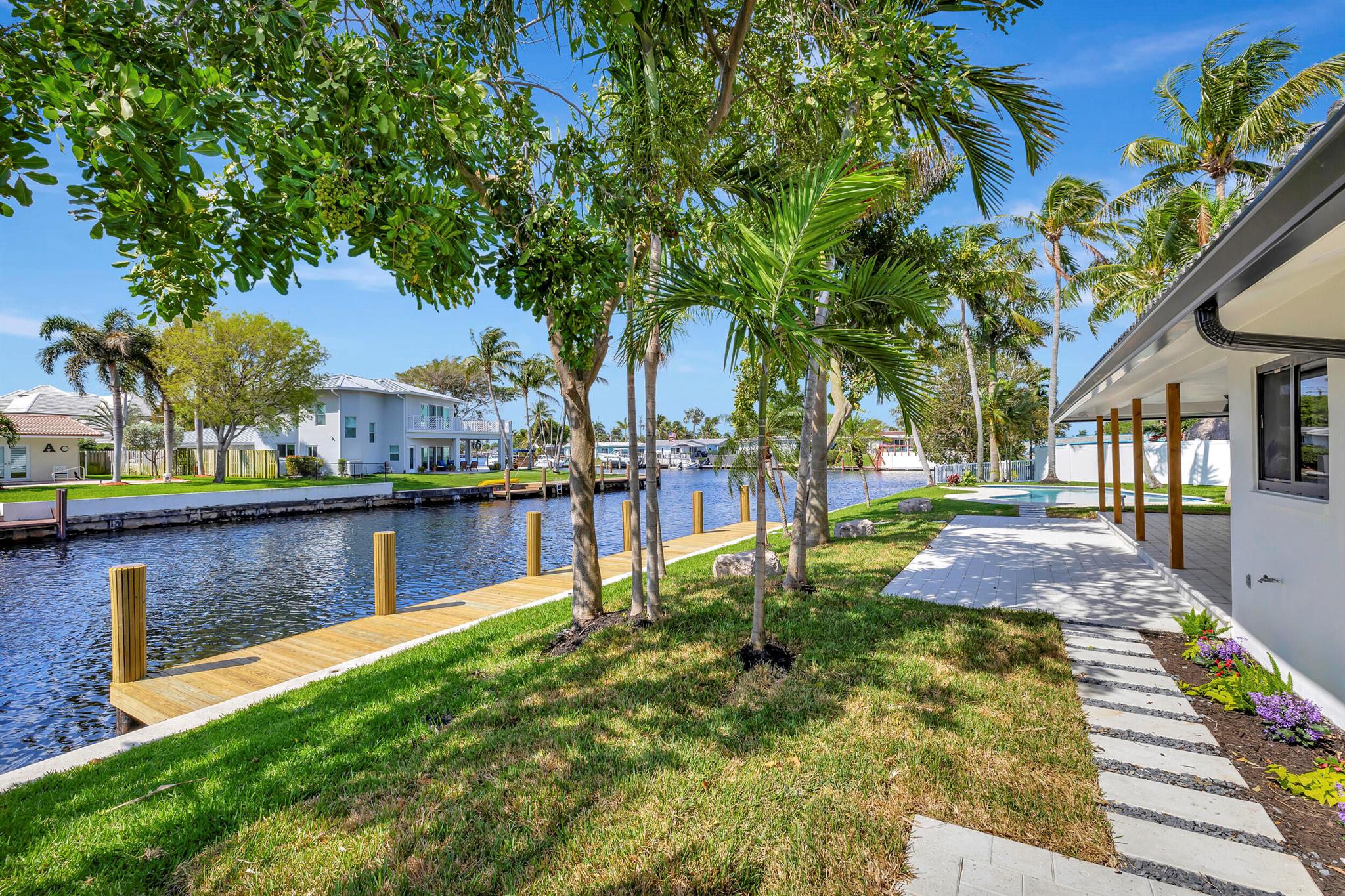 Welcome to your waterfront oasis located in a quiet cul-de-sac, in Pompano Beach, Florida! This exquisitely renovated light and bright three-bedroom, two-bath residence features 150 feet of water frontage, Brand New impact windows & doors throughout, beautifully remodeled bathrooms and kitchen, and a resort-style freeform heated pool with expansive water views. Experience effortless indoor-outdoor living with an open floor plan that seamlessly extends from the family room to the large covered patio. Perfectly situated on an oversized waterfront lot close to beaches, shopping, and nightlife, this property offers ocean-accessible navigable waters under 1 fixed bridge with 13-14 feet clearance at low tide and 10-11 feet at high tide.