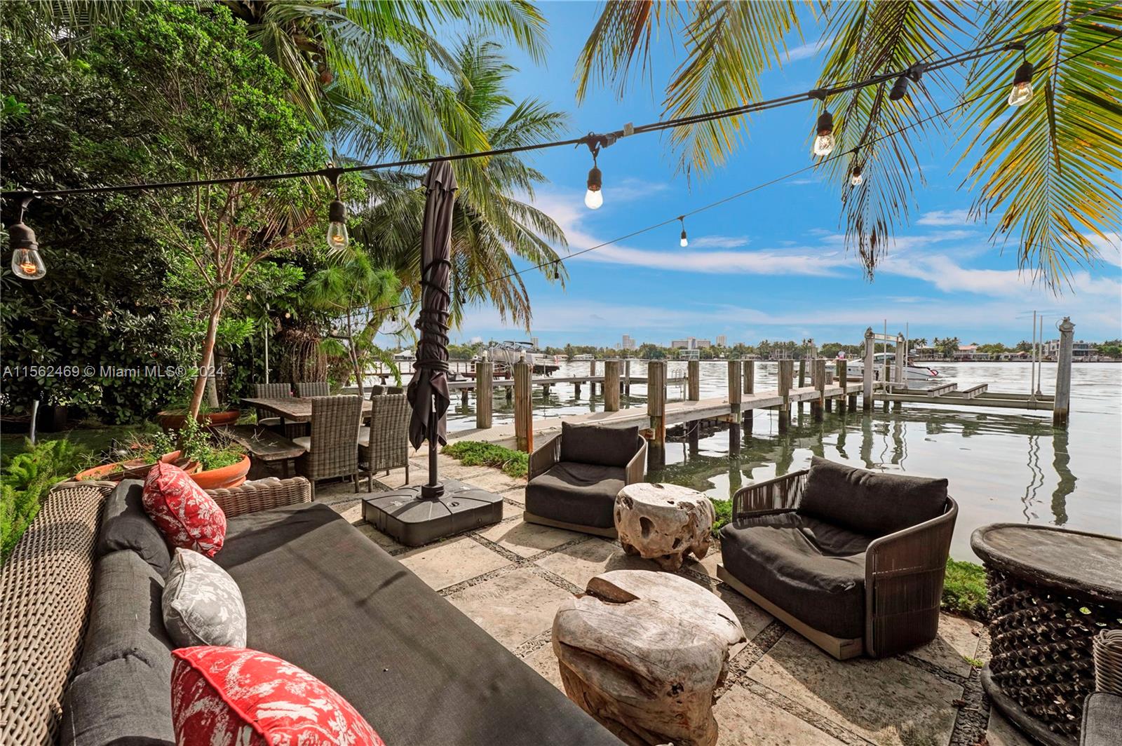 Waterfront home w/ beautiful & lush garden features 3 bed,3 baths + den. Direct intercoastal access w/ 50' water frontage, perfect for boaters.(lift 56,000lbs) Easy to get on water into incredible sunsets. The principal bedroom is facing magnificent green oasis where you can create your own little paradise:morning yoga/meditation or entertain dinners under the starlight. Located in gated community, residents of Stillwater enjoy a sense of privacy and security. Despite its peaceful settings, its short drive away from the vibrant nightlife, world-class dining and the beach (close proximity to Surfside, Bal Harbor&South Beach) The community has basketball courts and kids' park. Enjoy the magical views of the open Bay sunrise & sunsets, bonfire at night in the garden.