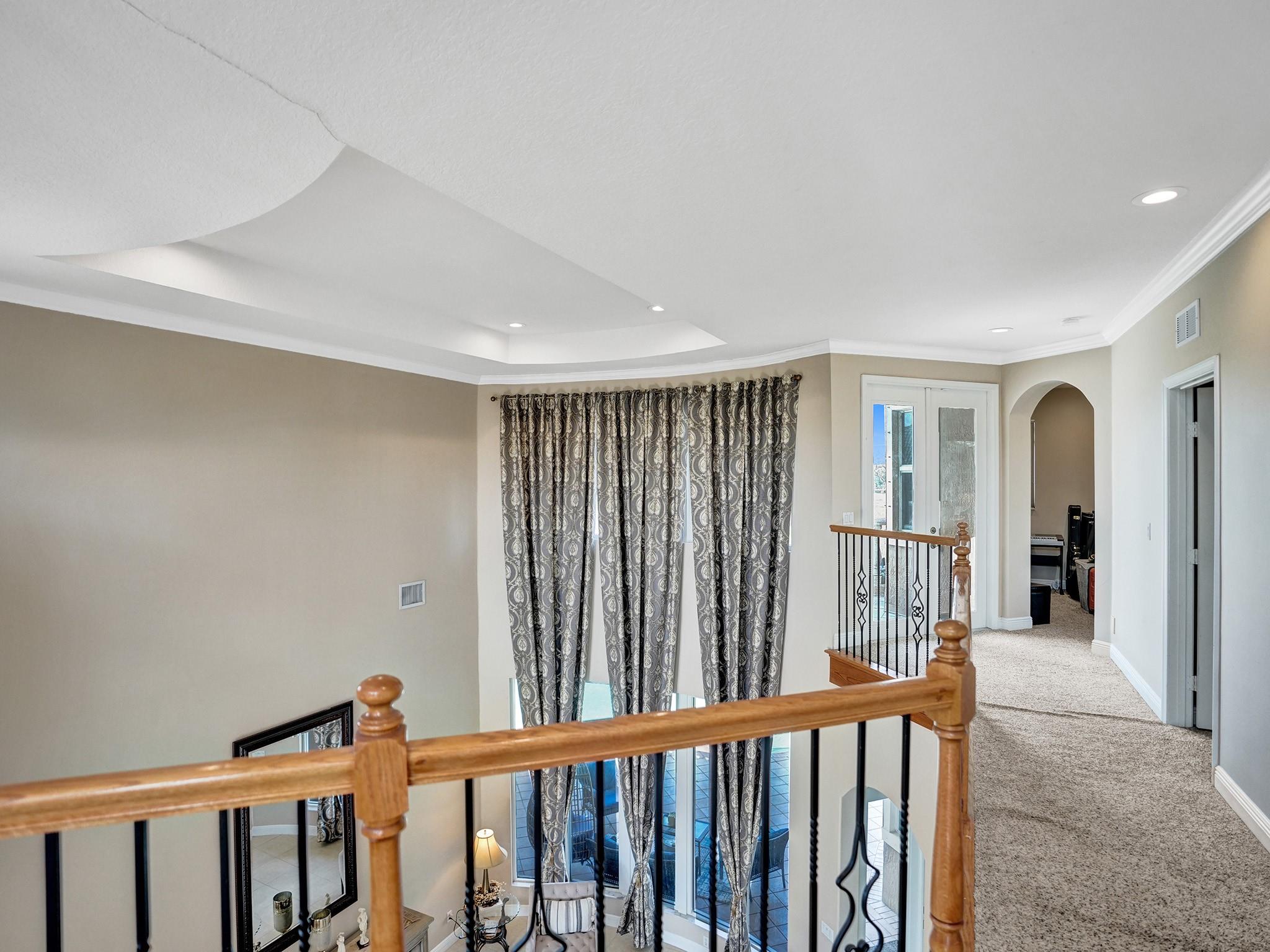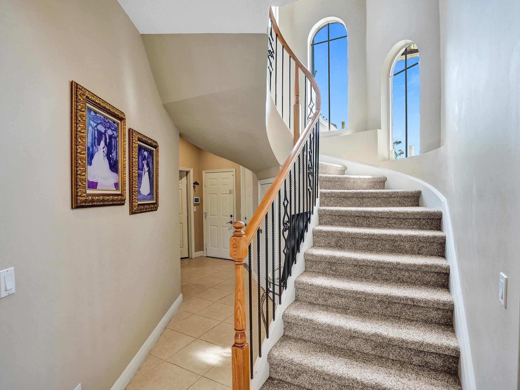 Price Improvement! MAGNIFICENT CUSTOM POOL HOME ON LARGE WATER LOT W/ BEAUTIFUL VIEWS! 5/4.5 W/ 3 CAR GARAGE AND HUGE DRIVEWAY. GREAT LAYOUT w/ HIGH CEILINGS THROUGHOUT! LARGE WINDOWS OFFER LOTS OF LIGHT W VIEWS FROM EVERY ROOM. HUGE LIVING ROOM, DINING ROOM AND FAMILY ROOM. QUARTZ & WOOD CABINETS + SEPARATE BREAKFAST AREA. LARGE MASTER BEDROOM AND MASTER BATH. ALL BEDROOMS HAVE CUSTOM CLOSETS. SPIRAL STAIRCASE TO THE 2ND LEVEL WHERE THERE ARE 2 FULL BEDROOMS AND 2 BATHS + A CRAFT/LOFT AREA. WALK OUT TO YOUR OVER-SIZED MARBLE BALCONY FOR THE GORGEOUS SUNRISES WHERE YOU WILL HAVE VIEWS OF THE POOL AREA AND GOLF COURSE (NOTHING WILL BE BUILT THERE)! PRIDE OF OWNERSHIP: NEW ROOF, NEW ACS, NEW AIRD DUCTS, NEW POOL PUMPS AND MORE! GREAT LOT IN A SMALLER CUSTOM COMMUNITY CLOSE TO ALL!