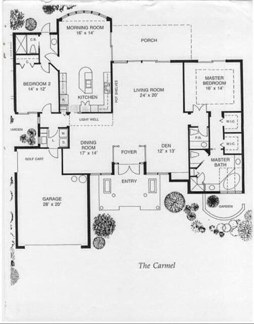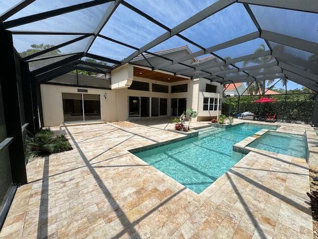 Located in the prestigious and exclusive community of Breakers West. This beautiful pool home is currently configured as a 2 bedroom/2.5 bath with a den but it can easily be converted back to a 3 bedroom home. It has a large gourmet kitchen with custom cabinets and a big island perfect for entertaining. The living room, dining room and den are all open with soaring ceilings leading via a wall of glass to the completely private screened in sparkling pool and spa. The primary bedroom has a great closet and a huge bath with an atrium over the spa tub. The home sits on a lovely tree lined cul de sac on the golf course and boasts over 1/4 acre of land.
