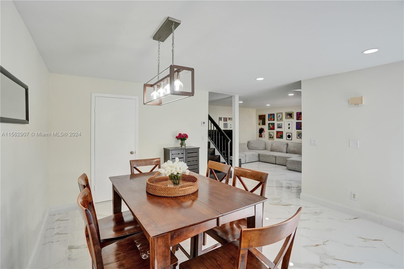 Come feel right at home in this stunning fully upgraded townhome! White and gold oversized porcelain floors, modern kitchen with dark wooden cabinets and stainless steel appliances, along with spa like bathrooms with designer finishes, creates a luxurious atmosphere. The wooden flooring on the second floor adds warmth, while the recent installation of impact windows and doors ensures safety and energy efficiency. Roof is only 5 years old. Home features recess lighting and a freshly painted interior. The addition of a new pine wood fence and separate turf area creates a beautiful outside living space to enjoy hosting or quiet time alone . Enjoy amenities of a large community pool and tennis court complemented by golf course views. Fall in love and make it yours!