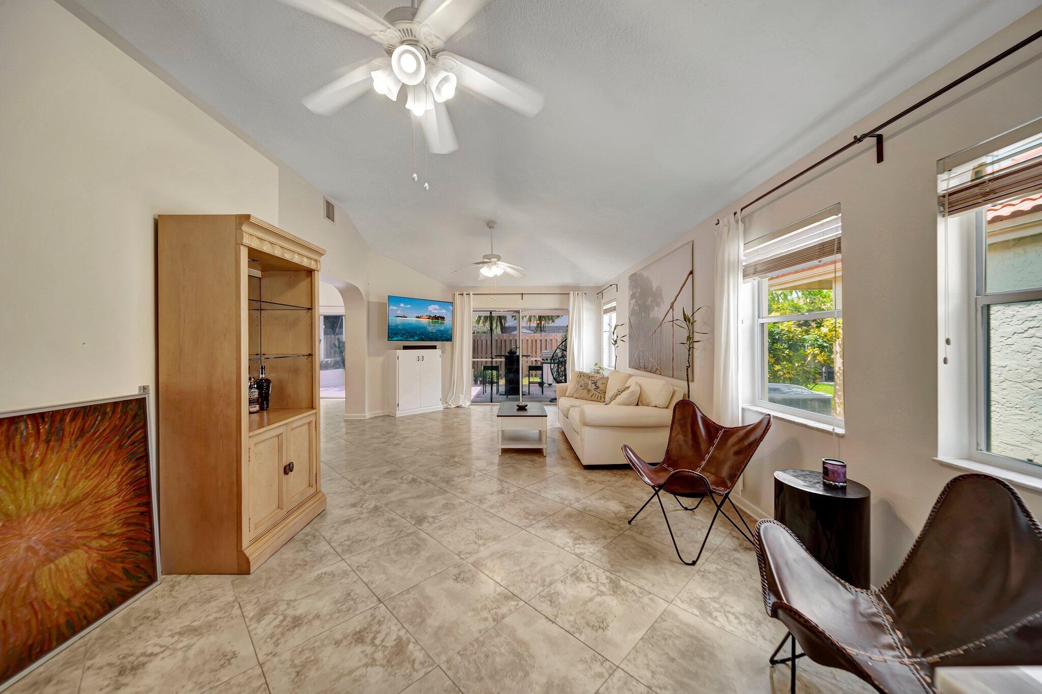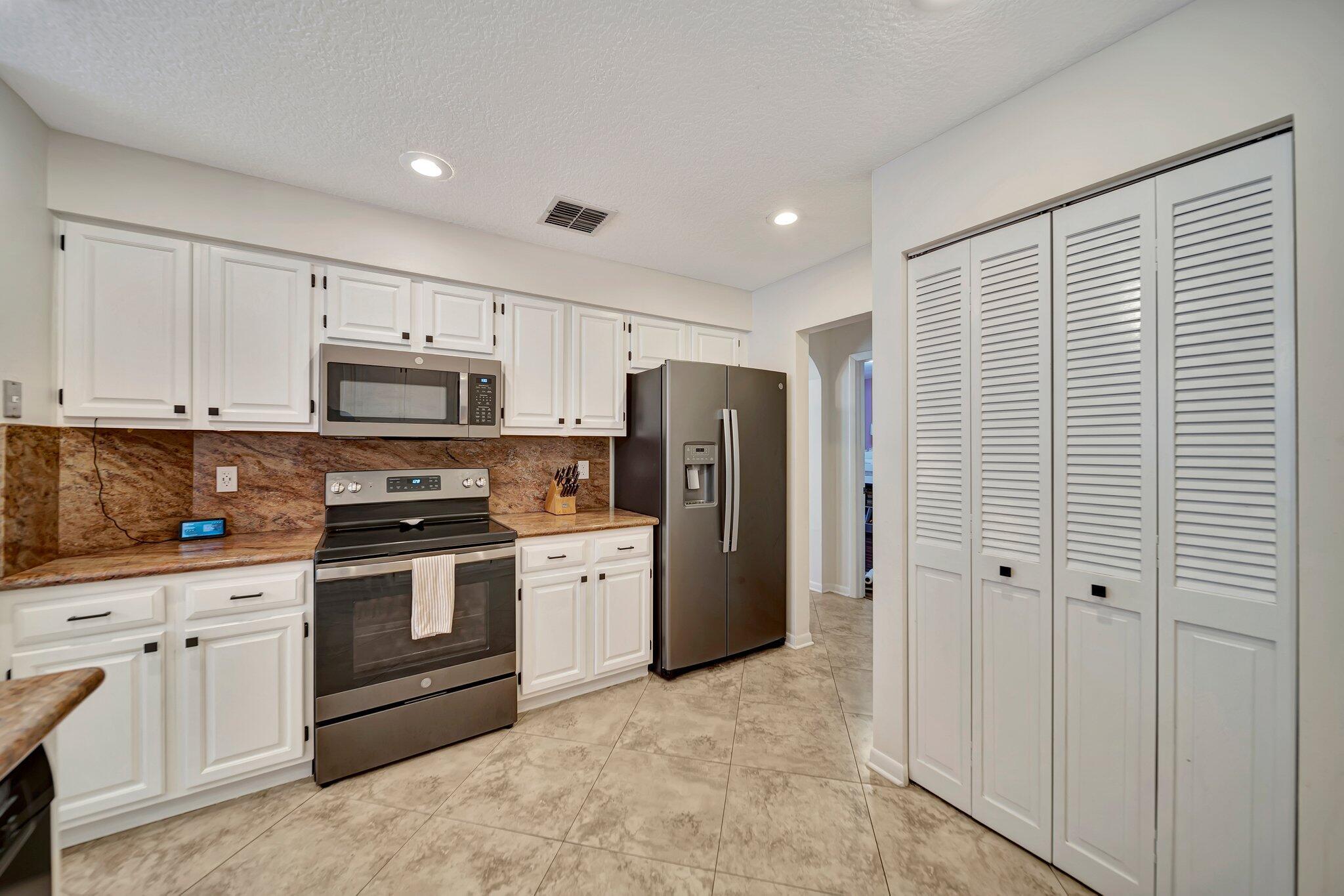 Beautifully maintained 3/2 home in the desirable community of Forest Ridge. Sunny and bright interior with vaulted textured ceilings and neutral tile throughout the living area. Newer baseboards installed. Important to note that the POLY PIPES have been replaced with PEX and all plumbing fixtures were replaced inside and outside of home including new water shutoff. Additional upgrades include: NEW A/C-March 2024! Oven, Refrigerator and Microwave were replaced Dec. 2023. Dishwasher, Water Heater and Washer/Dryer were replaced 2021. Tile roof was replaced in 2009. Complete hurricane panels and hurricane rated/insulated garage door. Newer floors and baseboards in all 3 bedrooms. The outdoor screened in patio is quite spacious amidst lush foliage and well designed for entertaining.