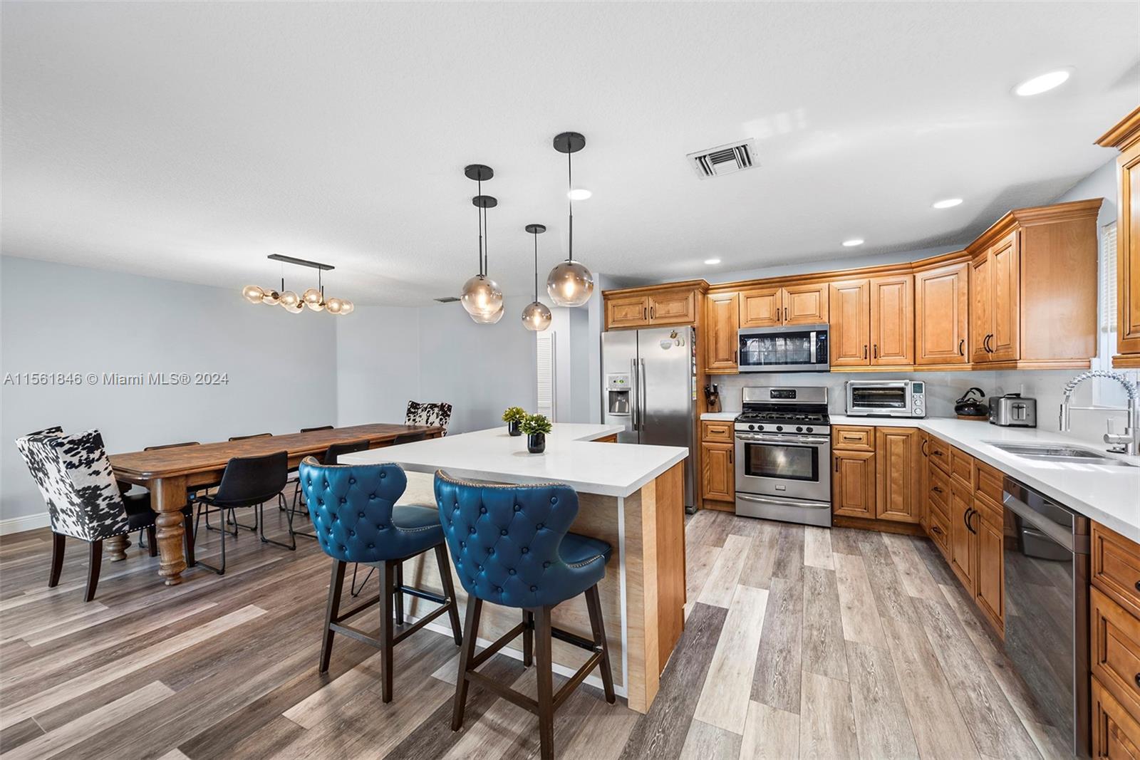 Discover a well-maintained 4-bed, 2.5-bath, 2,334 sq ft lakefront home, showcasing upgrades that reflect true pride of ownership. The spacious 2-story foyer and living room offer sophistication, while the remodeled kitchen features exquisite cabinetry and quartz counter tops, overlooking a manicured backyard and serene lake. Enjoy an added screened patio for outdoor entertaining. The primary bedroom on the main floor offers lake views, double walk-in closets, and an ensuite bath. Upstairs, find three bedrooms and a versatile loft. Equipped with hurricane protection and a 2-year-old AC unit for peace of mind. The fenced backyard includes a fire pit with stunning water views. Close to Sawgrass Mills, dining, shopping, and easy access to Fort Lauderdale and Miami.