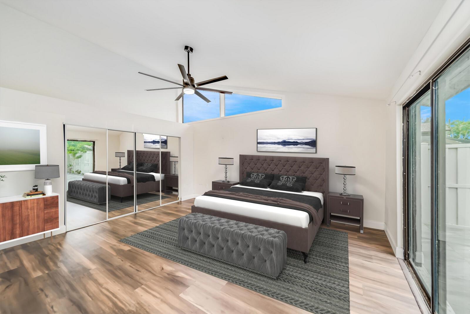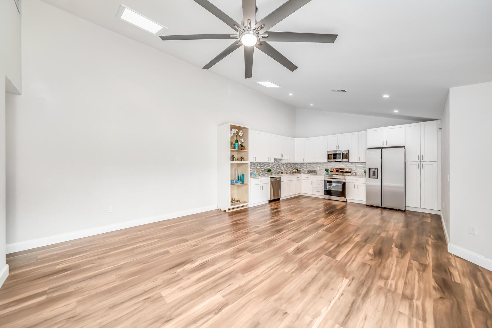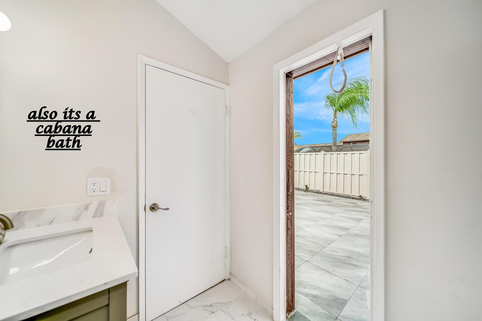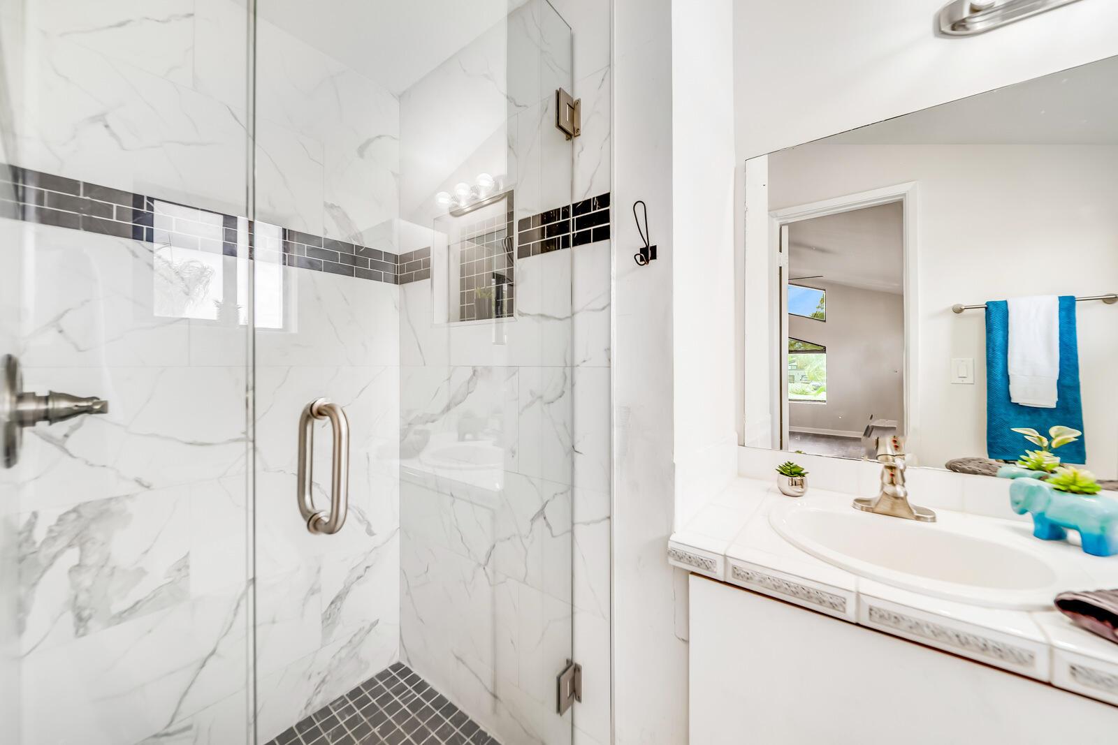 Totally updated, open and bright with soaring vaulted ceilings this townhome features three bedrooms, three-and-a-half-bathrooms, a one-car garage, attached driveway, an assigned parking spot, and guest parking. Private fenced in 800 square feet expansive courtyard entry with tile flooring is perfect for relaxation and entertaining! Luxury vinyl flooring throughout. Gourmet kitchen features newer modern updates including quartz counter tops, glass tile backsplash, stainless appliances, white shaker wood cabinetry, a huge stainless farmhouse sink and more! All bedrooms have there own En Suite bathrooms & all 4 bathrooms are updated. Guest/Cabana bath is convenient for swimmers.