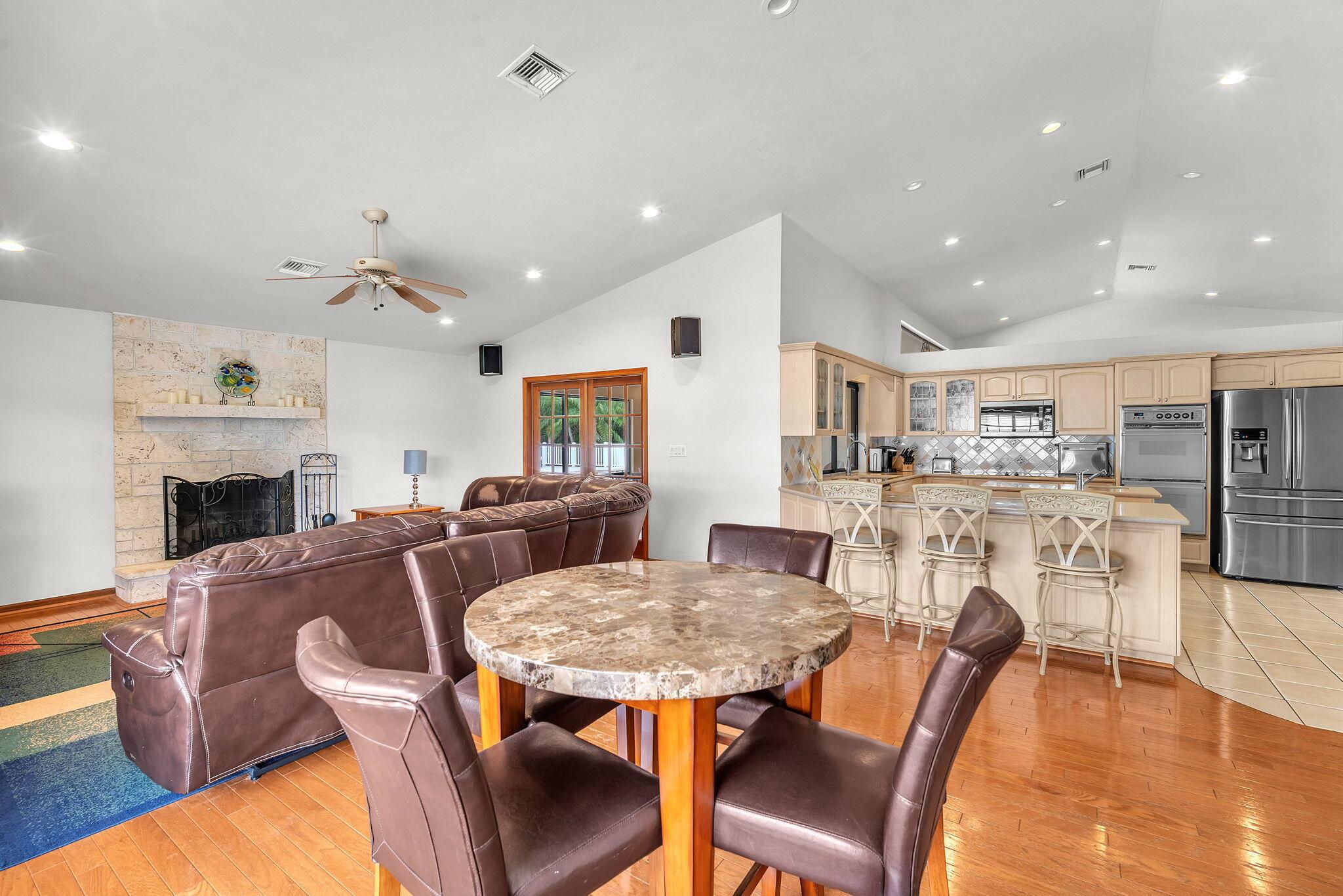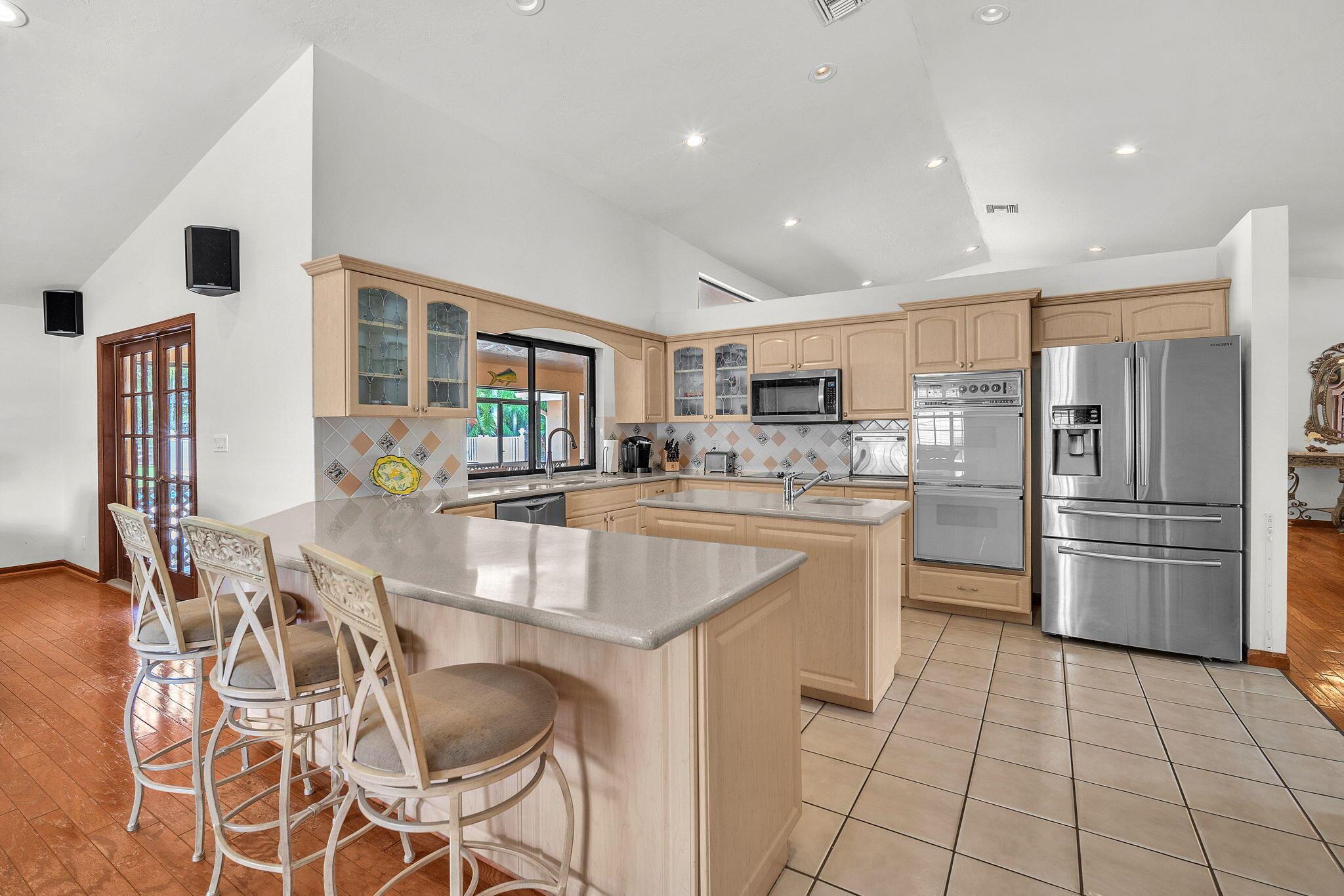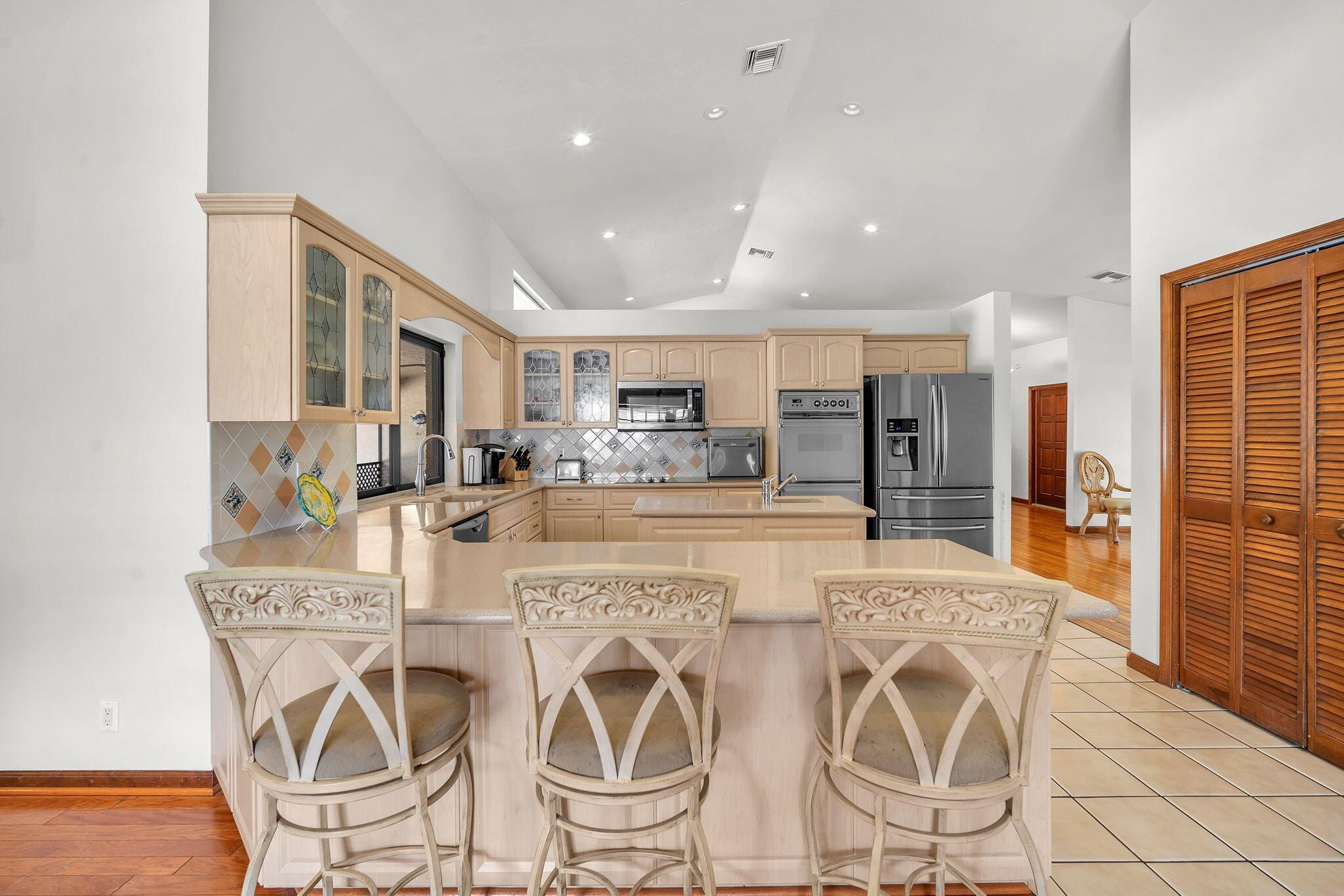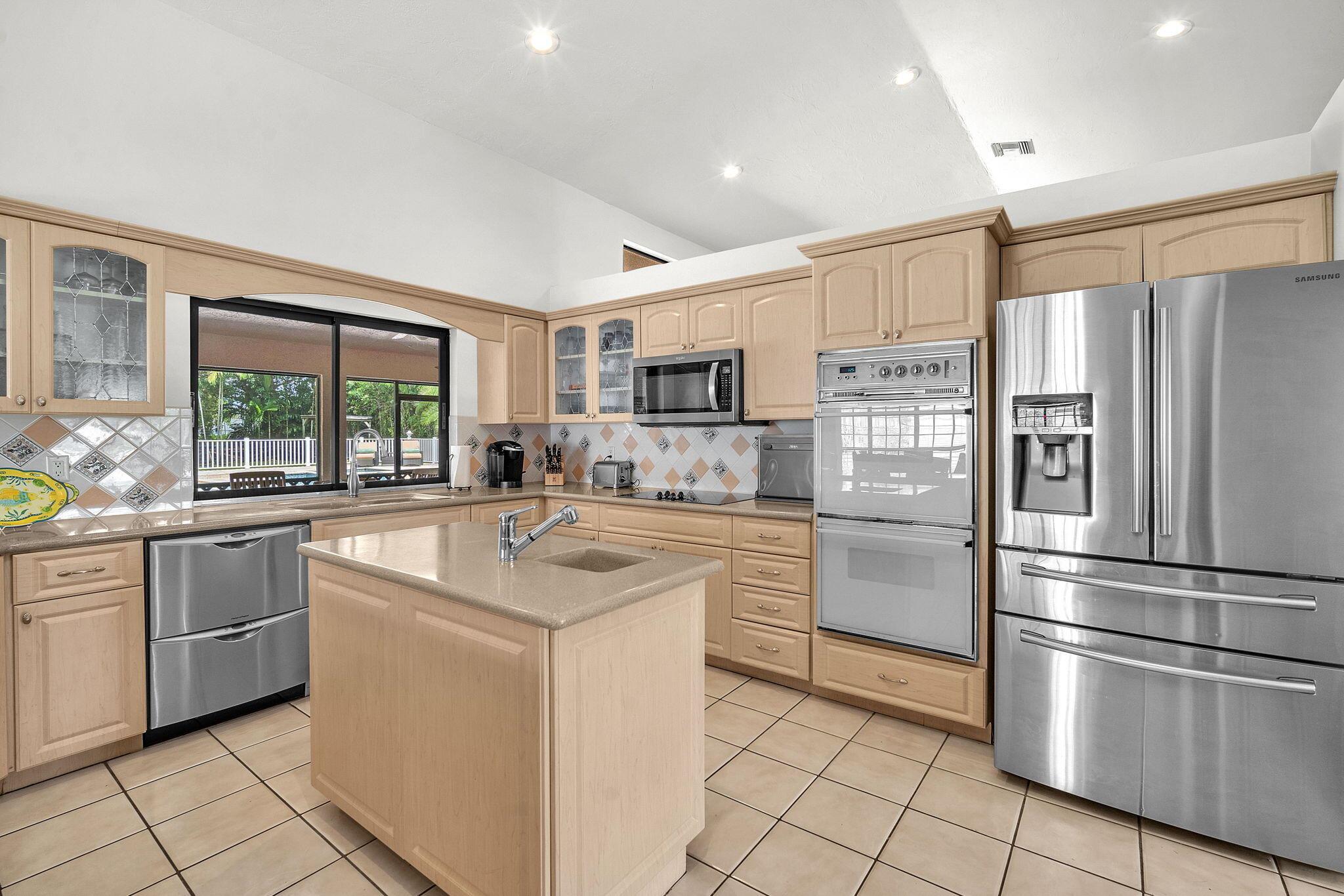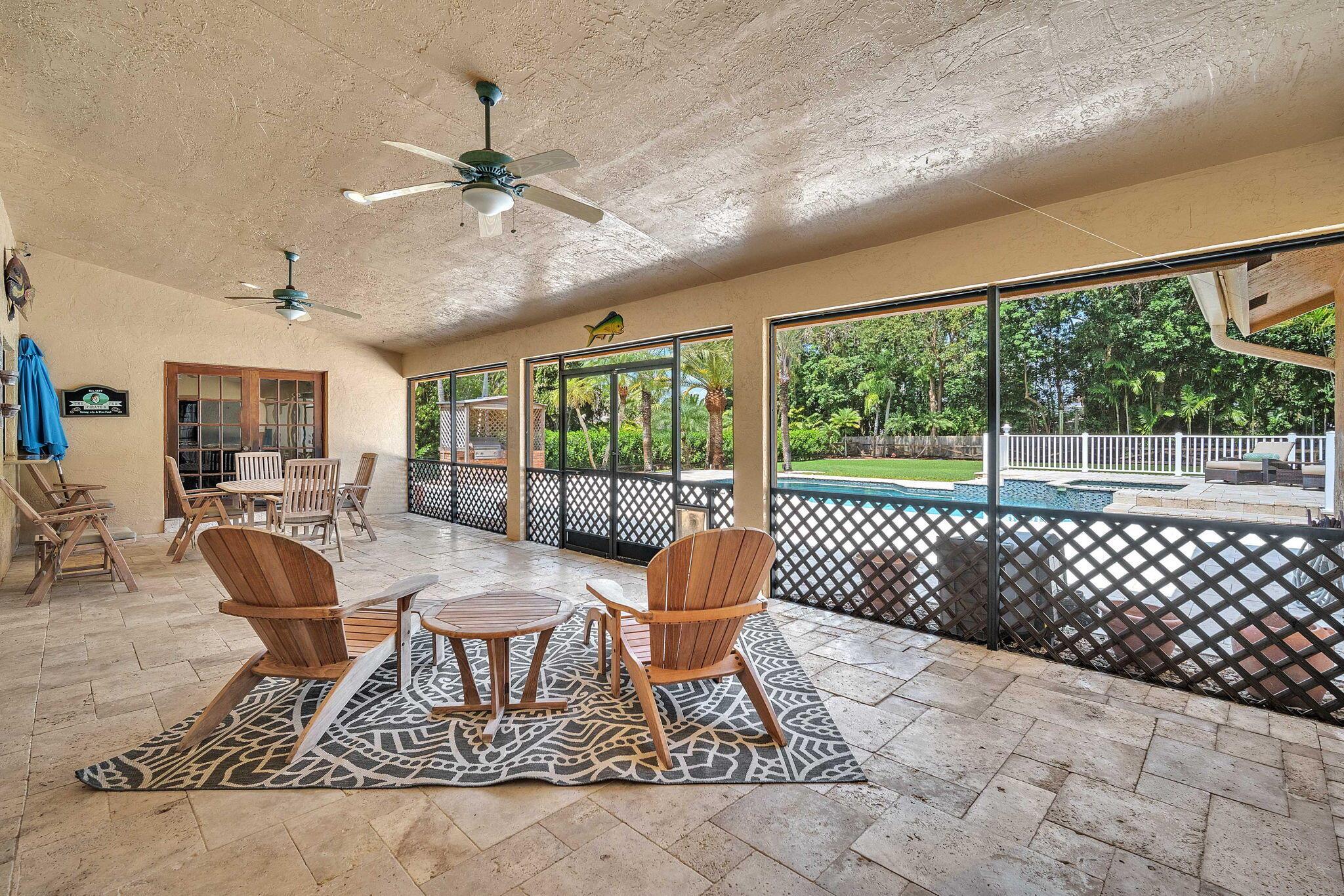 This stunning 4-bed, 3-bath home offers a haven of luxury & comfort. Step inside to discover a formal living room & dining room, ideal for entertaining guests. The large open kitchen featuring double ovens & stainless steel appliances is just perfect for culinary enthusiasts. The master bedroom is a spacious retreat, complemented by a large master bath boasting a soaking tub & walk-in shower. Outside, a screened lanai w/ travertine tile sets the stage for relaxation & outdoor dining, complete w/ an outdoor kitchen. The pool & spa provide a refreshing escape, surrounded by ample space for sunbathing & lounging. The property is fenced in, offering security & privacy. This home is a sanctuary of upscale living, blending indoor elegance and outdoor charm