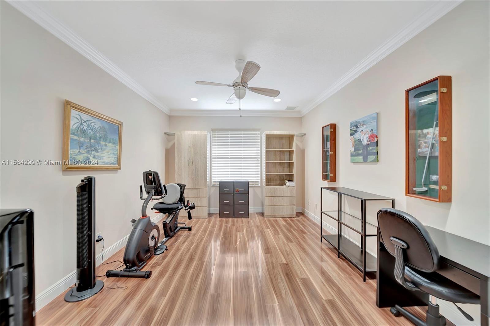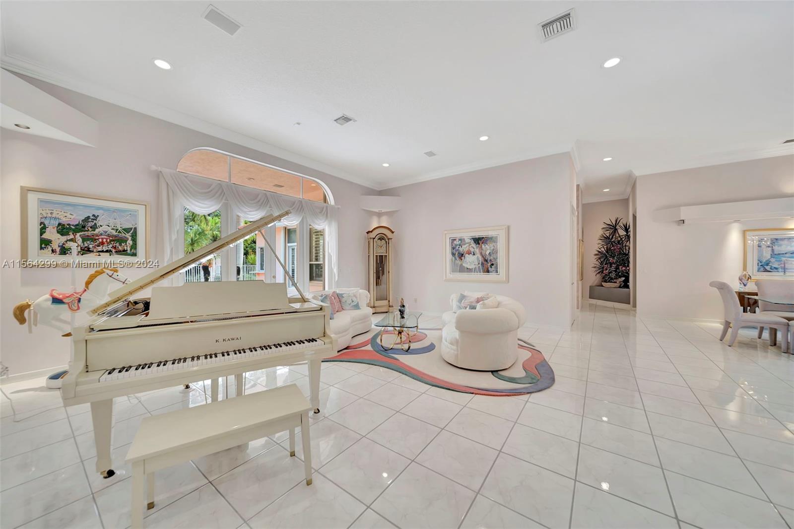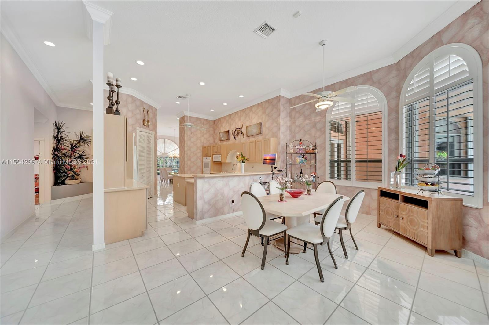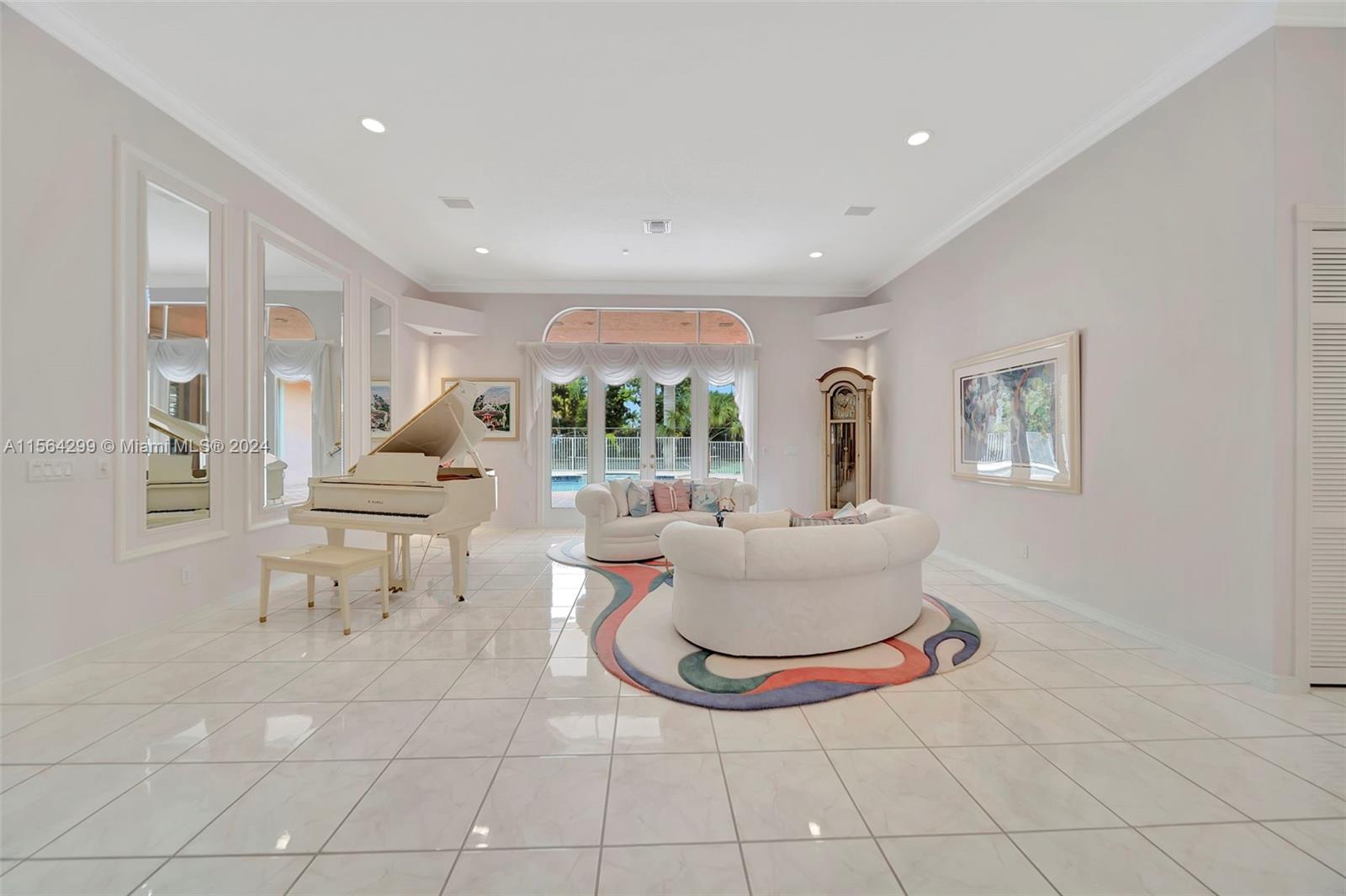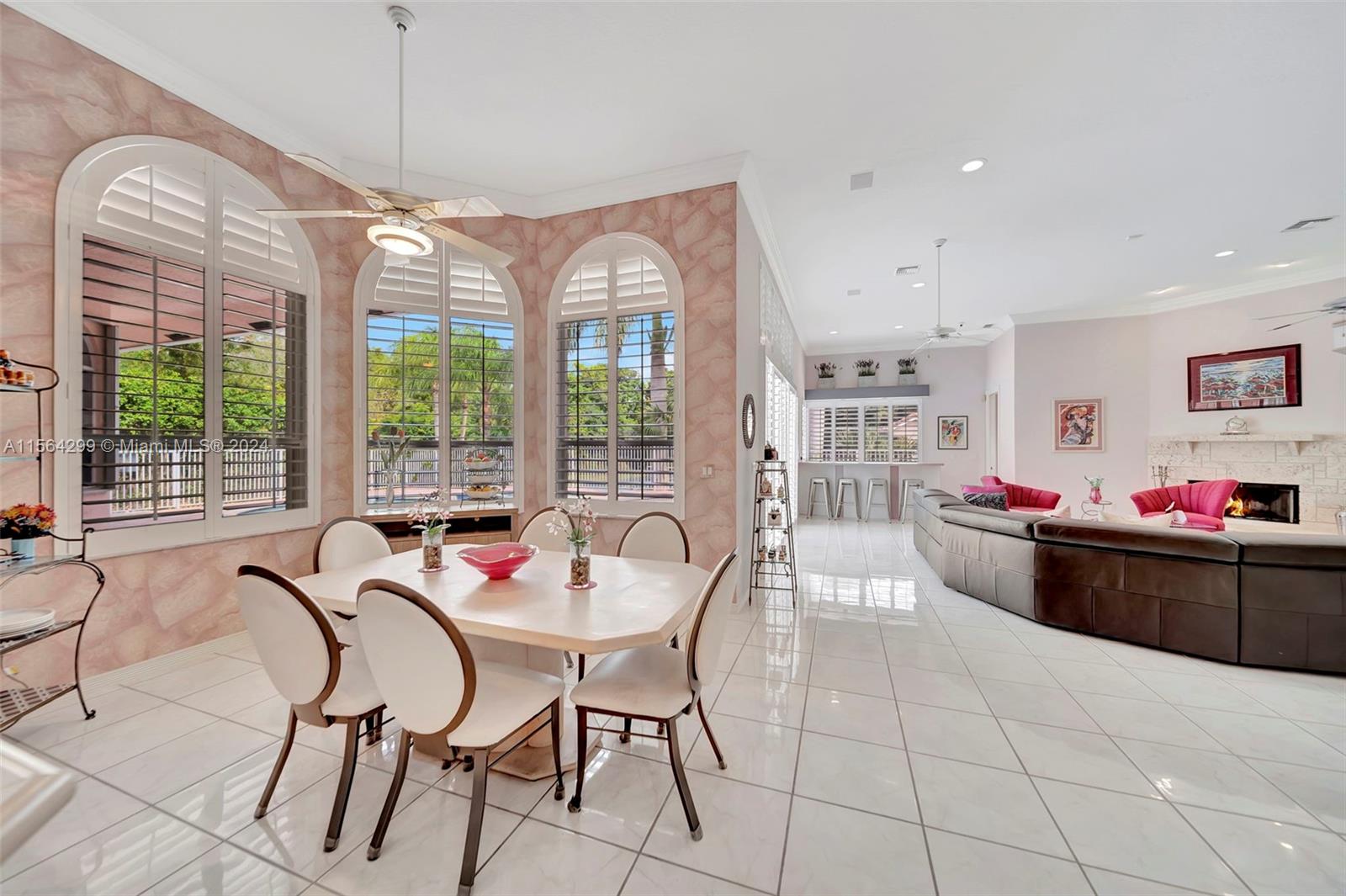 Tucked away in the desirable Plantation Acres, this exquisitely cared-for home boasts 5 bedrooms plus a Den, and 4 bathrooms, occupying a splendid builder's acre. Cherished by its owners for over three decades, it features soaring 12-foot ceilings, vast areas for social gatherings, a wood burning fireplace, hardwood floors across all bedrooms, and a massive master suite with breathtaking views of the outdoors. The kitchen is complete with a cooking island and ample storage. Outside, relax in the pool and spa or watch tennis games on your private court. The property also includes a versatile art studio/storage building. Equipped with a whole house generator and secured by accordion shutters throughout, it's ideally situated near American Heritage School, major highways, and shopping hubs.