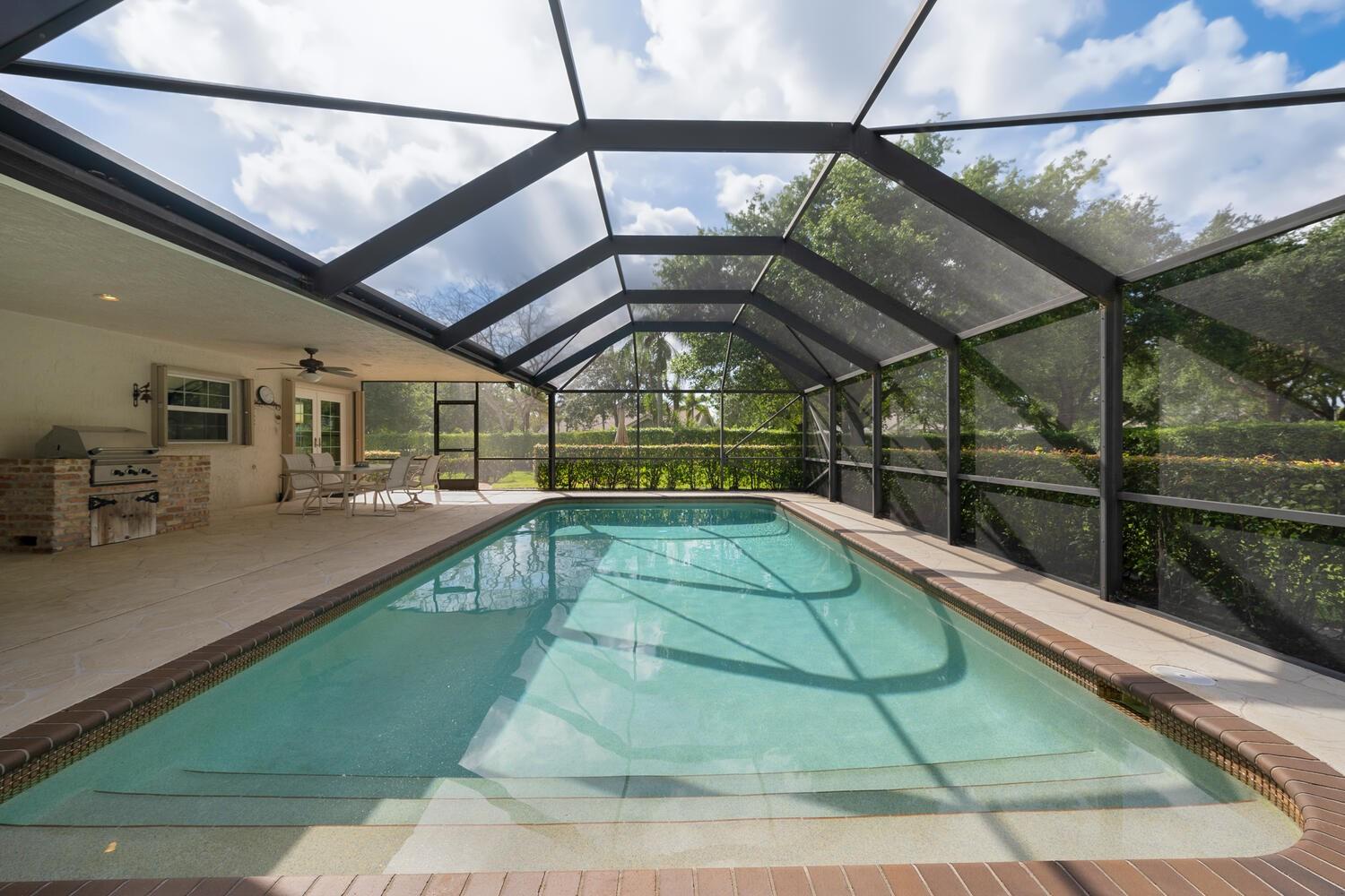 Picture-perfect elevation, beautiful landscaping & spacious, private backyard only begin to describe this fabulous home! "NEW" features incl: Roof-2019; 2 water heaters-2022; 2 A/C's-2019 & 2020; Full house generator-2022;and screening for pool enclosure-2023. Warm & inviting kitchen features apron sink, pot rack over center island, gorgeous cabinets, granite counters, pantry & stainless steel appliances. Hardwood floors in LR, DR & all bedrooms...travertine marble in all other areas. IMPACT WINDOWS AND DOORS, Crown & chairrail moldings, 3 sets of French doors & dual fireplace (marble in LR & white brick in FR). Stunning MBA w/dual, frameless shower with steam capacity, double vanity & granite counters. Custom his & her closets. Euro-tile patio, built-in grill, & spacious yard w/gazebo.