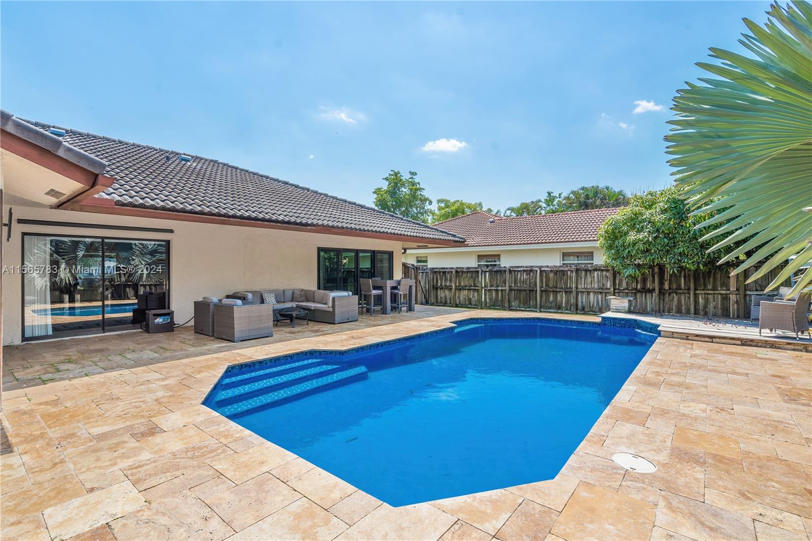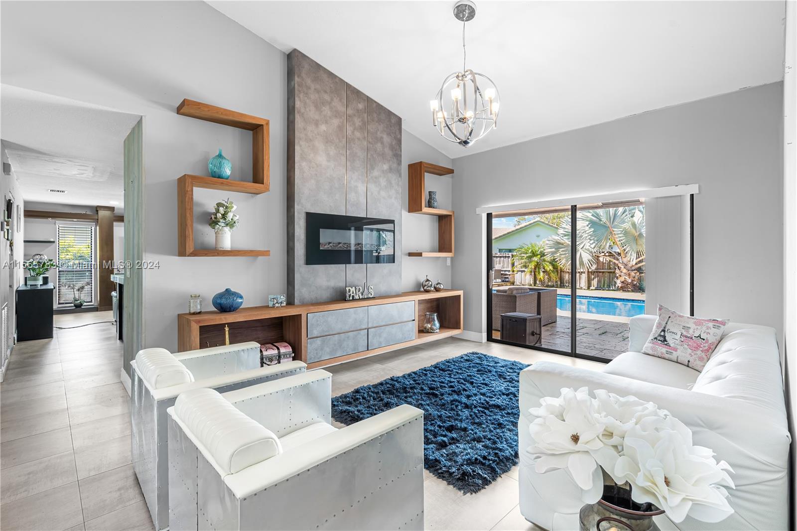 This immaculate 32bed 2bath nestled in the heart of the Crossings in Coral Springs combines elegance, functionality & safety. Completed renovated on 2018 with updated floors, fully renovated bathrooms, kitchen & E-panel. New AC Nov, 2022. The living room has gorgeous E-Fireplace, accompanied by a great built-in shelves. When opening the door from the poolside patio taking you into the family room that connects to an open concept kitchen featuring granite countertops, stainless steel, wall microwave & pantry. This is not all! Fenced patio with a WOW resurfaced pool, Patio kitchen & plenty seating areas for the perfect environment to relax with friends & family with extended roof & covered patio. Along with all of this, plus LOW maintenance fee ONLY $378.00/Yr. Come to see it. It Won't last.