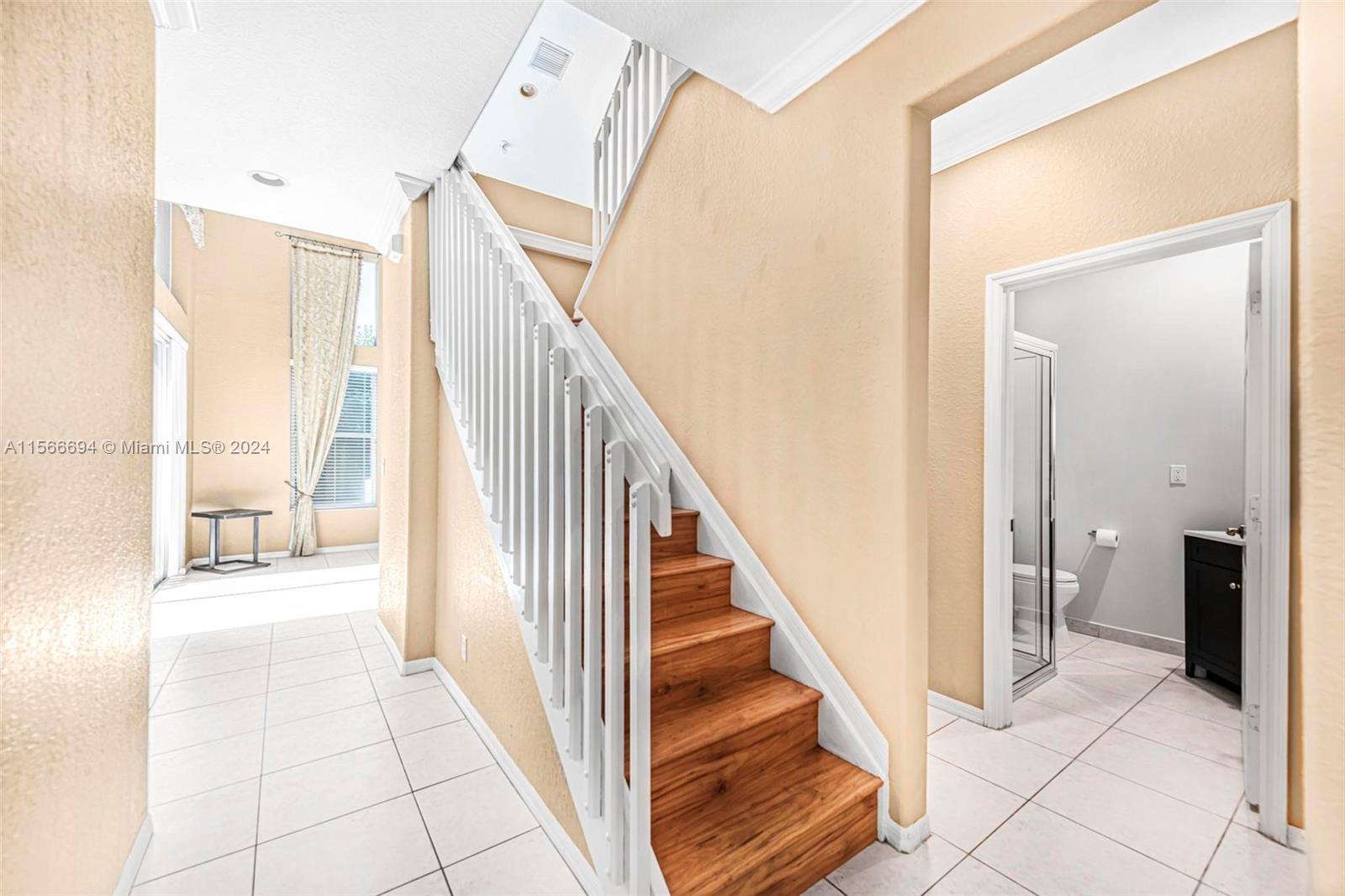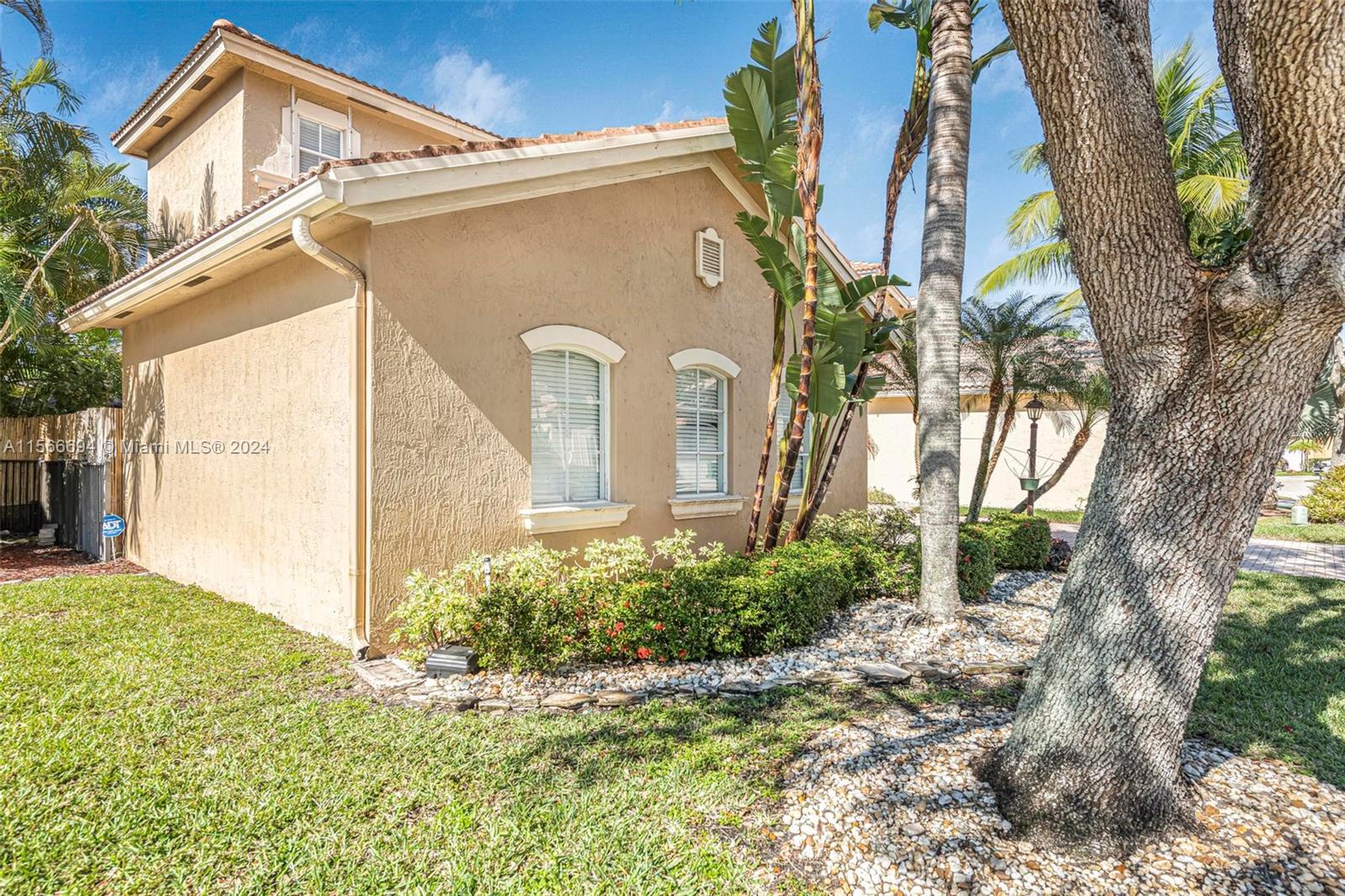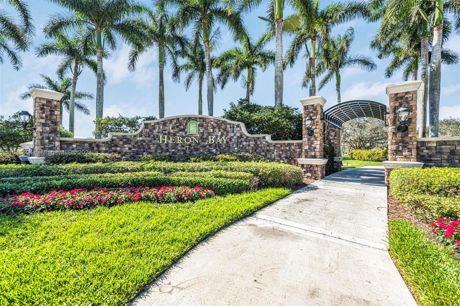 Beautiful 3/3 home + a den located in the highly sought after Heron Bay!!!! Prime lot location situated on one of the largest driveways in the community! Open concept layout with volume ceiling and natural light throughout. Den located downstairs can be used as an office or extra 4th bedroom! Kitchen boasts granite countertops and stainless steel appliances. Ceramic tile downstairs, laminate upstairs. Enjoy South Florida living in your private backyard oasis that has been newly tiled and landscaped with tropical hedging for privacy. Two-car garage plus large curved driveway. The gated Heron Bay offers many amenities, including: resort-style pools and hot tubs, clubhouses, fitness classes, basketball and volleyball courts, indoor racquetball, and tennis courts.