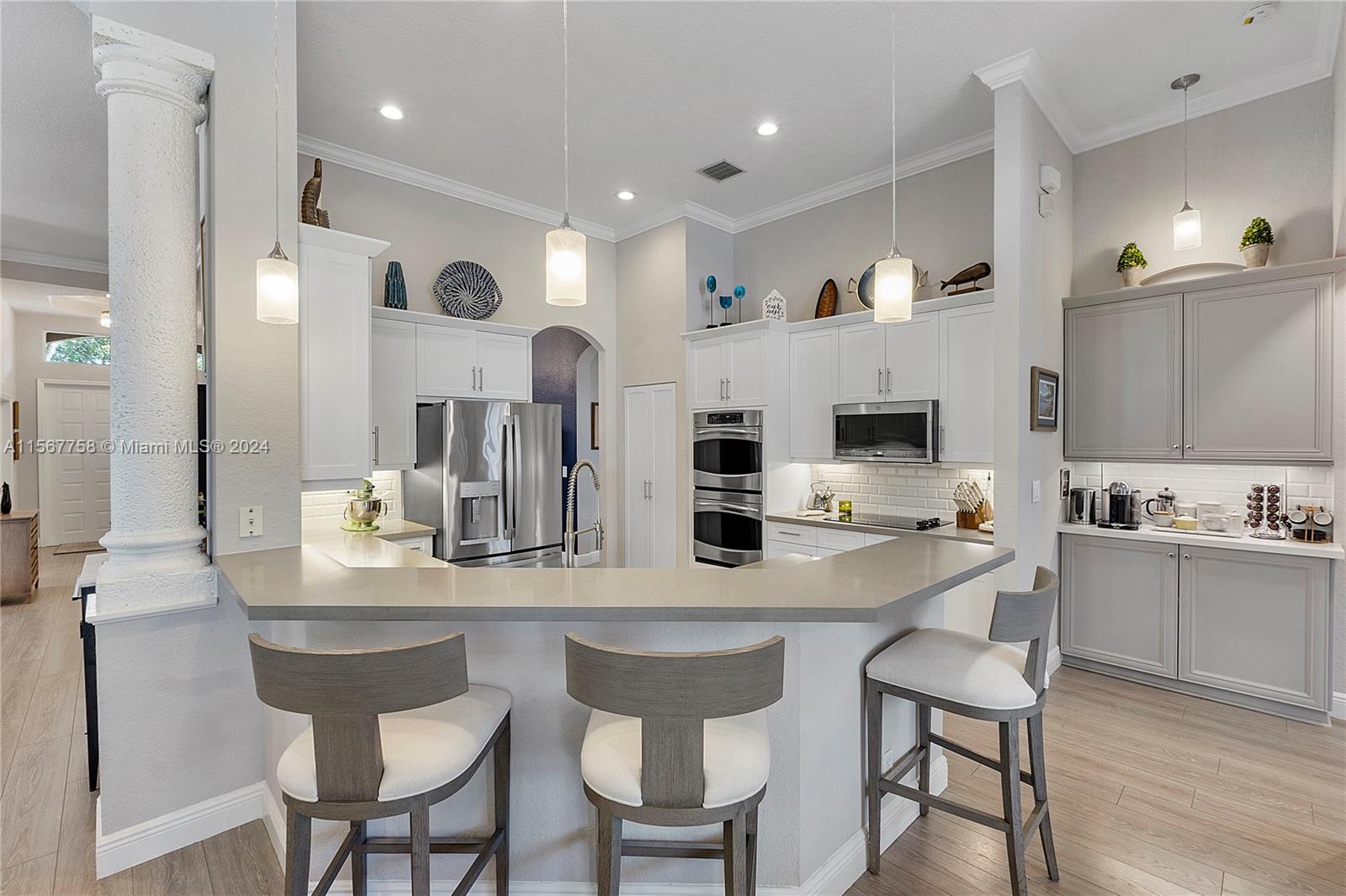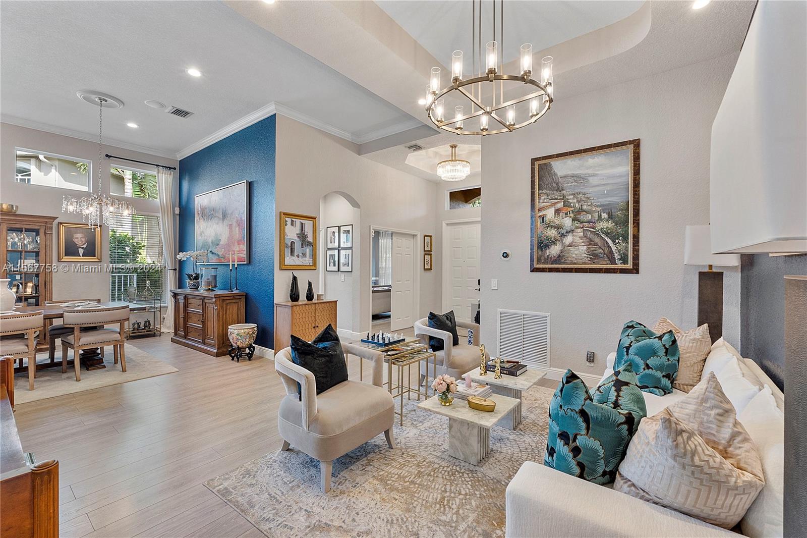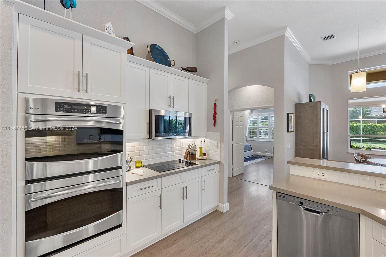 Amazing 4 Bed 3 Bath Pool Home W/ 3 Car Garage Located In The Prestigious Gated Community Grand Reserve! Foyer Entrance. Large Open Layout W/ Custom Kitchen, Quartzite Countertops, SS GE Profile Appliances, Cooktop, White Shaker Cabinets, Pantry & Wet Bar. Formal Dining W/ Tray Ceilings, Custom Lights & Fixtures. Luxury Vinyl Floors Throughout. French Door Entrance To The Primary Suite, Recessed Lighting, Plantation Shutters, Overlooking The Pool, Large Walk-In Closet W/ Built-Ins & Chandelier. Primary Bath W/ Dual Vanities, Granite Countertops, Soaking Tub, Separate Tub/Shower & Water Closet. 2nd Bedroom W/ Custom Fixtures. 3rd Bedroom Recessed Lights. New Trane AC 2018. Mudroom W/D, Laundry Sink. Oversized Yard, Screened Patio W/ Travertine Pavers & Newly Renovated Pool. Must See!