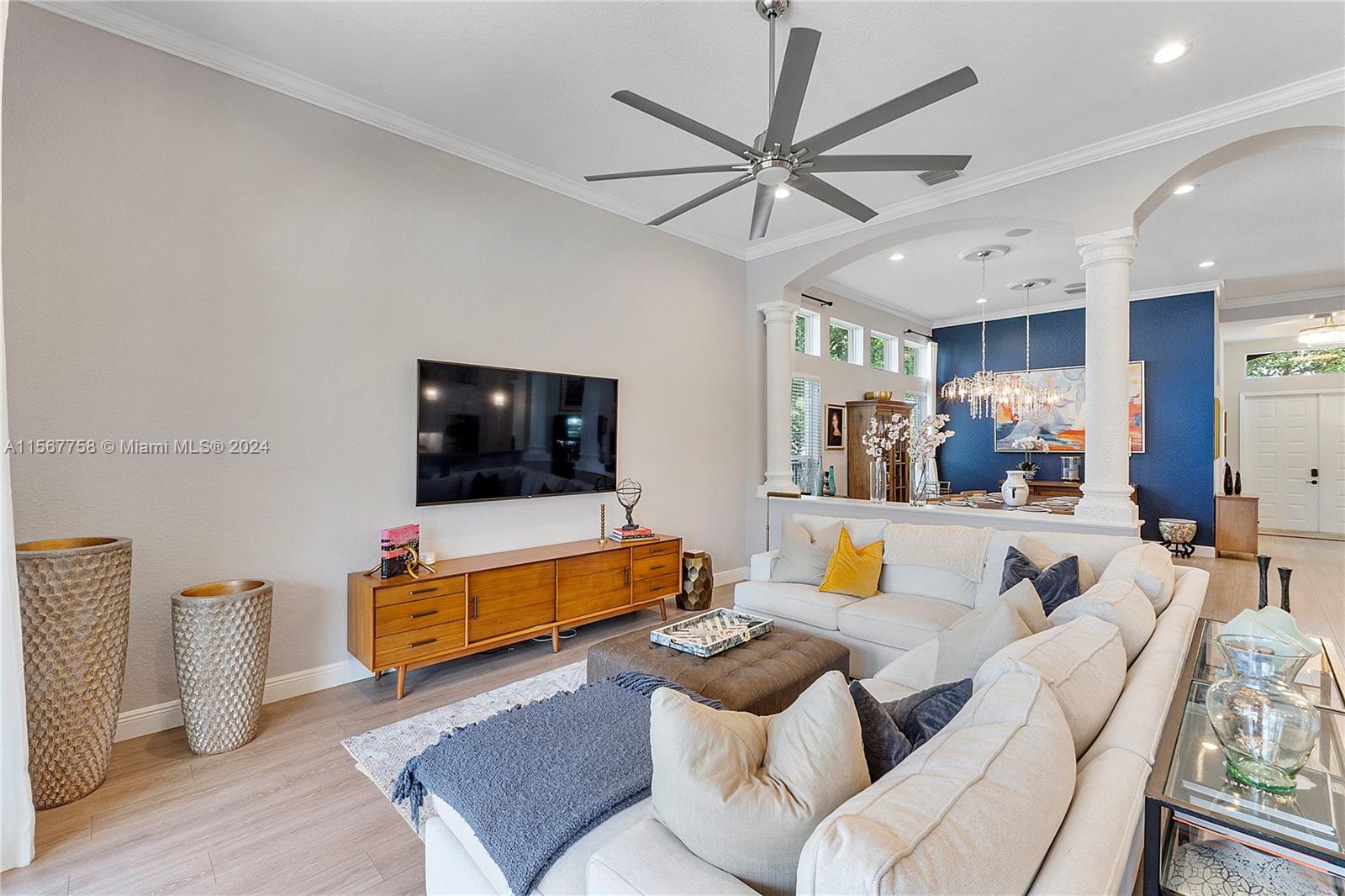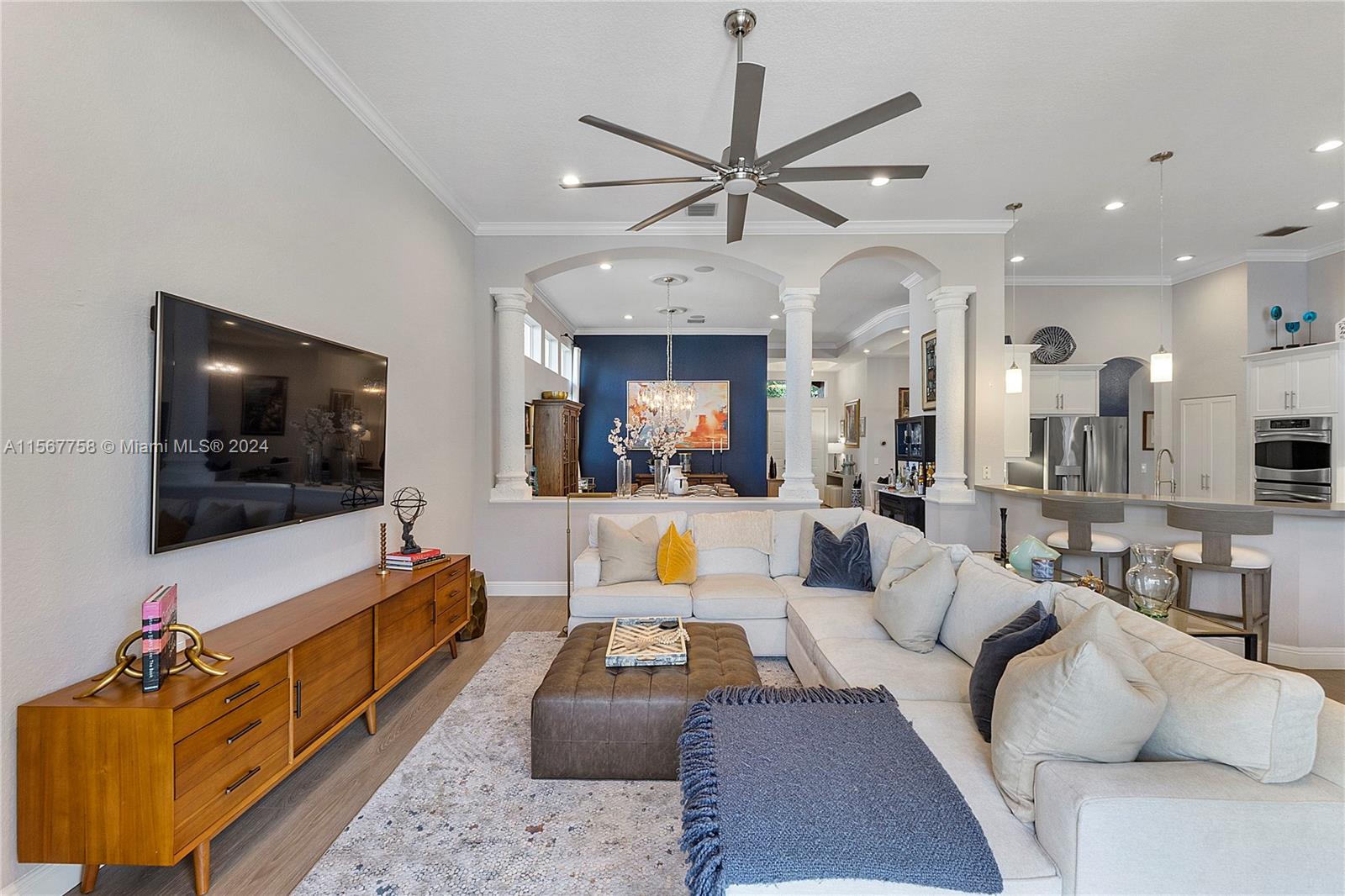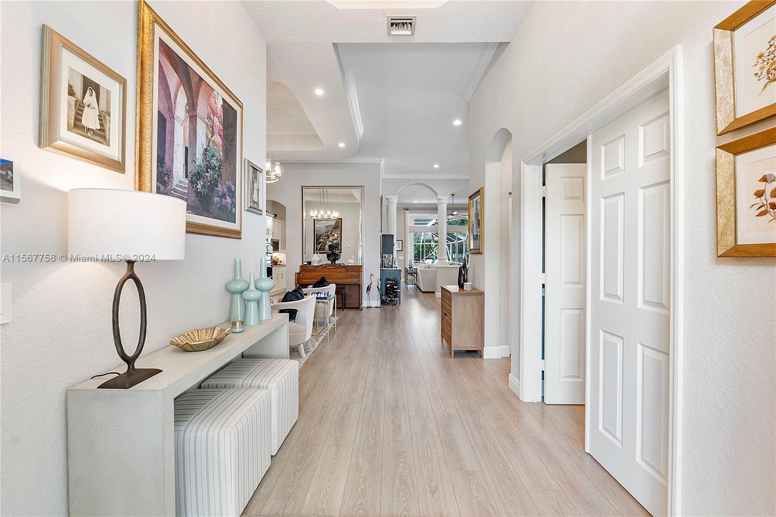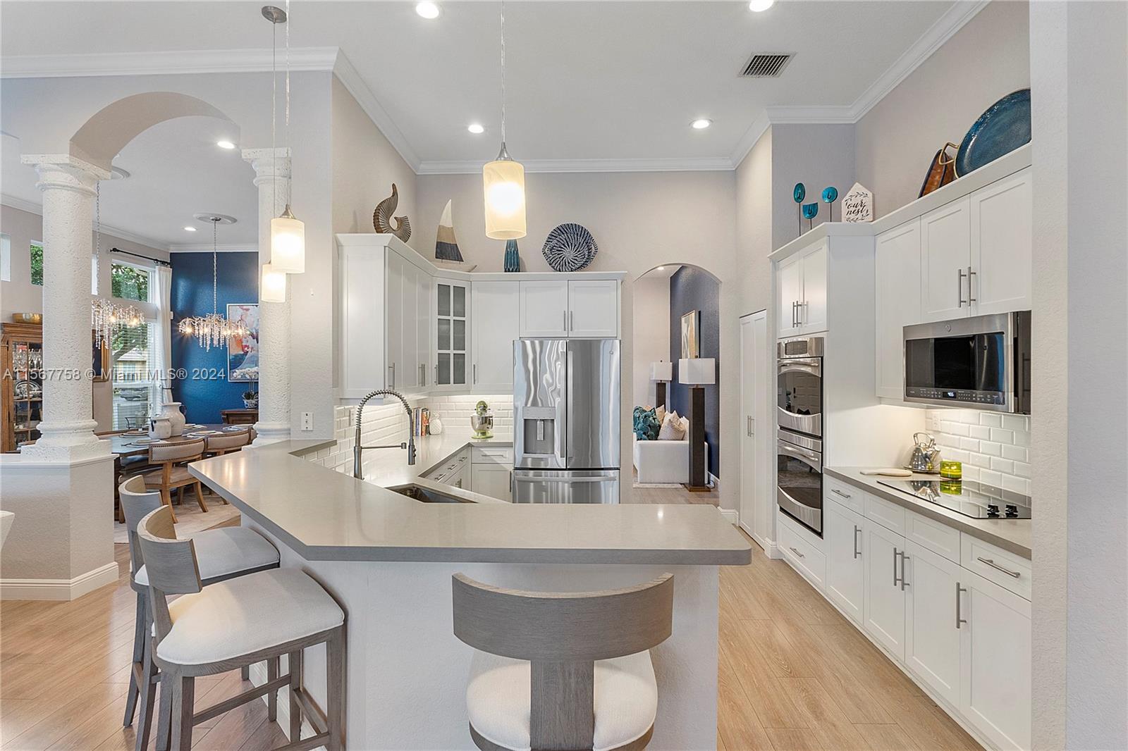 Amazing 4 Bed 3 Bath Pool Home W/ 3 Car Garage Located In The Prestigious Gated Community Grand Reserve! Foyer Entrance. Large Open Layout W/ Custom Kitchen, Quartzite Countertops, SS GE Profile Appliances, Cooktop, White Shaker Cabinets, Pantry & Wet Bar. Formal Dining W/ Tray Ceilings, Custom Lights & Fixtures. Luxury Vinyl Floors Throughout. French Door Entrance To The Primary Suite, Recessed Lighting, Plantation Shutters, Overlooking The Pool, Large Walk-In Closet W/ Built-Ins & Chandelier. Primary Bath W/ Dual Vanities, Granite Countertops, Soaking Tub, Separate Tub/Shower & Water Closet. 2nd Bedroom W/ Custom Fixtures. 3rd Bedroom Recessed Lights. New Trane AC 2018. Mudroom W/D, Laundry Sink. Oversized Yard, Screened Patio W/ Travertine Pavers & Newly Renovated Pool. Must See!