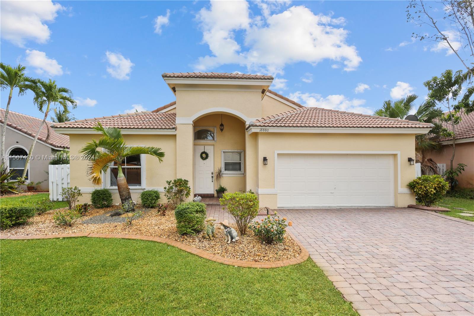 Luxuriate in elegance in this 3-bed, 2.5-bath home features an airy open layout flooded with natural light and accentuated by soaring ceilings. The kitchen is a chef's delight with granite counters and ample wood cabinetry. Tile flooring graces the main areas, while wood floors adorn the bedrooms. Unwind in the spacious master suite, boasting a renovated bath with a glass shower. The 2-car garage provides ample storage. Enjoy access to unrivaled amenities at the clubhouse including a tropical pool, fitness center, sand volleyball court, 8-lit tennis courts, a basketball court, and picturesque lake views all add to the allure of this exceptional property. Schedule your showing today and experience luxury living at its finest in this remarkable home.