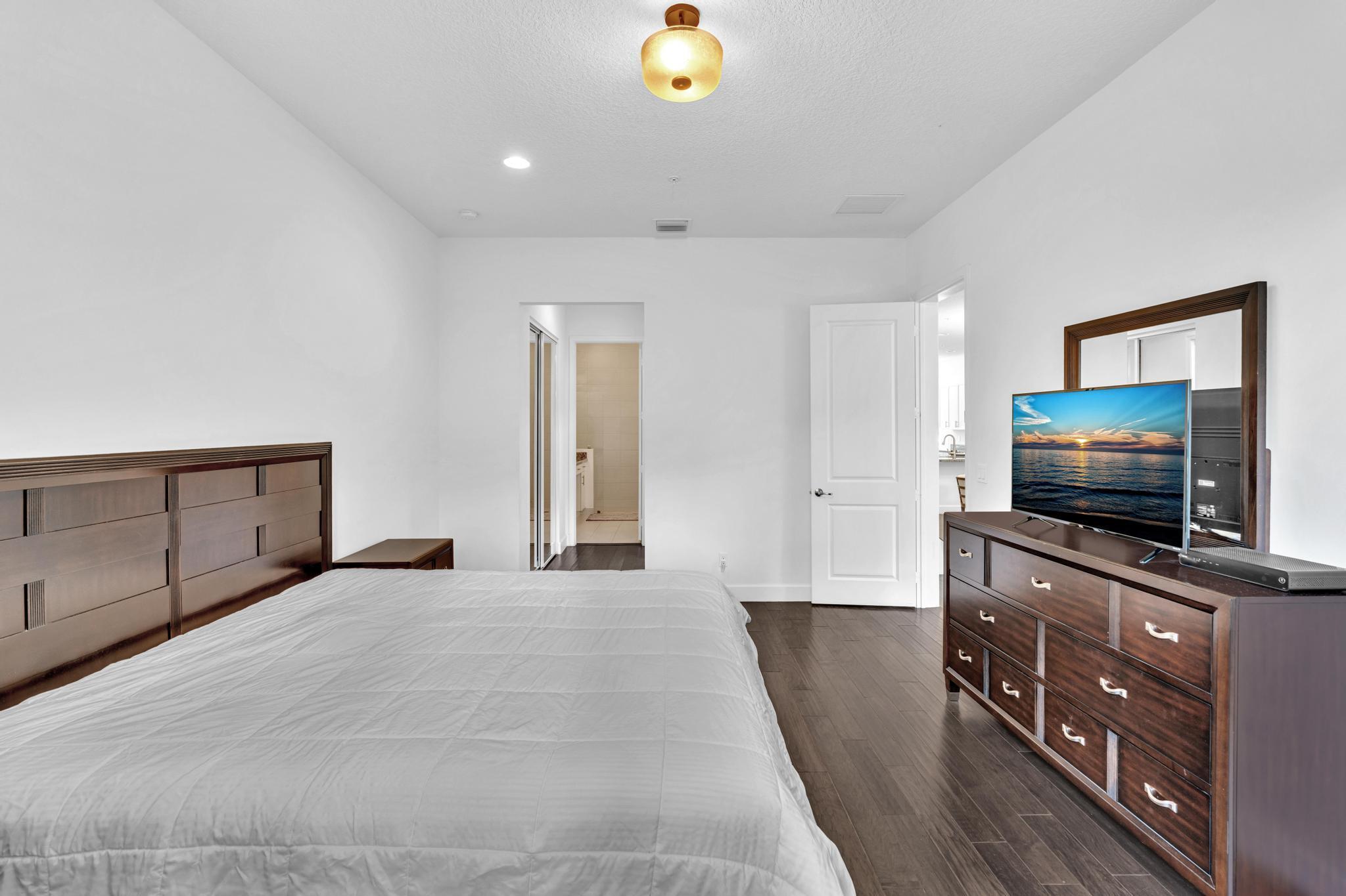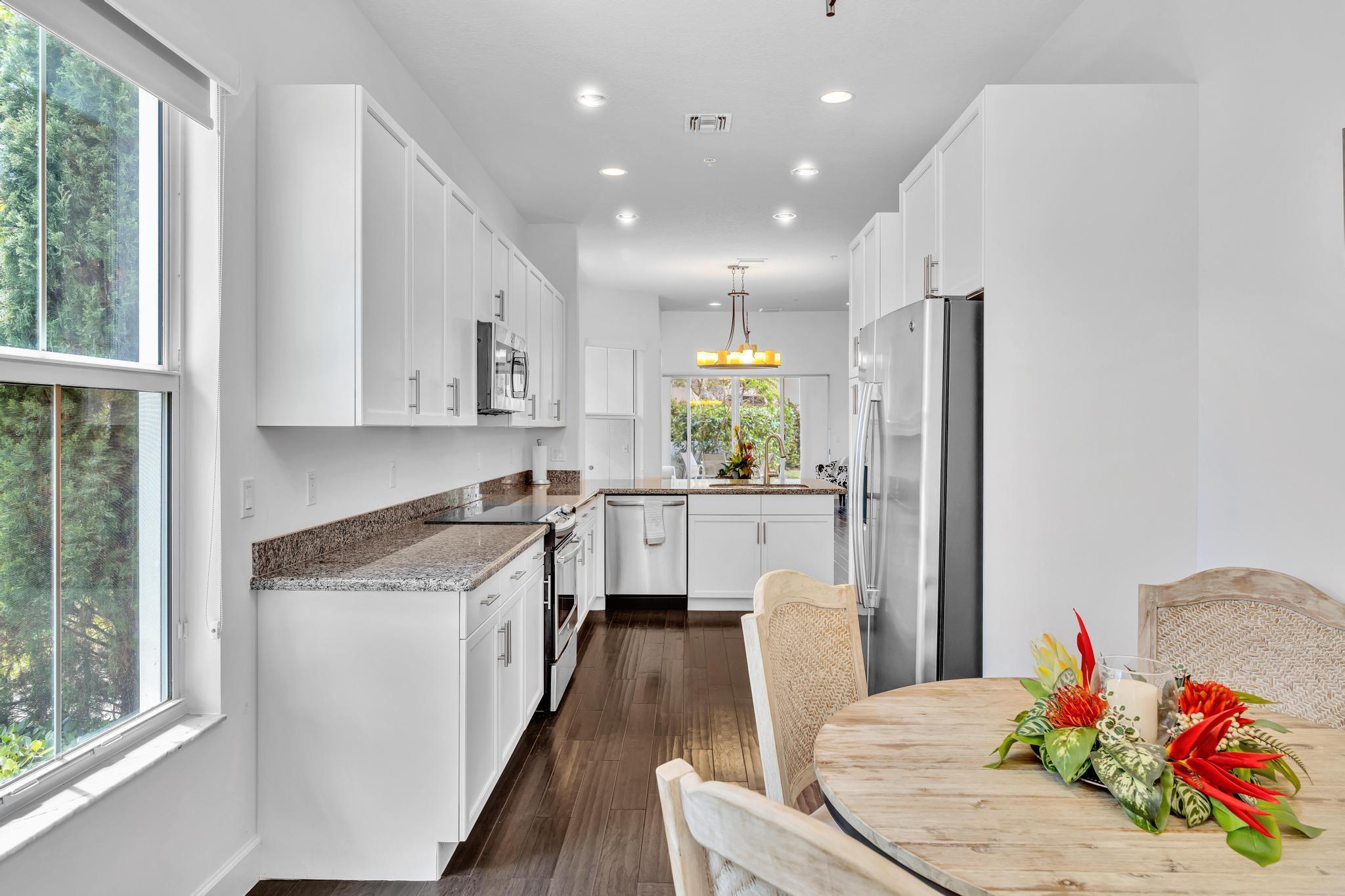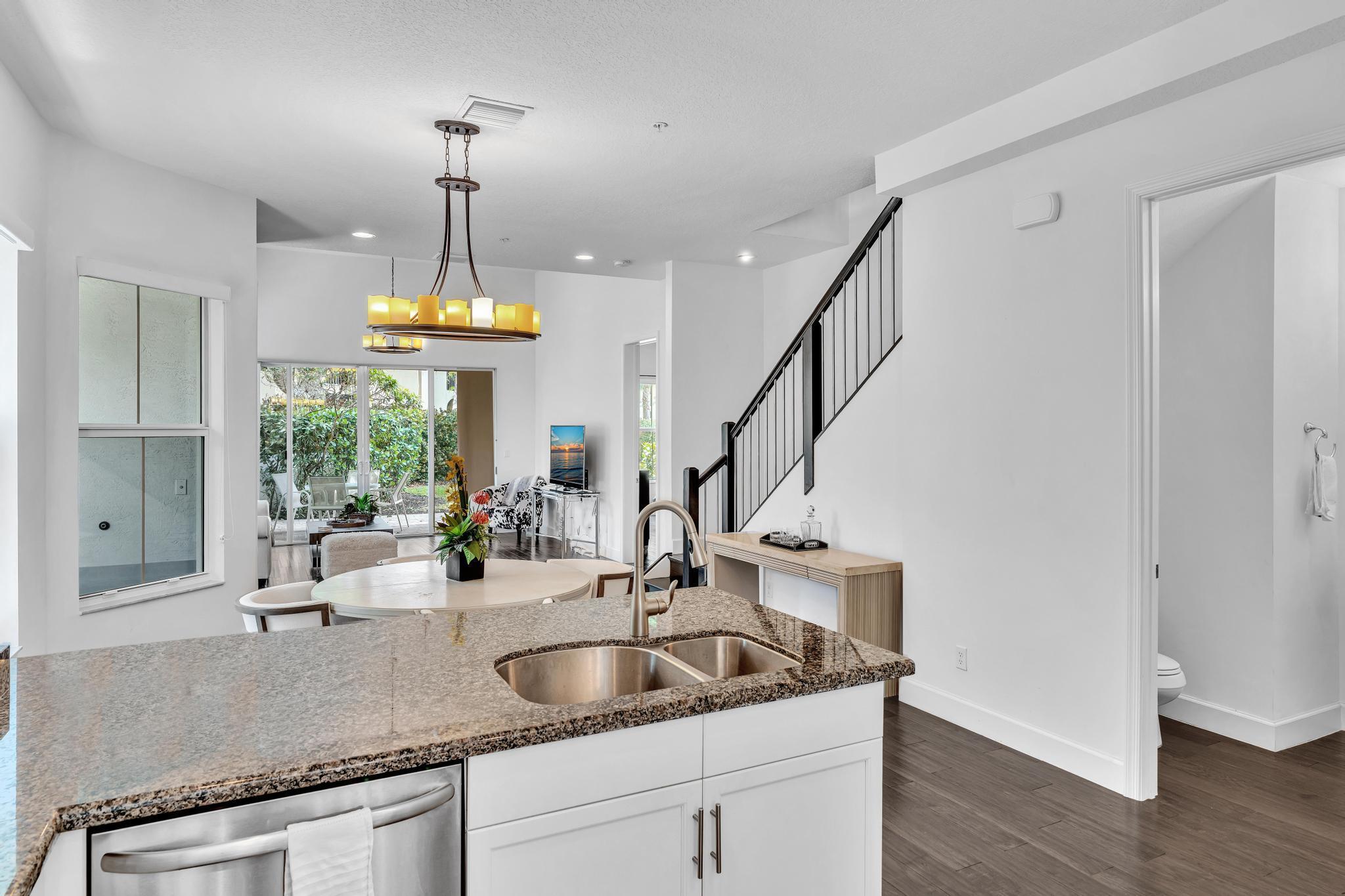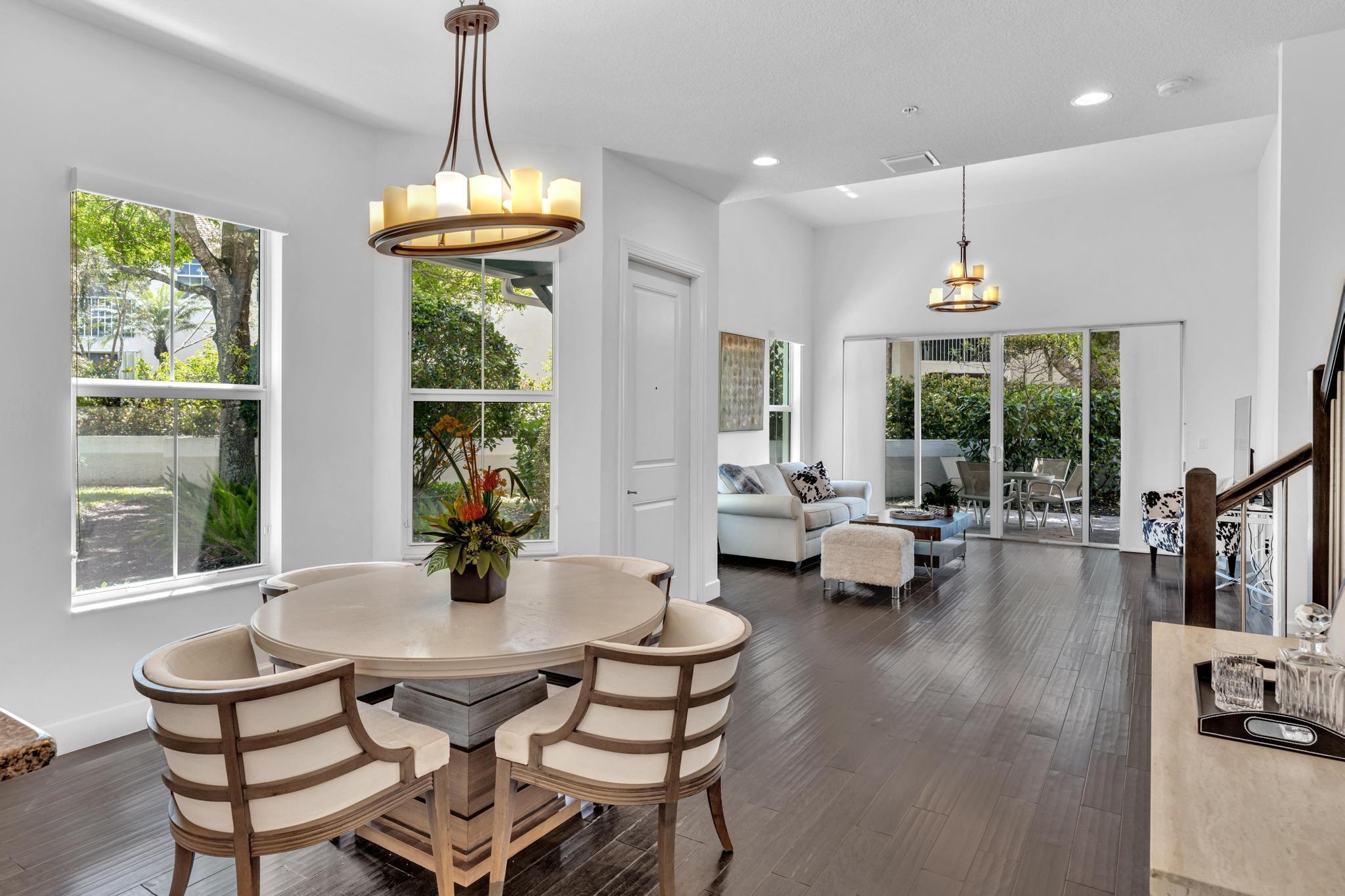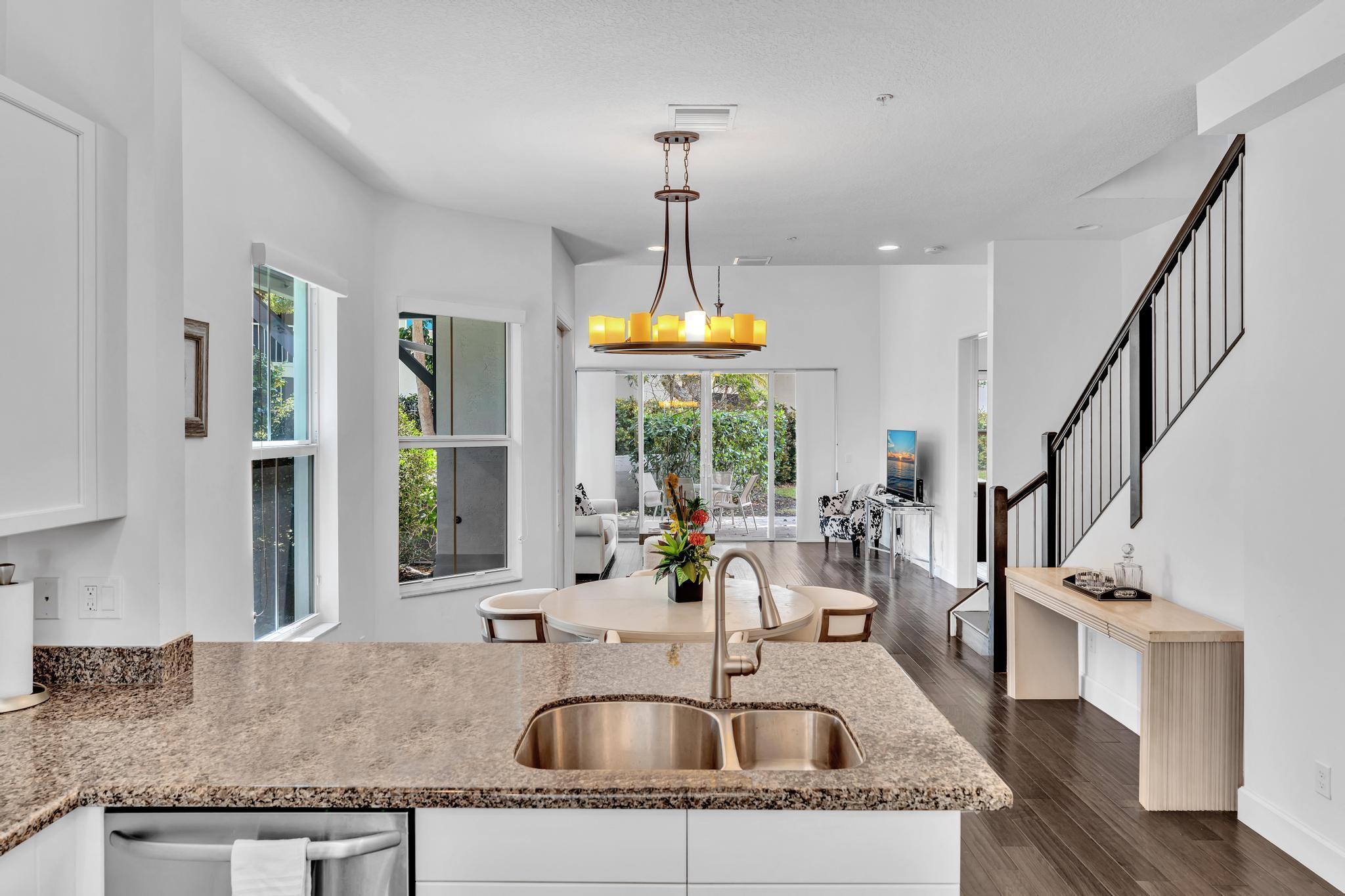 Lavishly Luxurious and Spacious Townhouse Located in the amenity-rich, gated community of Boca Pointe. This 4BR/3.5BA, built 2017, 2,400+sqft corner unit radiates an upscale aesthetic with meticulous landscaping, an open floorplan, dazzling natural light, beautiful engineered wood floors, high ceilings, elegant dining room, kitchen featuring stainless steel appliances and granite counters. Discover bliss in the luxe main-level primary bedroom with a walk-in closet, secondary closet, and an en suite boasting an oversized shower and dual vanities. Two upper-level bedrooms have walk-in closets and share access to a J-and-J bathroom, while the 4th guest bedroom enjoys a private en suite and walk-in closet. Other features hurricane impact windows and doors, covered patio, 2nd-floor family room