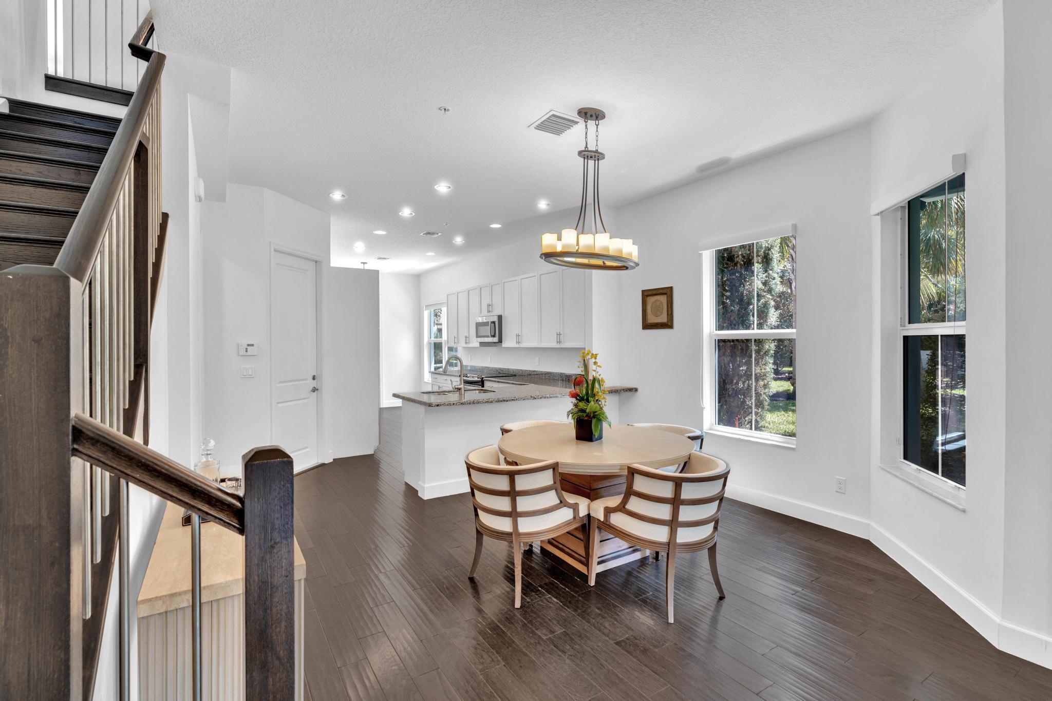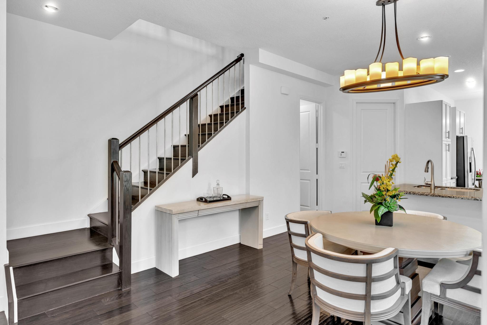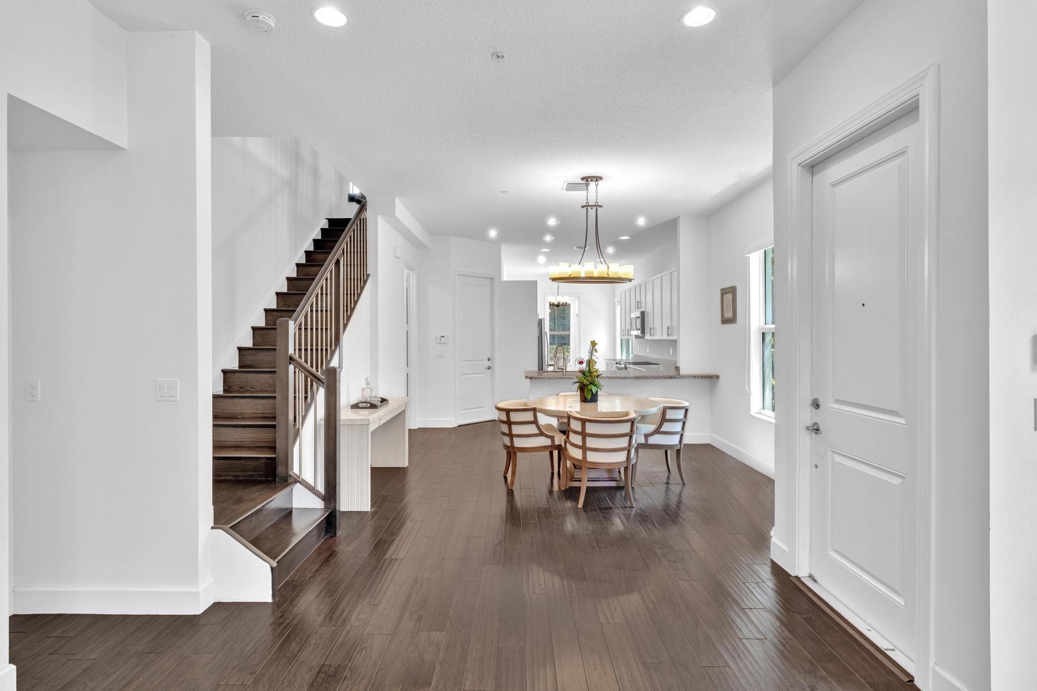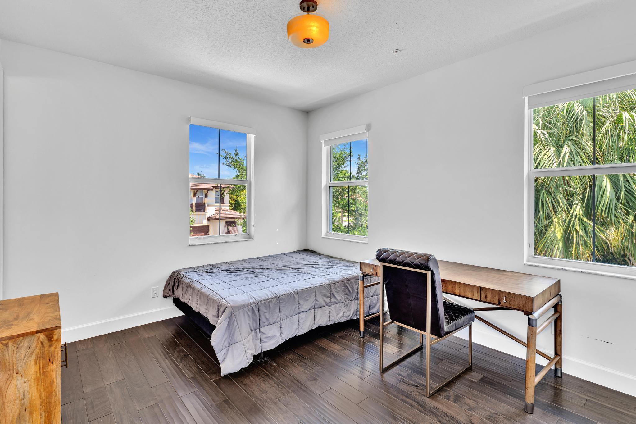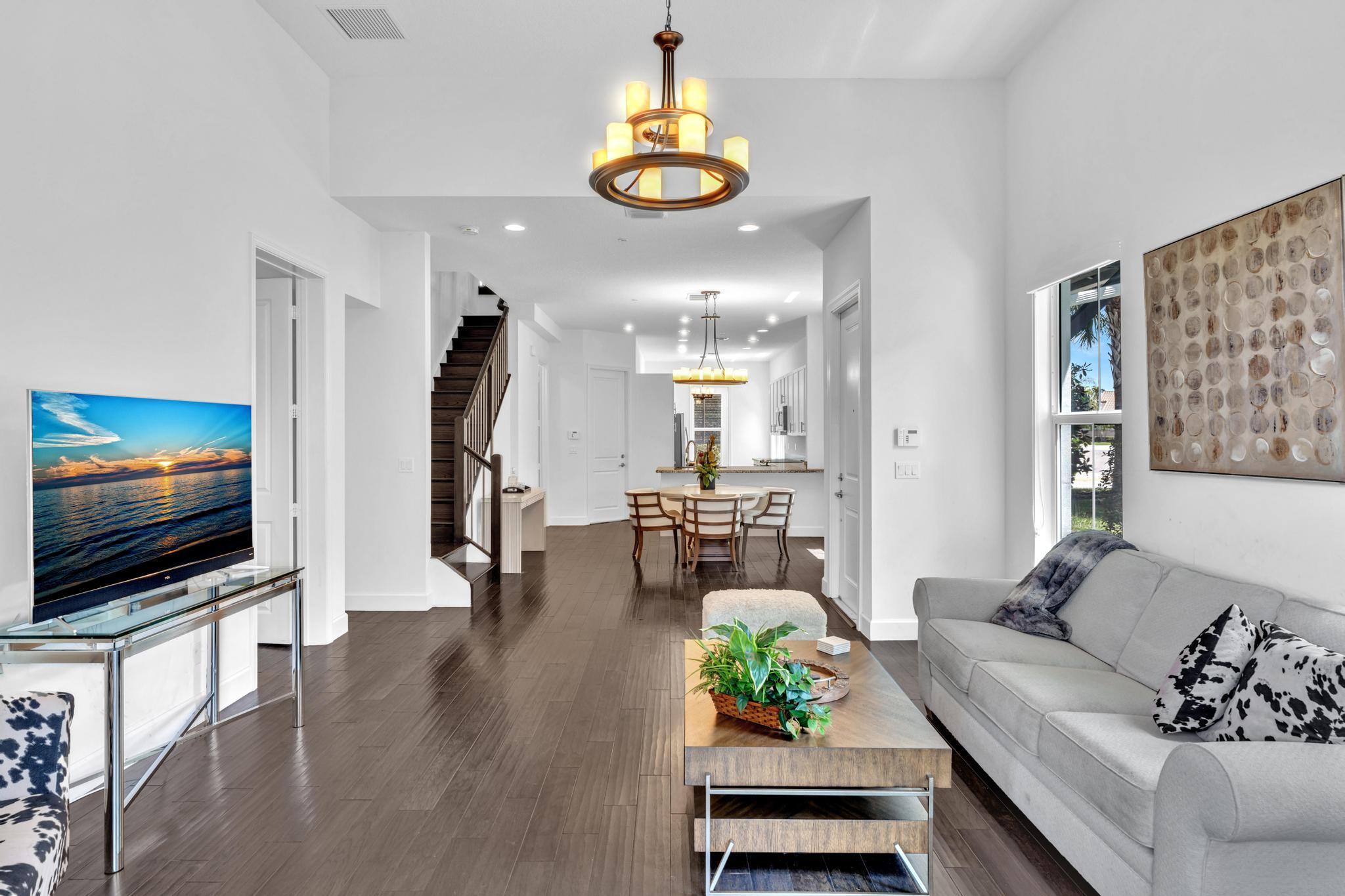 Lavishly Luxurious and Spacious Townhouse Located in the amenity-rich, gated community of Boca Pointe. This 4BR/3.5BA, built 2017, 2,400+sqft corner unit radiates an upscale aesthetic with meticulous landscaping, an open floorplan, dazzling natural light, beautiful engineered wood floors, high ceilings, elegant dining room, kitchen featuring stainless steel appliances and granite counters. Discover bliss in the luxe main-level primary bedroom with a walk-in closet, secondary closet, and an en suite boasting an oversized shower and dual vanities. Two upper-level bedrooms have walk-in closets and share access to a J-and-J bathroom, while the 4th guest bedroom enjoys a private en suite and walk-in closet. Other features hurricane impact windows and doors, covered patio, 2nd-floor family room