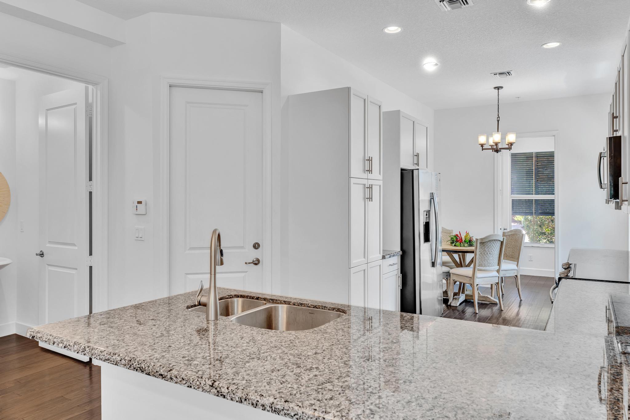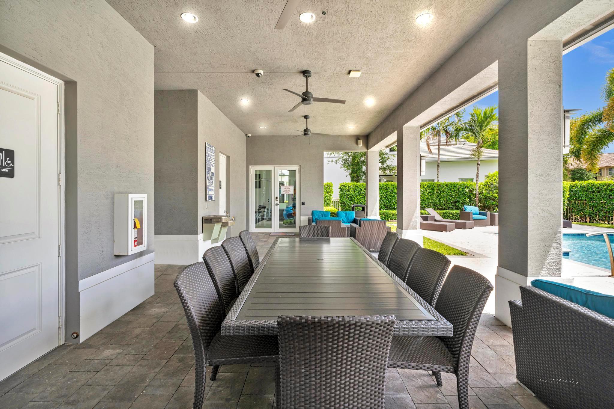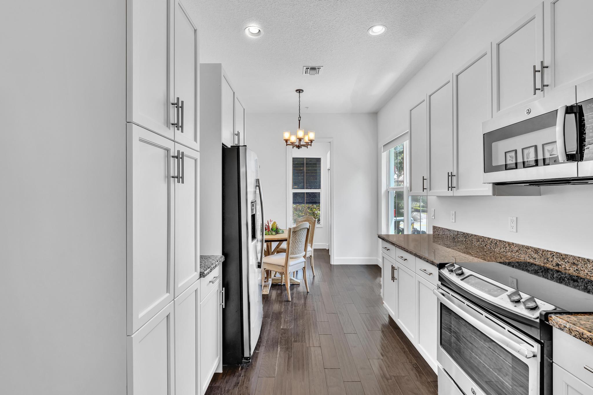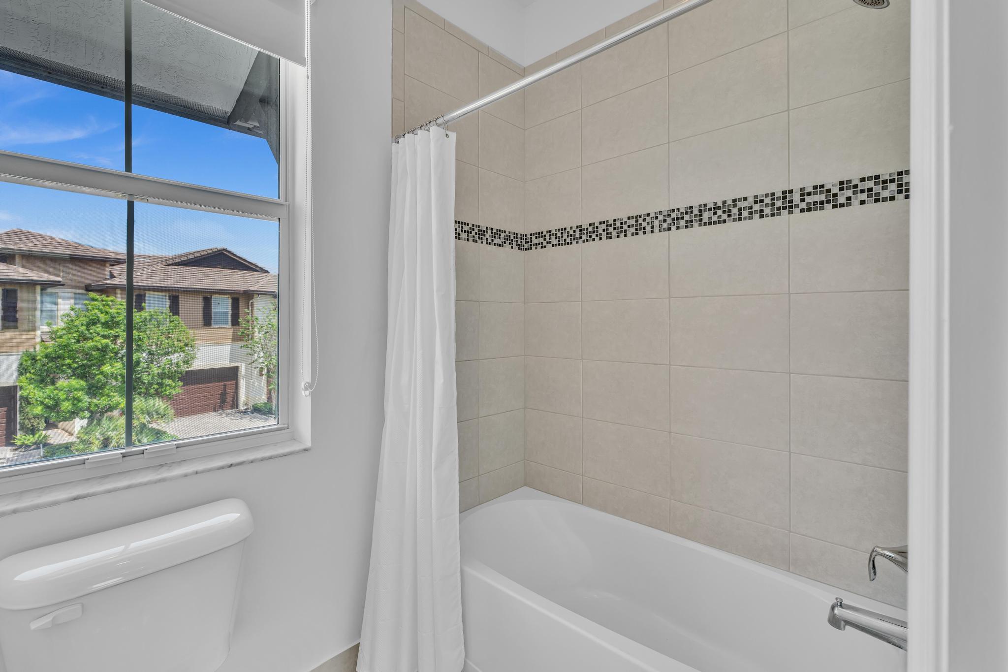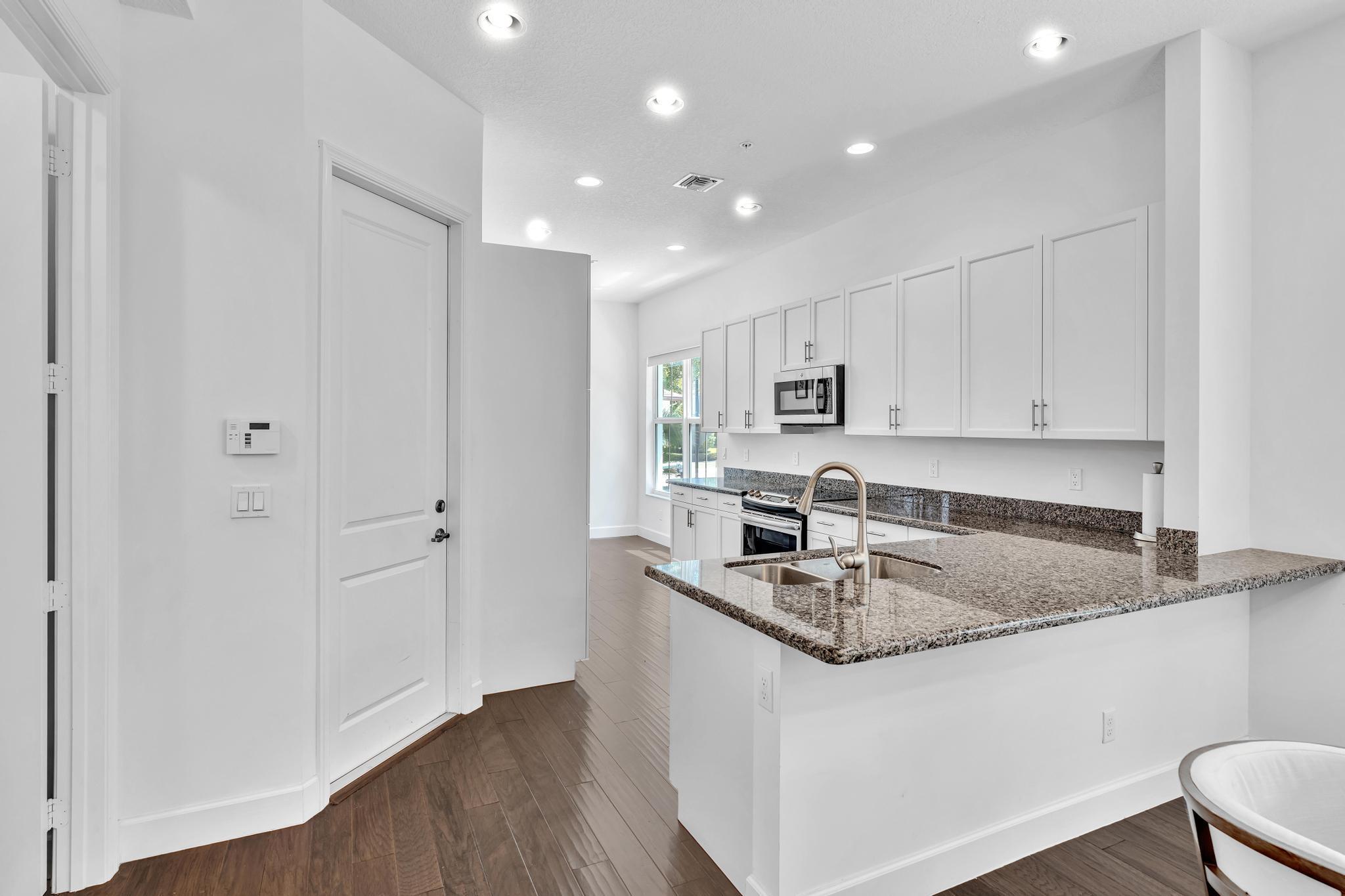 Lavishly Luxurious and Spacious Townhouse Located in the amenity-rich, gated community of Boca Pointe. This 4BR/3.5BA, built 2017, 2,400+sqft corner unit radiates an upscale aesthetic with meticulous landscaping, an open floorplan, dazzling natural light, beautiful engineered wood floors, high ceilings, elegant dining room, kitchen featuring stainless steel appliances and granite counters. Discover bliss in the luxe main-level primary bedroom with a walk-in closet, secondary closet, and an en suite boasting an oversized shower and dual vanities. Two upper-level bedrooms have walk-in closets and share access to a J-and-J bathroom, while the 4th guest bedroom enjoys a private en suite and walk-in closet. Other features hurricane impact windows and doors, covered patio, 2nd-floor family room
