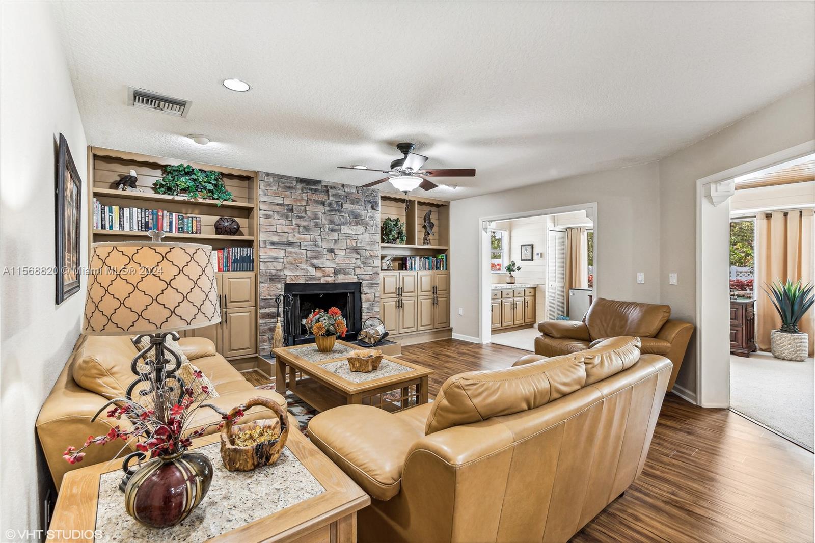 Welcome home to the Cypress Run Community! This majestic 4/2.5 home is situated on a corner lot and provides a front extended driveway along with the side driveway to the 2-car garage. Impact windows throughout the home. The spacious living room, family room and great room offer abundant natural light to accommodate multiple uses. The kitchen offers granite countertops and stainless steel appliances. The master bedroom boasts a walk-in closet and ensuite bathroom. Cozy backyard/pool area with lush garden offers a covered area for outdoor entertaining. Both A/C's are newer with warranty; Outdoor Sprinkler System; Pool pump is 2 years old; Brand New Water Heater; Close to great schools, shopping, and all major roadways. Front Door is not impact. (Furniture negotiable)